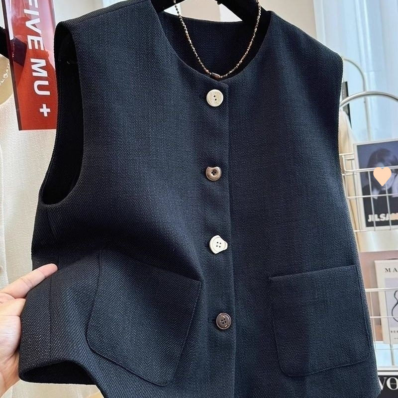春秋气质圆领小西装马甲背心外套女法式气质外穿叠穿无袖坎肩上衣