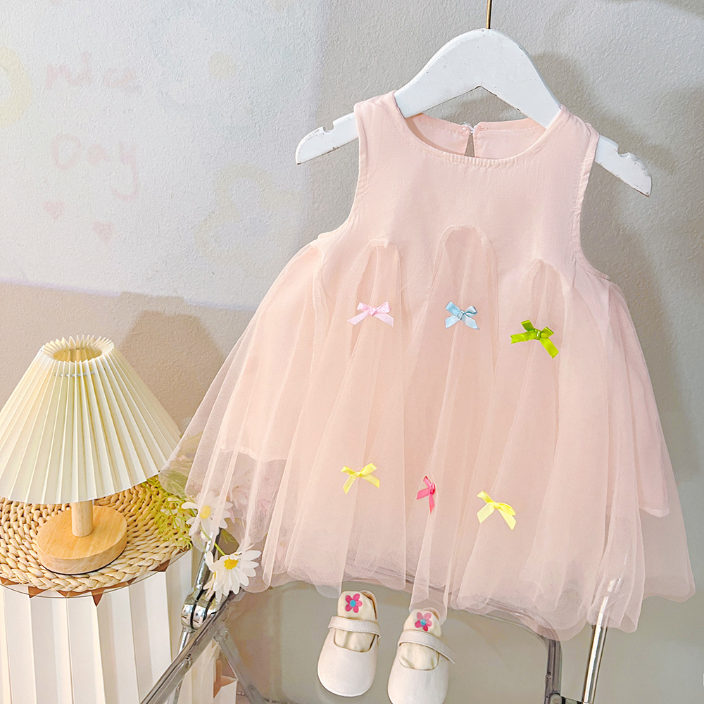 여자 다채로운 보우 드레스 여름 2025 새로운 아기 얇은 치마 어린이 푹신한 공주 거즈 스커트