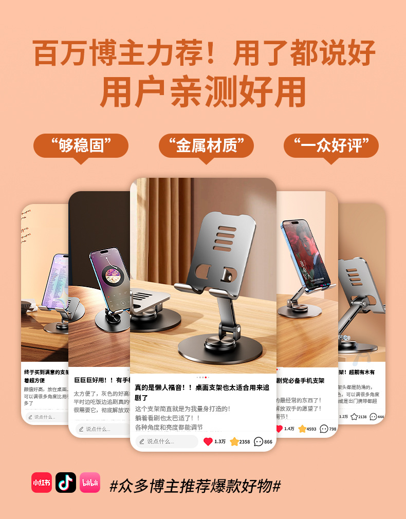 2025 새로운 회전 휴대 전화 브래킷 데스크탑 다기능 접이식 중공 냉각 라이브 비디오 게으른 브래킷 배치스토어 가기