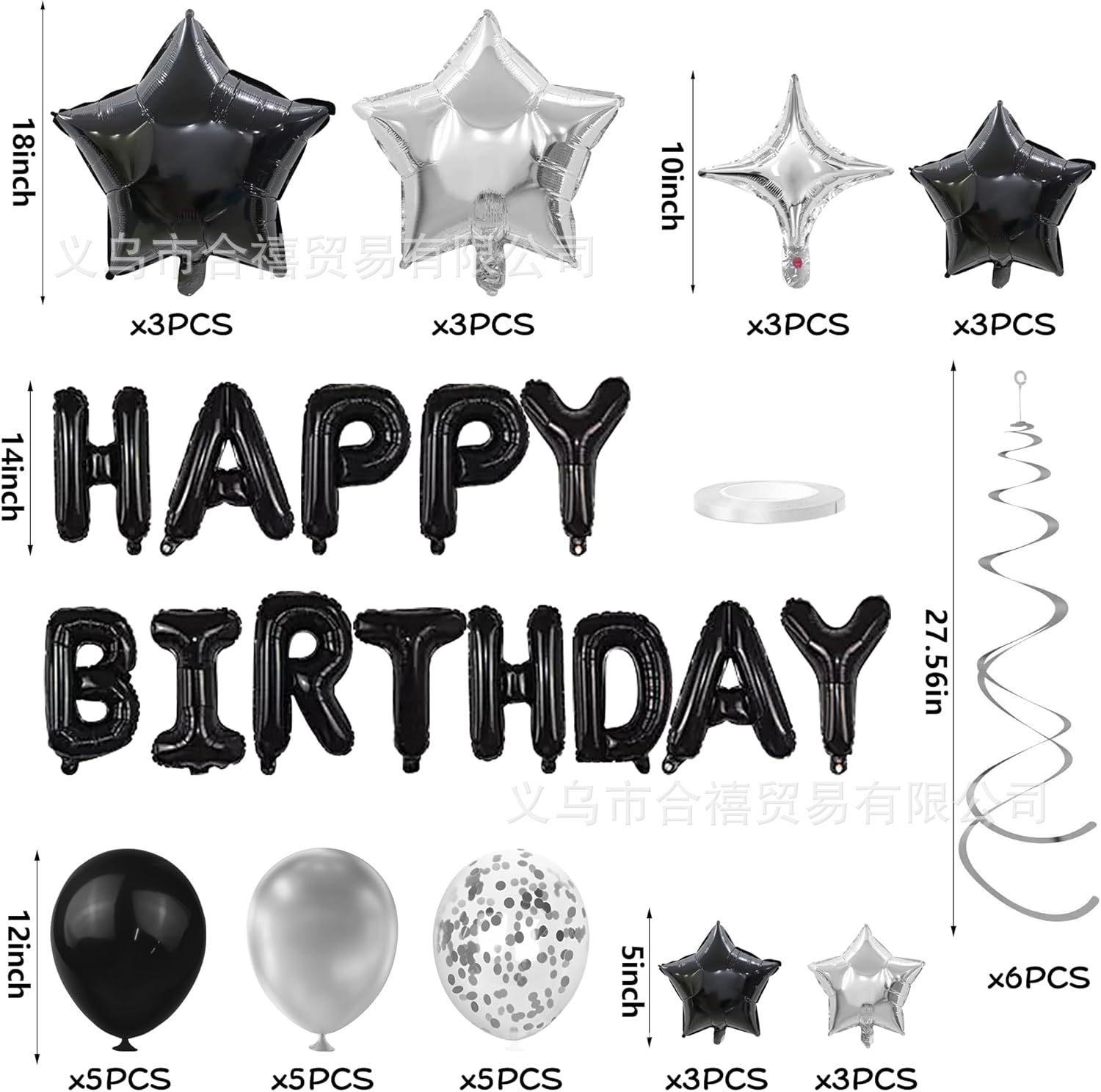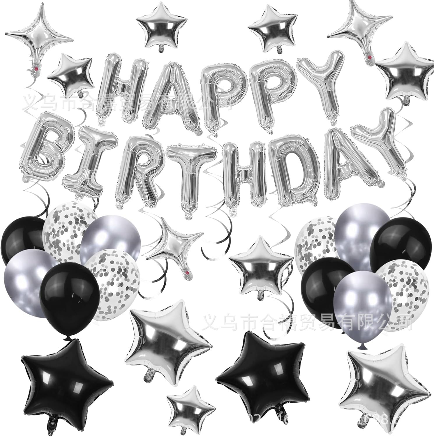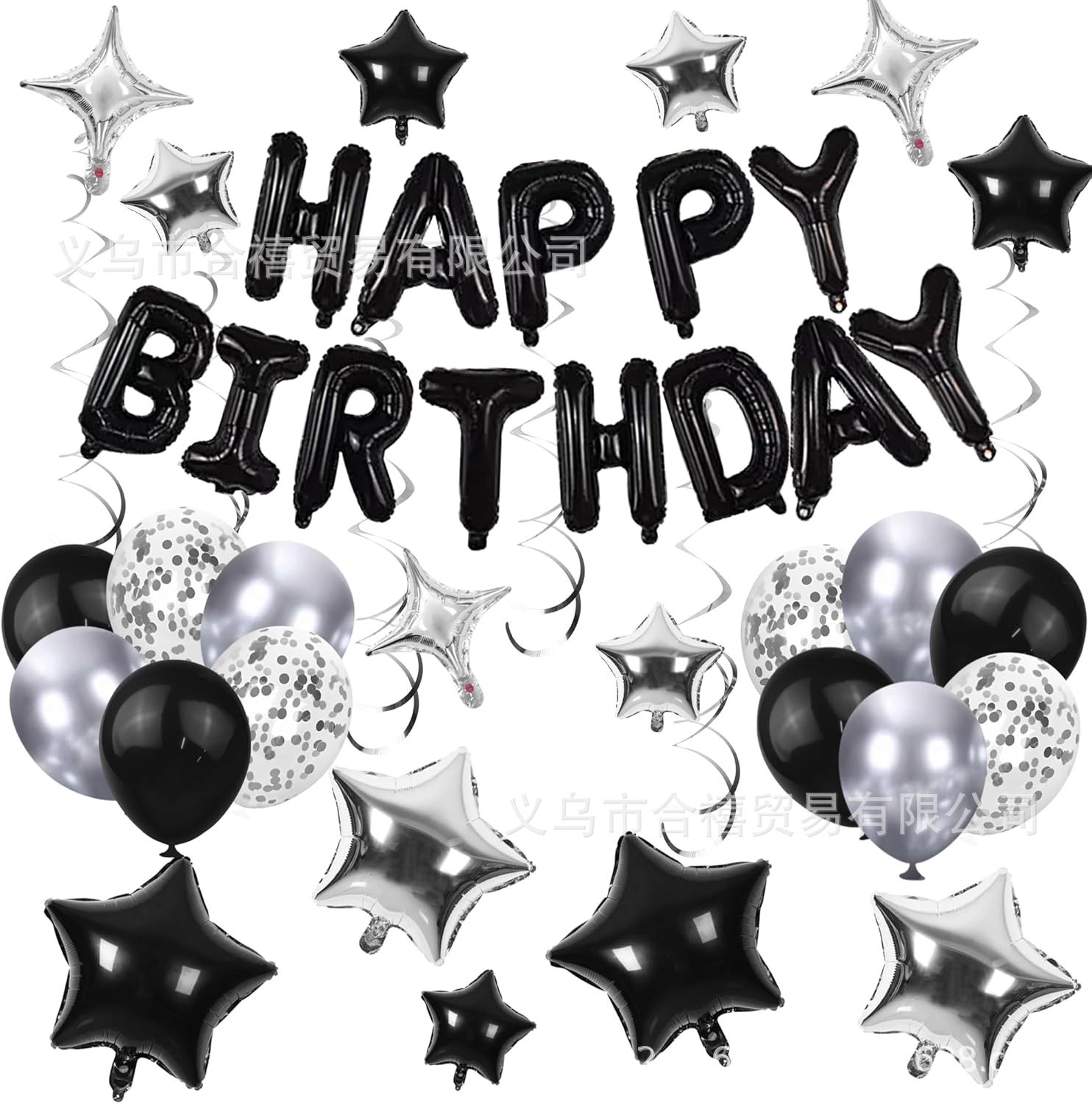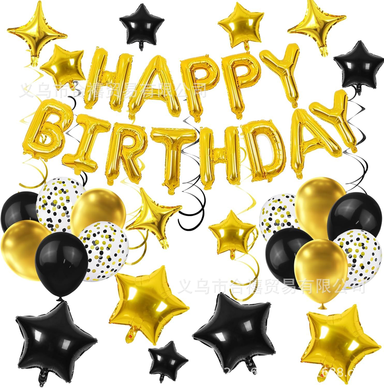 아마존 장식 축하 16inch 생일 축하 편지 스타 알루미늄 필름 풍선 나선형 세트 파티 새로운 블랙