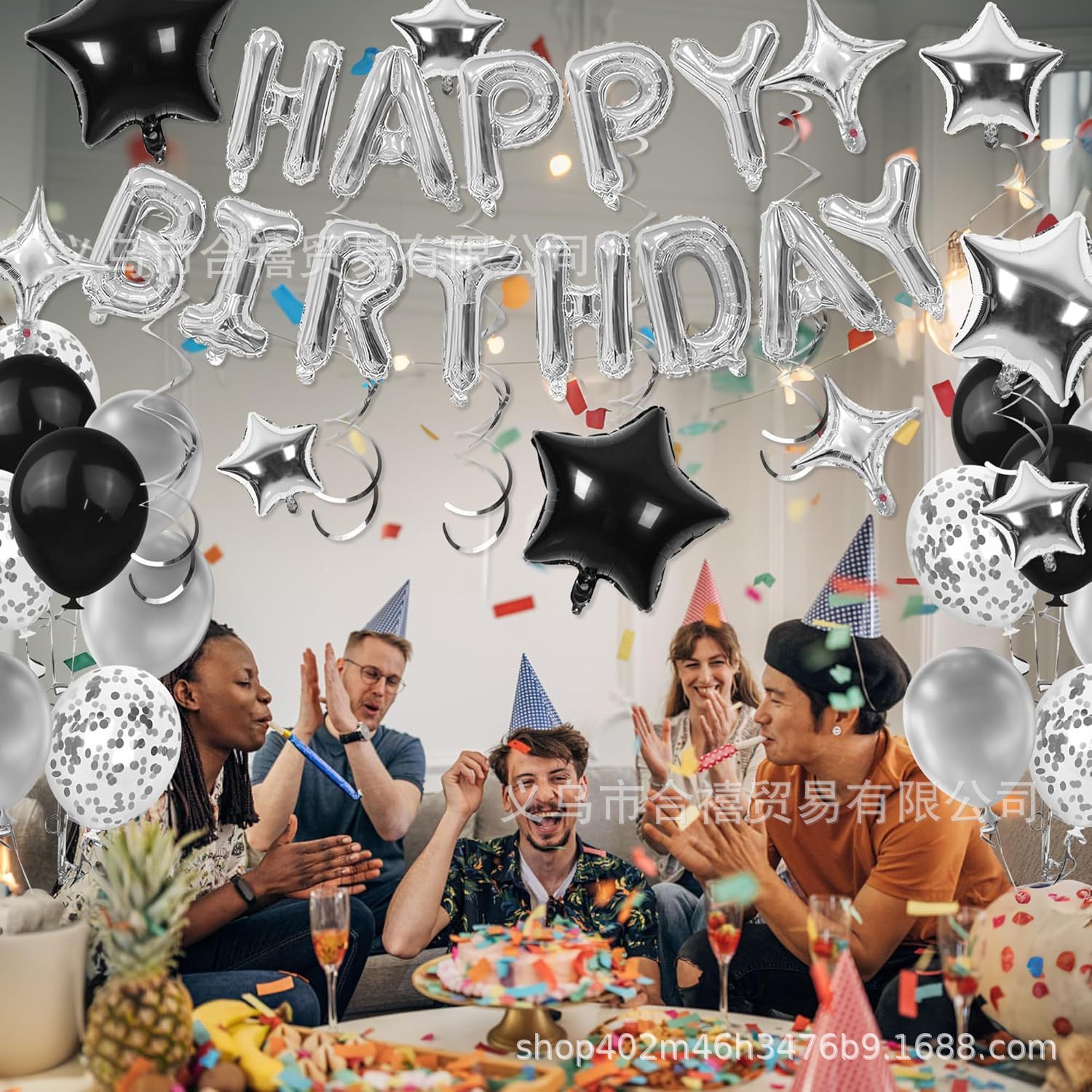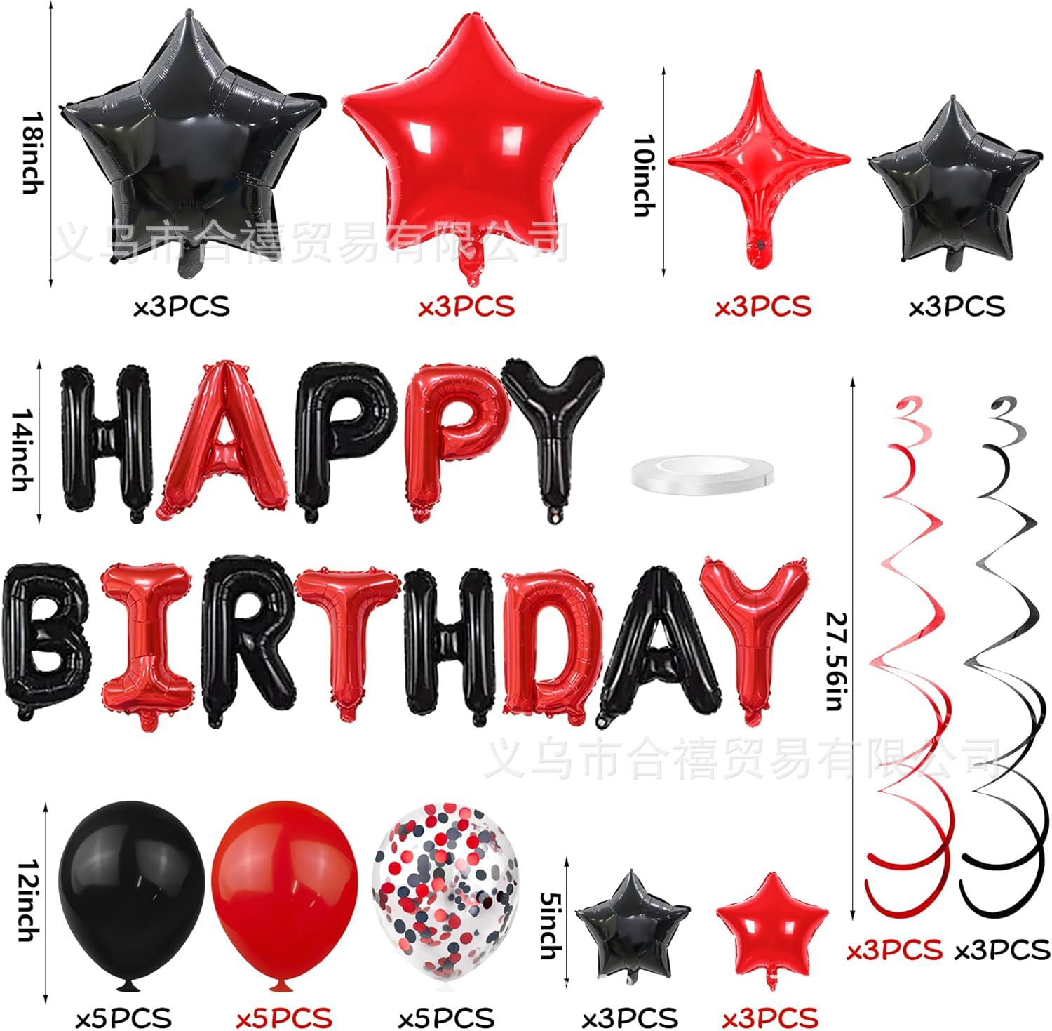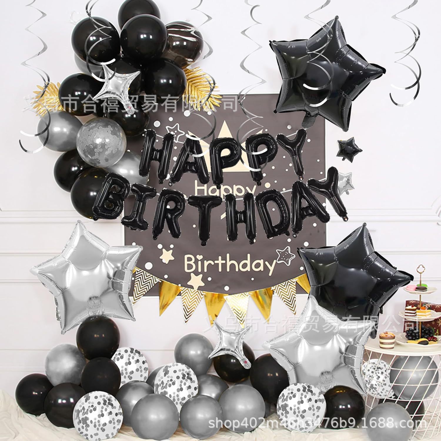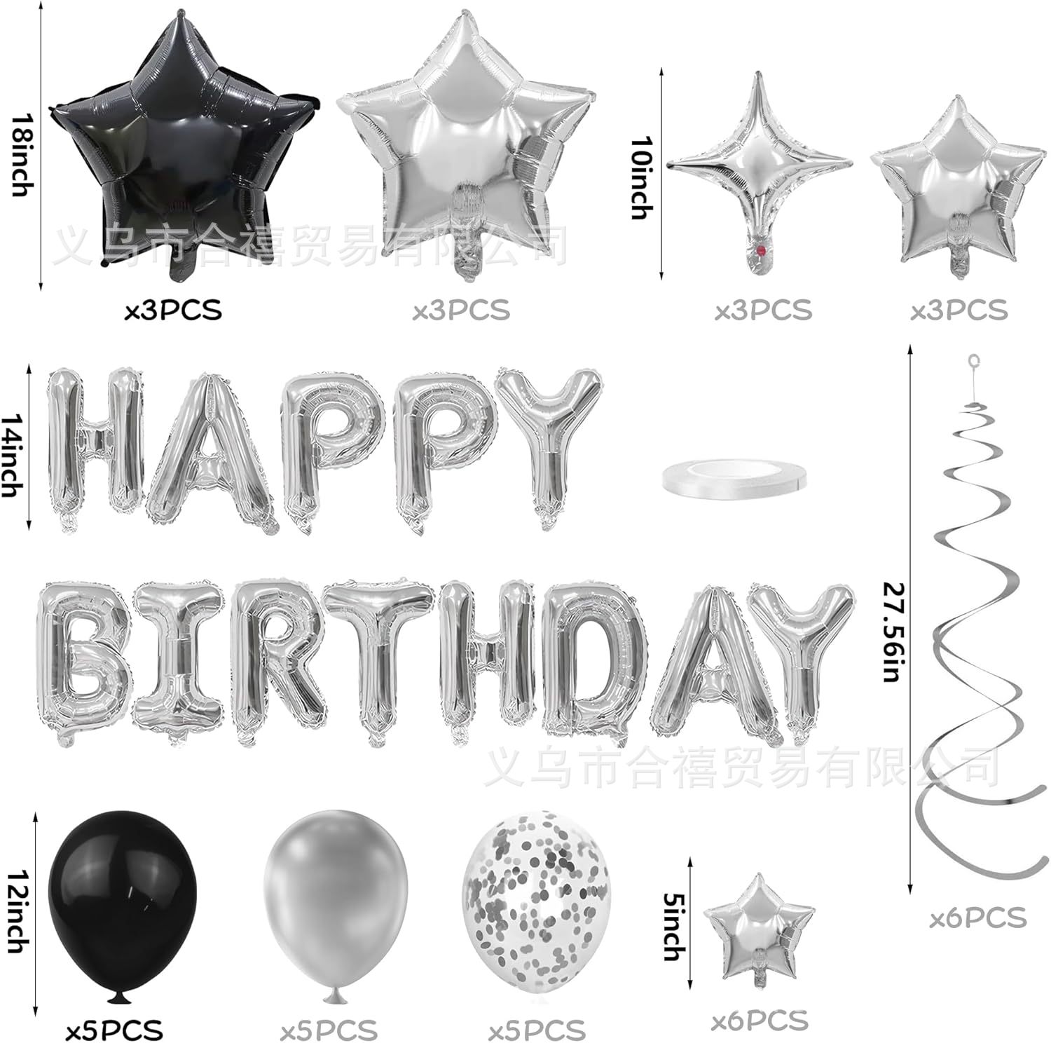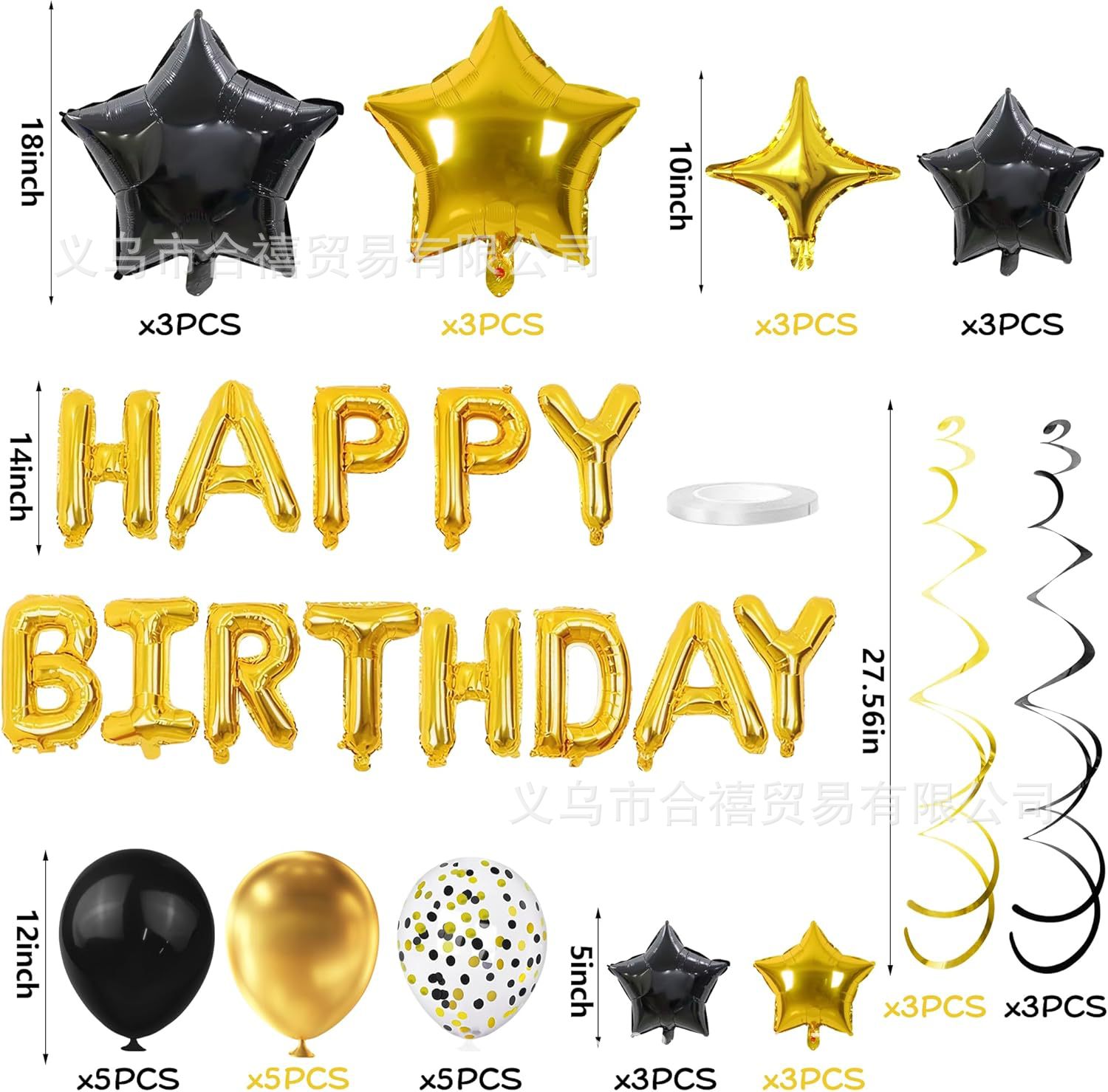 아마존 장식 축하 16inch 생일 축하 편지 스타 알루미늄 필름 풍선 나선형 세트 파티 새로운 블랙