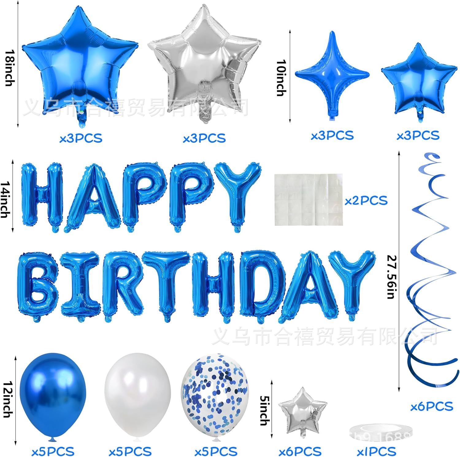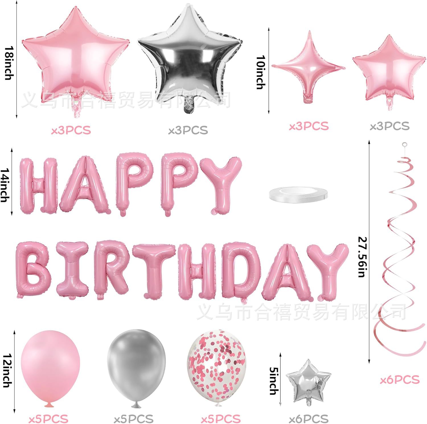 아마존 장식 축하 16inch 생일 축하 편지 스타 알루미늄 필름 풍선 나선형 세트 파티 새로운 블랙스토어 가기