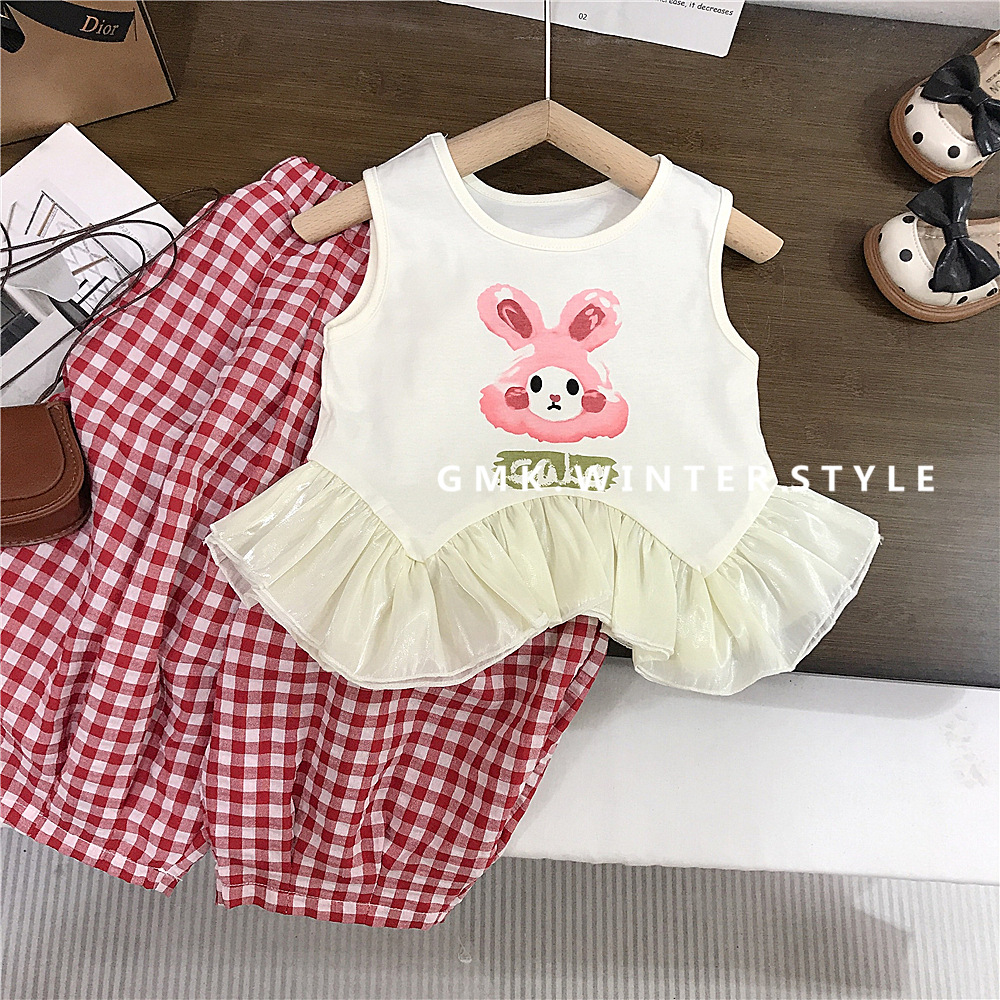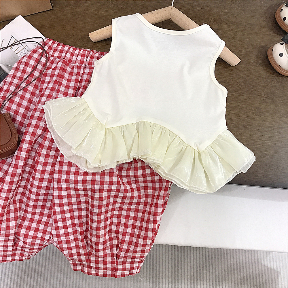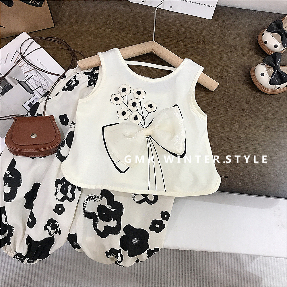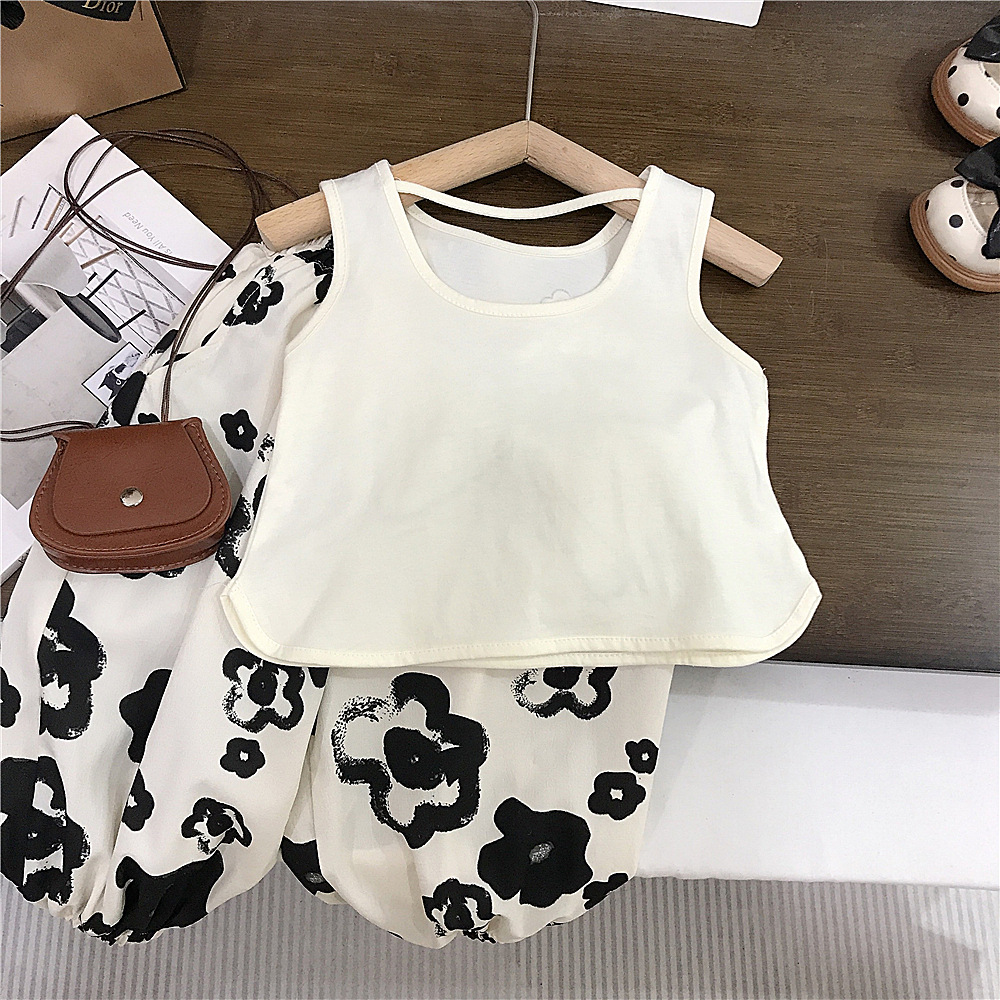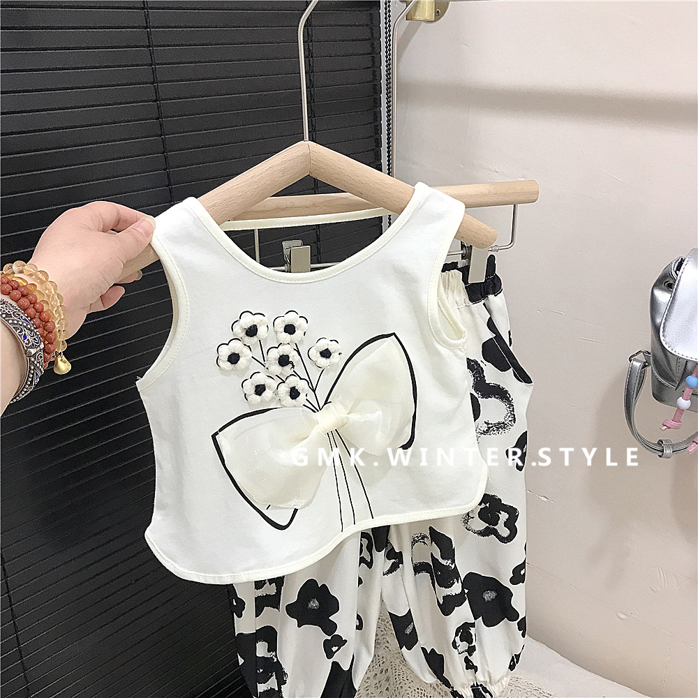 여자 여름 조끼 세트 새로운 어린이 모기 방지 바지 카프리 바지 투피스 아기 여름 얇은 옷 대외 무역스토어 가기