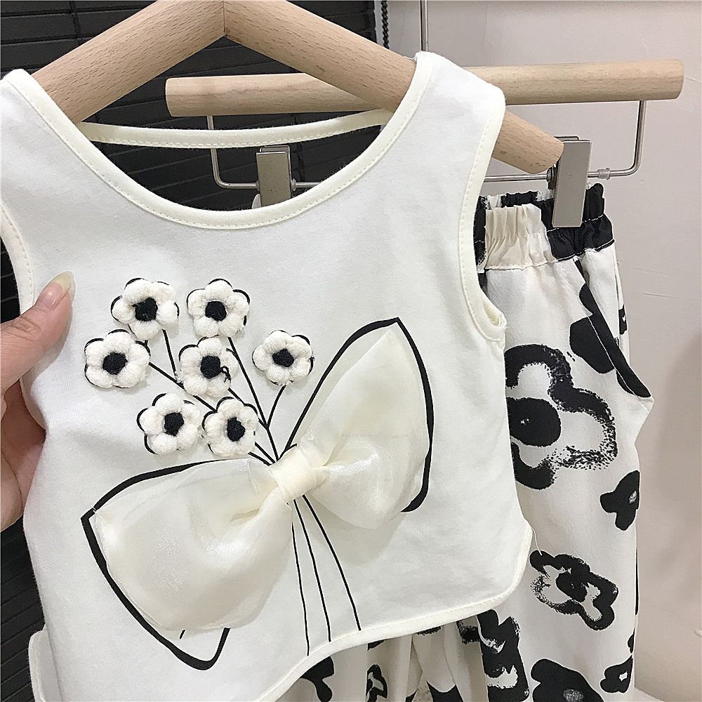 여자 여름 조끼 세트 새로운 어린이 모기 방지 바지 카프리 바지 투피스 아기 여름 얇은 옷 대외 무역