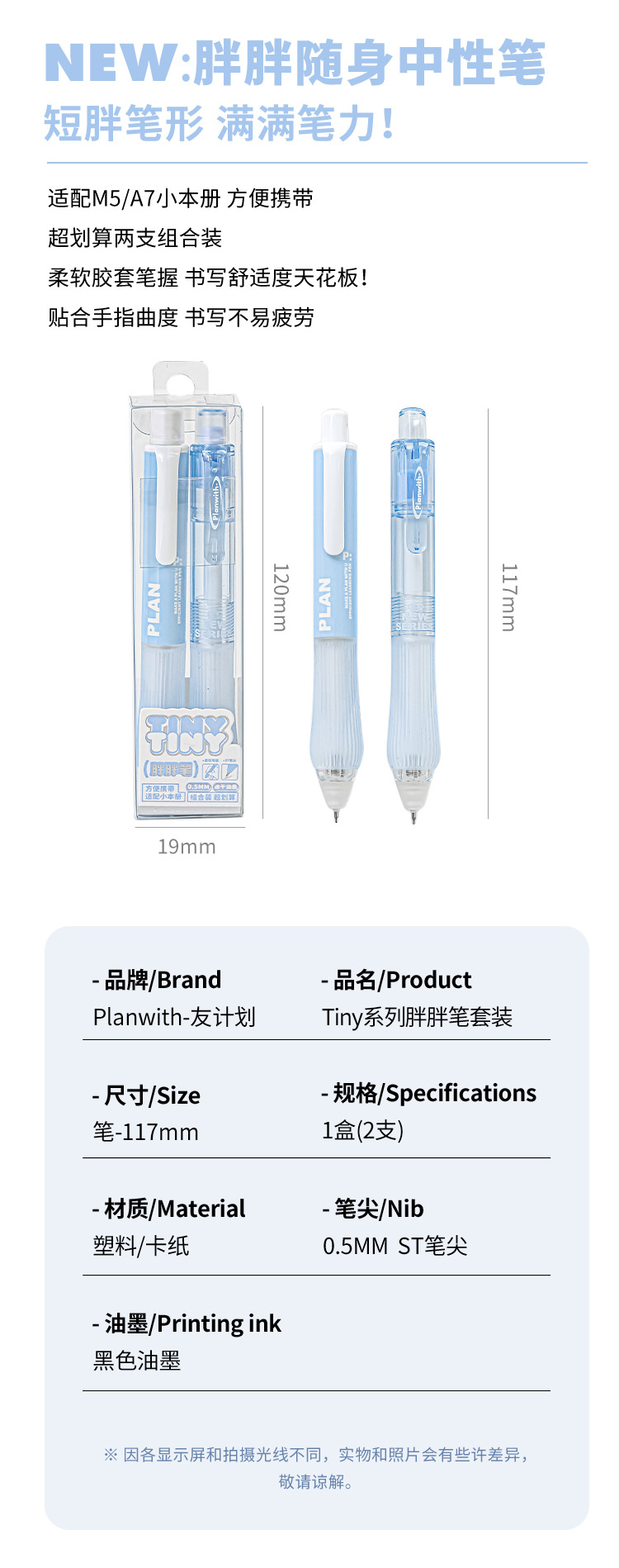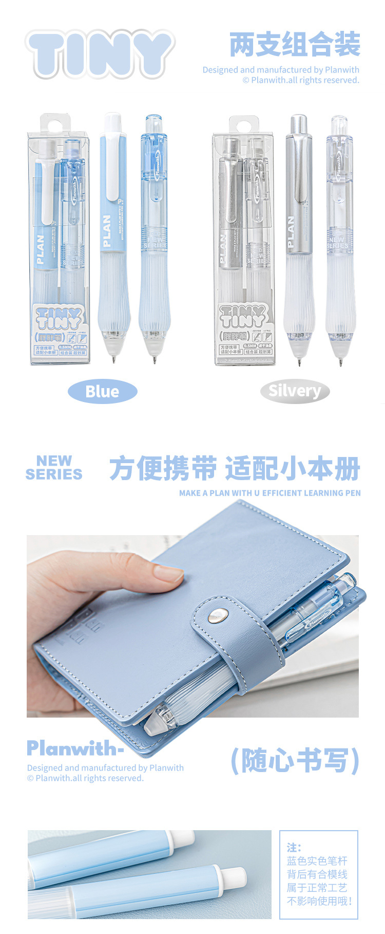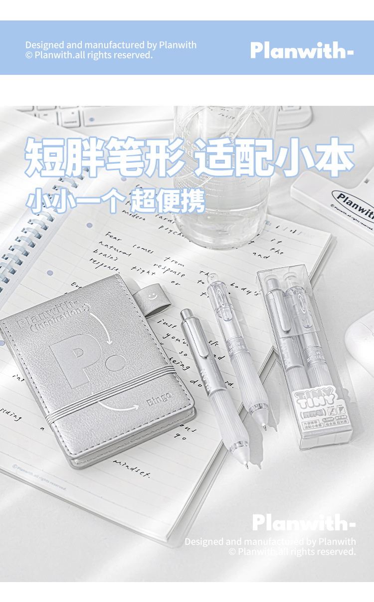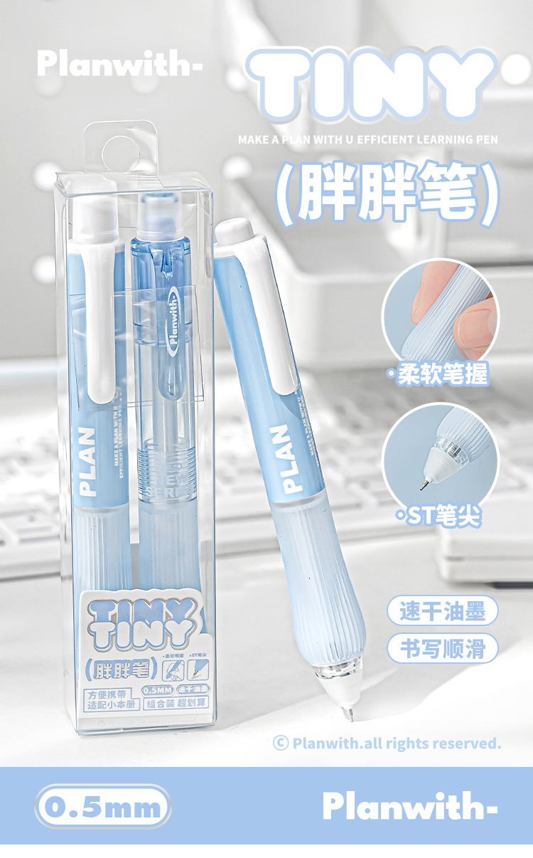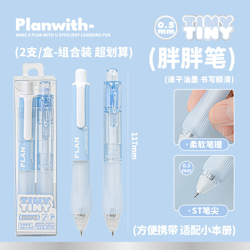 Planwith 작은 통통한 펜 2 세트 창조적 인 학생 포켓 펜 작은 신선한 간단한 휴대용 빠른 건조 펜