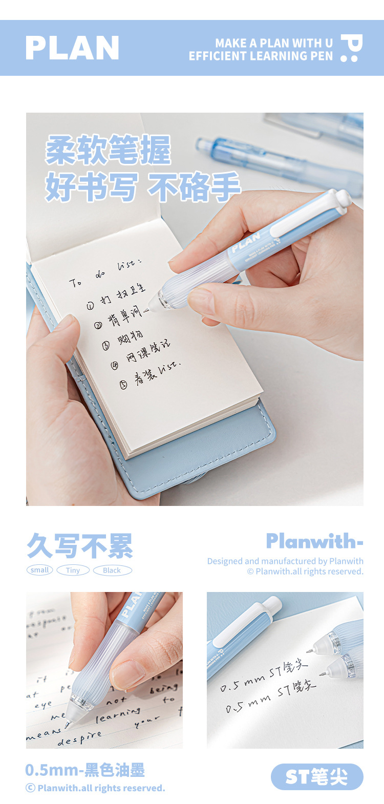 Planwith 작은 통통한 펜 2 세트 창조적 인 학생 포켓 펜 작은 신선한 간단한 휴대용 빠른 건조 펜스토어 가기