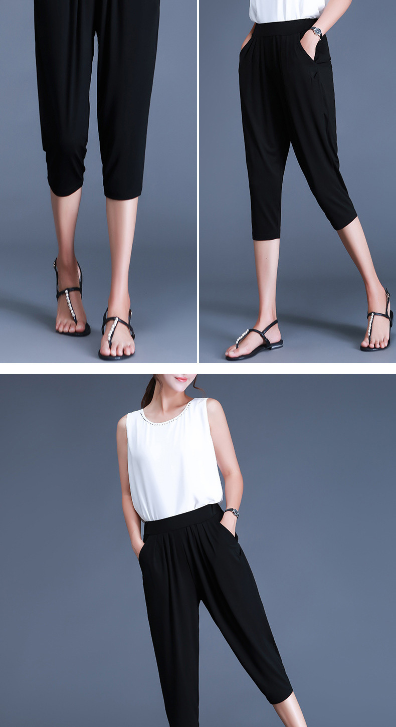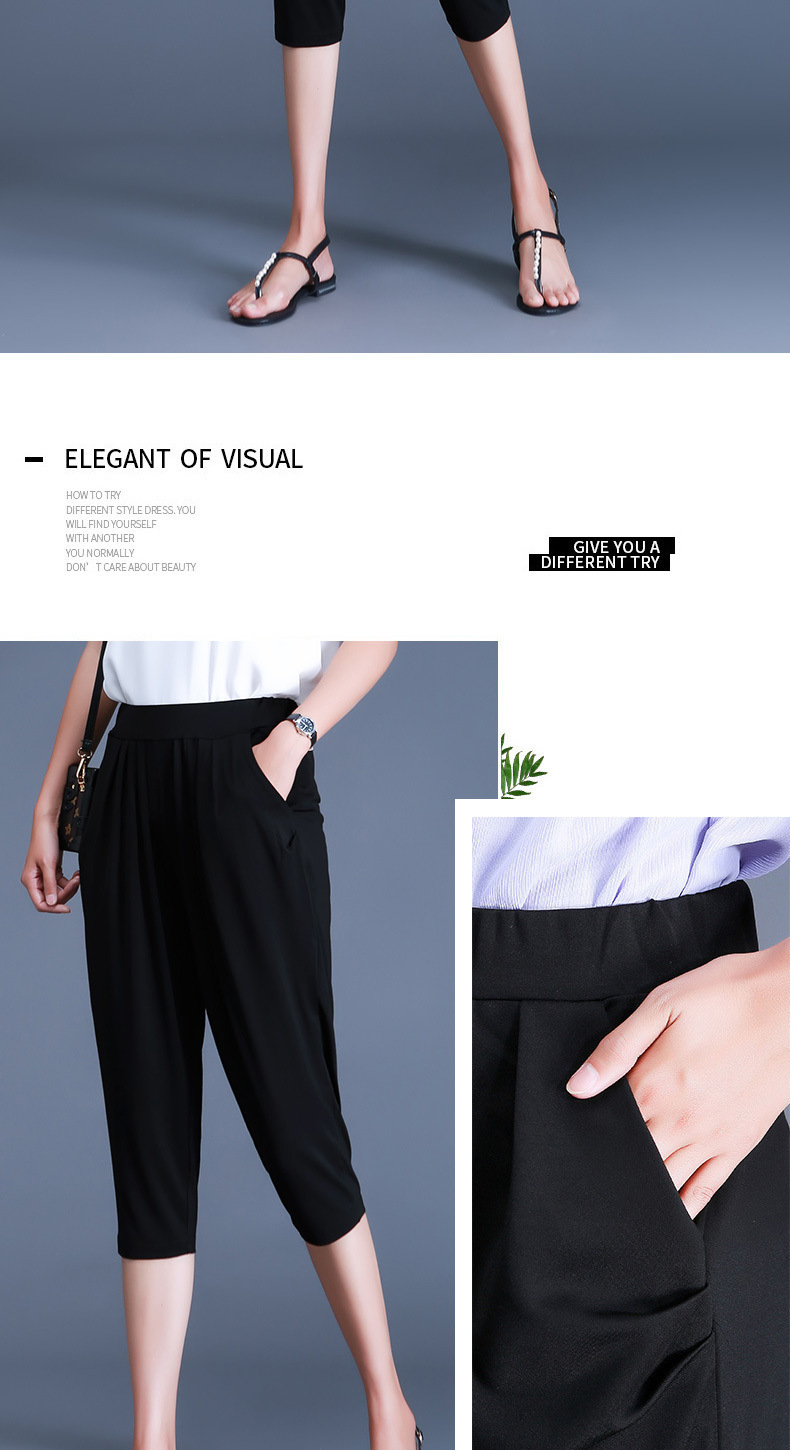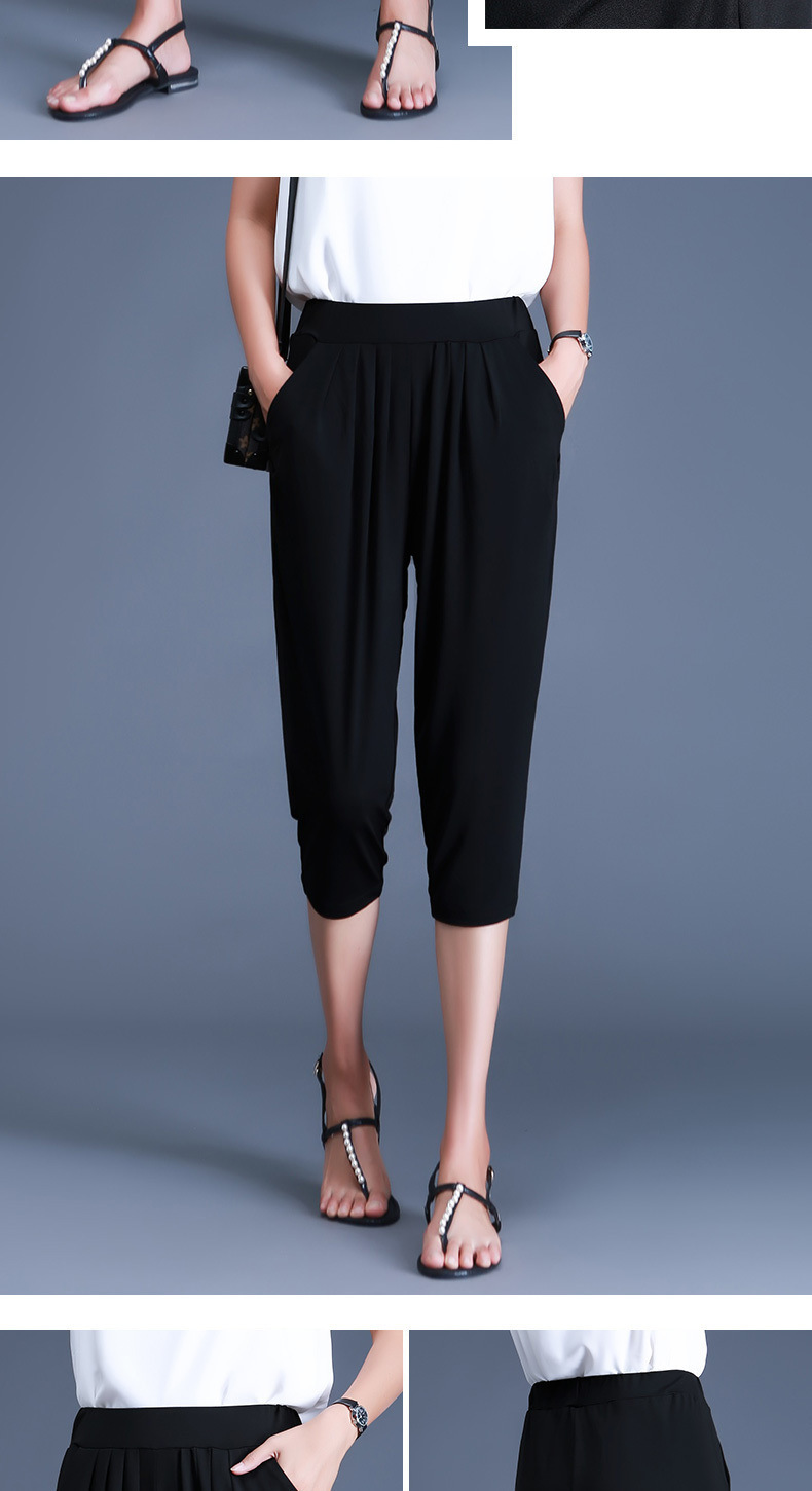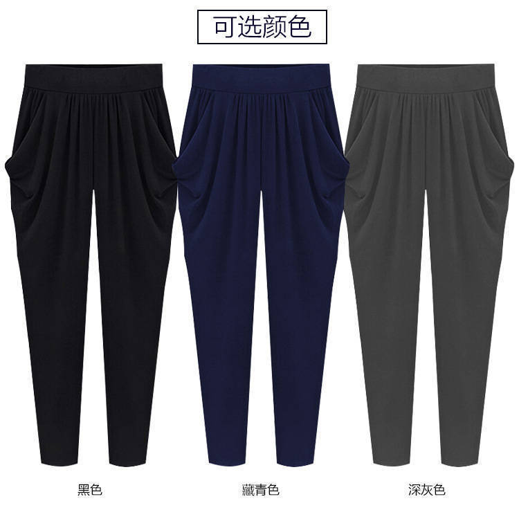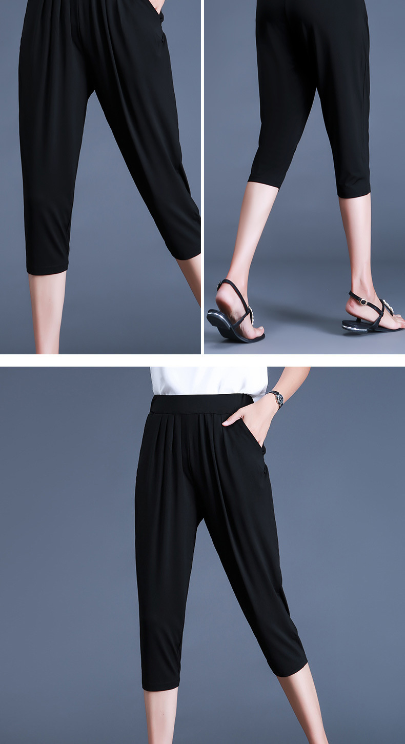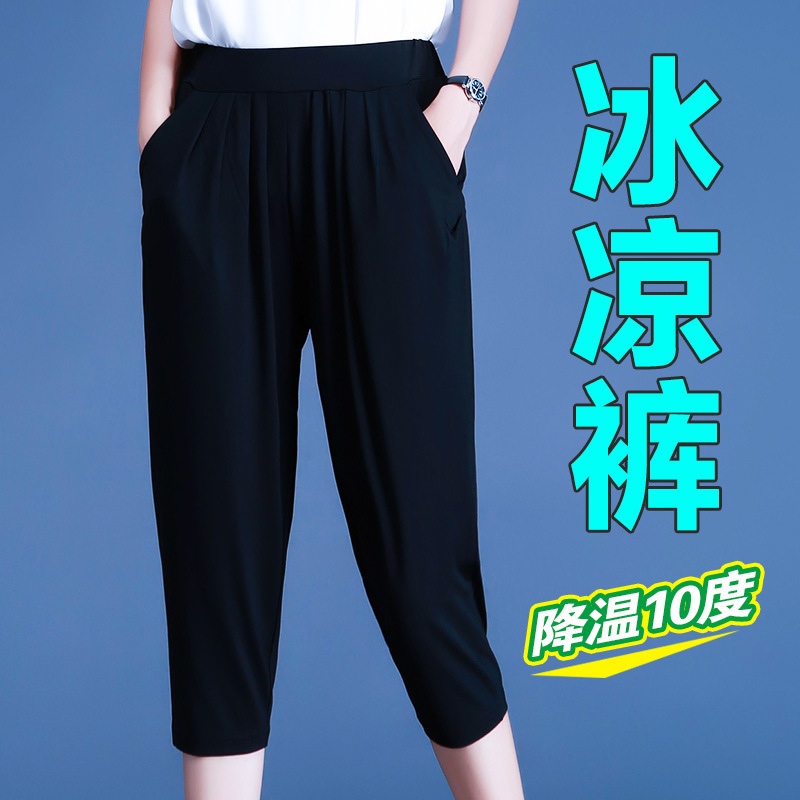 여름용 여성용 플러스 사이즈 7부 팬츠, 얇은 플러스 사이즈, 중년 엄마를 위한 루즈한 아이스 실크 팻 하렘 팬츠스토어 가기