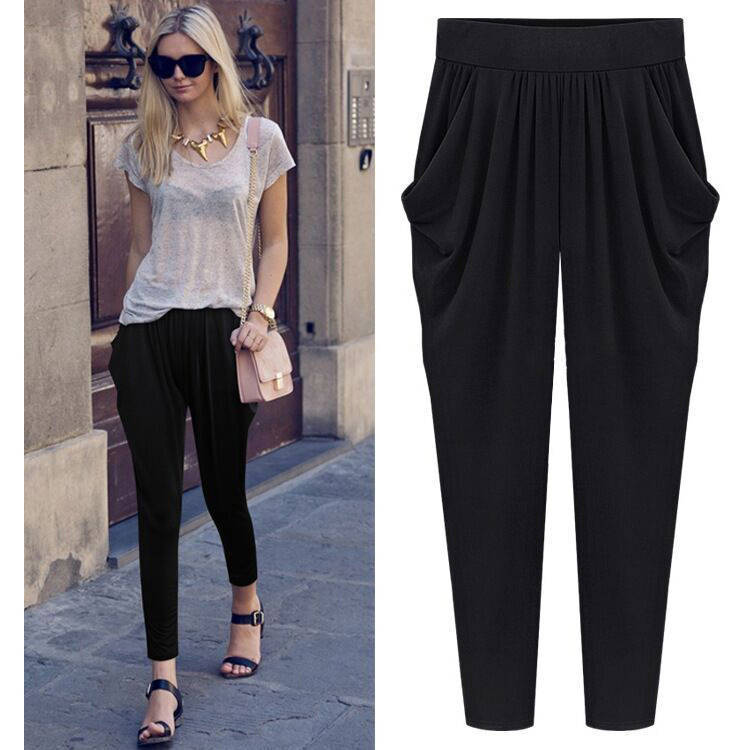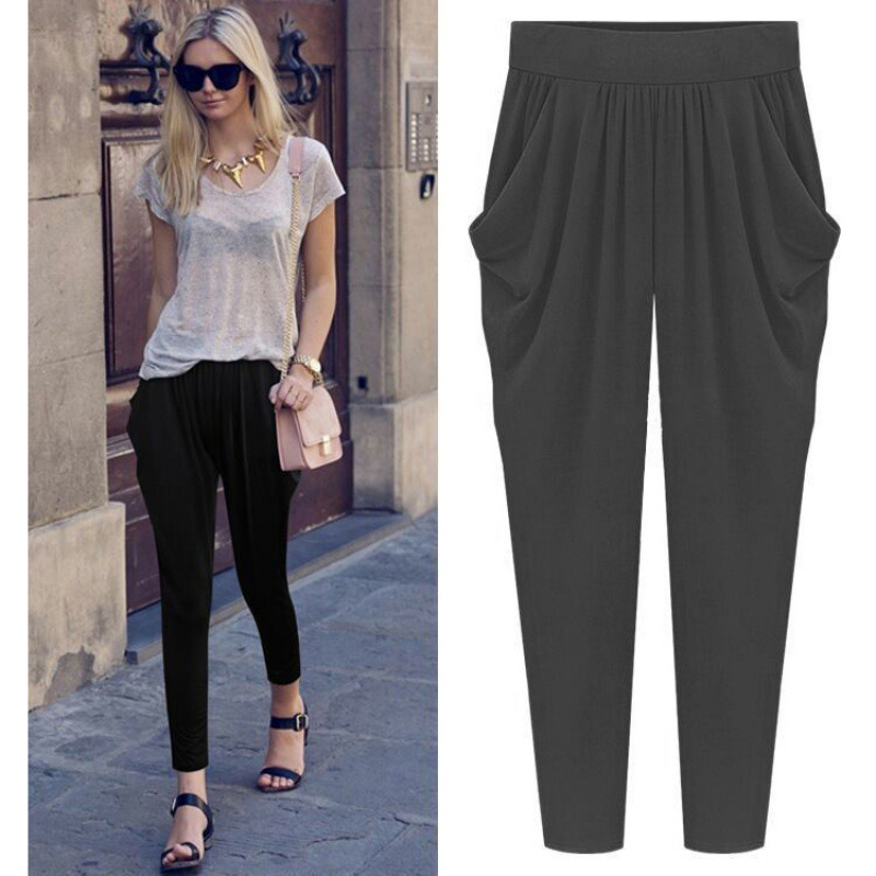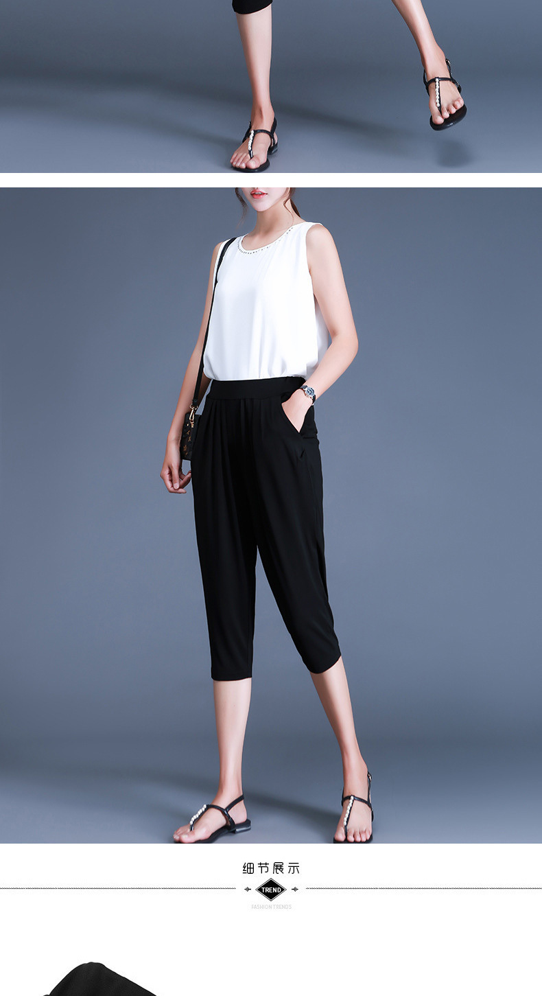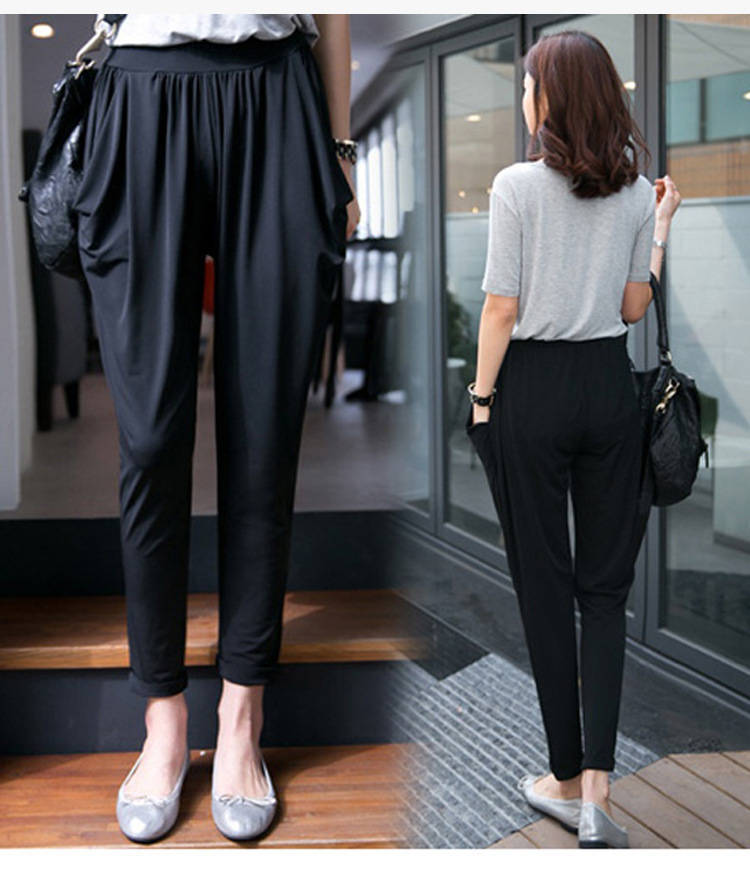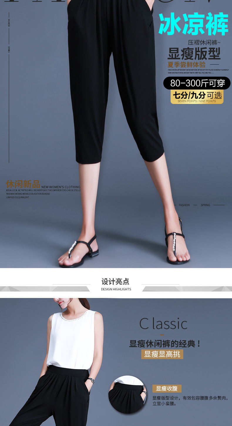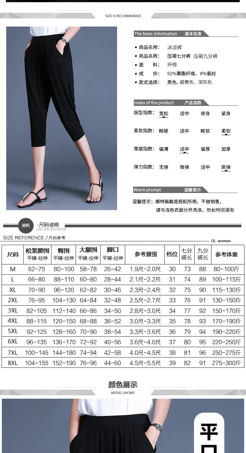 여름용 여성용 플러스 사이즈 7부 팬츠, 얇은 플러스 사이즈, 중년 엄마를 위한 루즈한 아이스 실크 팻 하렘 팬츠스토어 가기