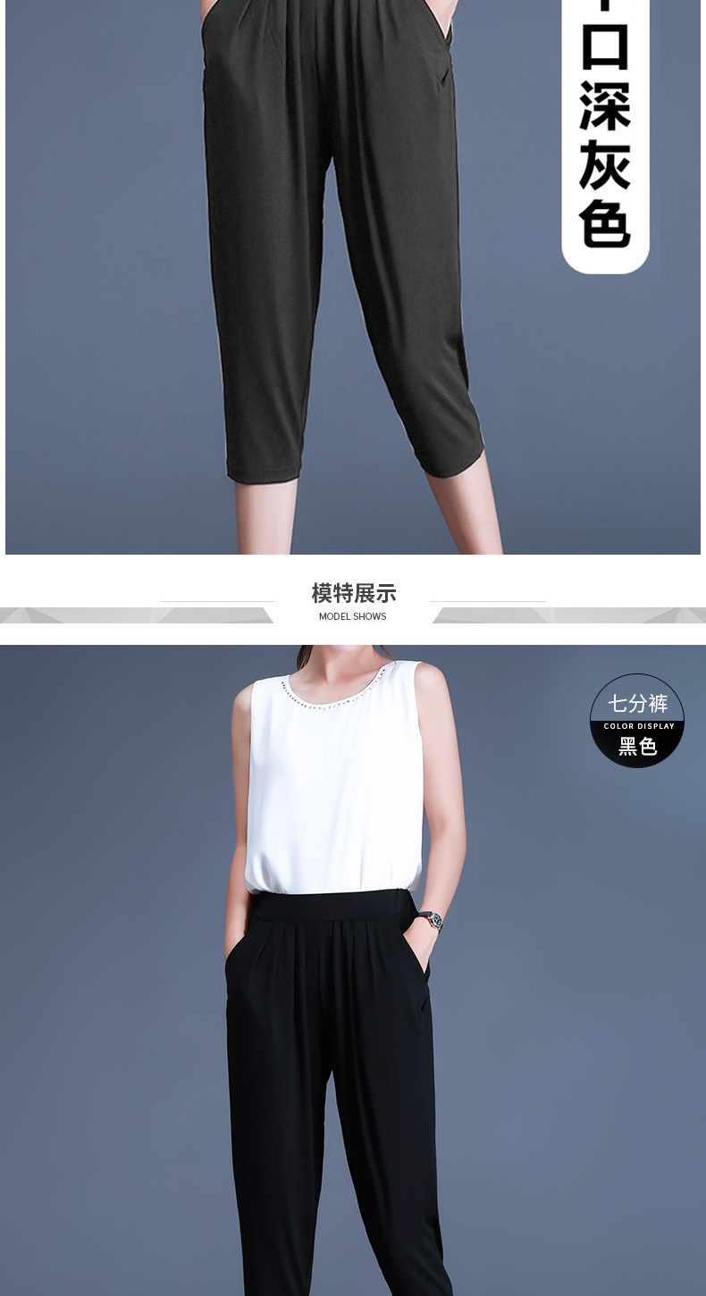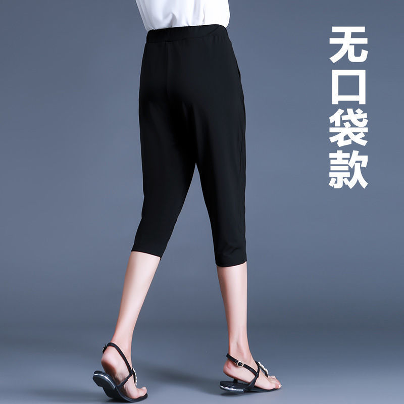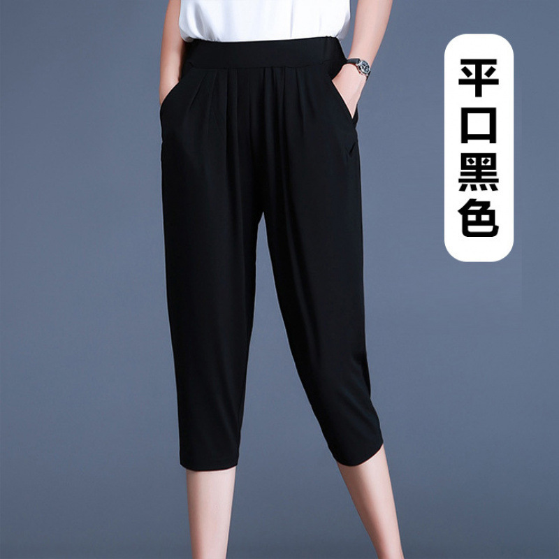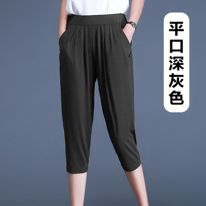 여름용 여성용 플러스 사이즈 7부 팬츠, 얇은 플러스 사이즈, 중년 엄마를 위한 루즈한 아이스 실크 팻 하렘 팬츠