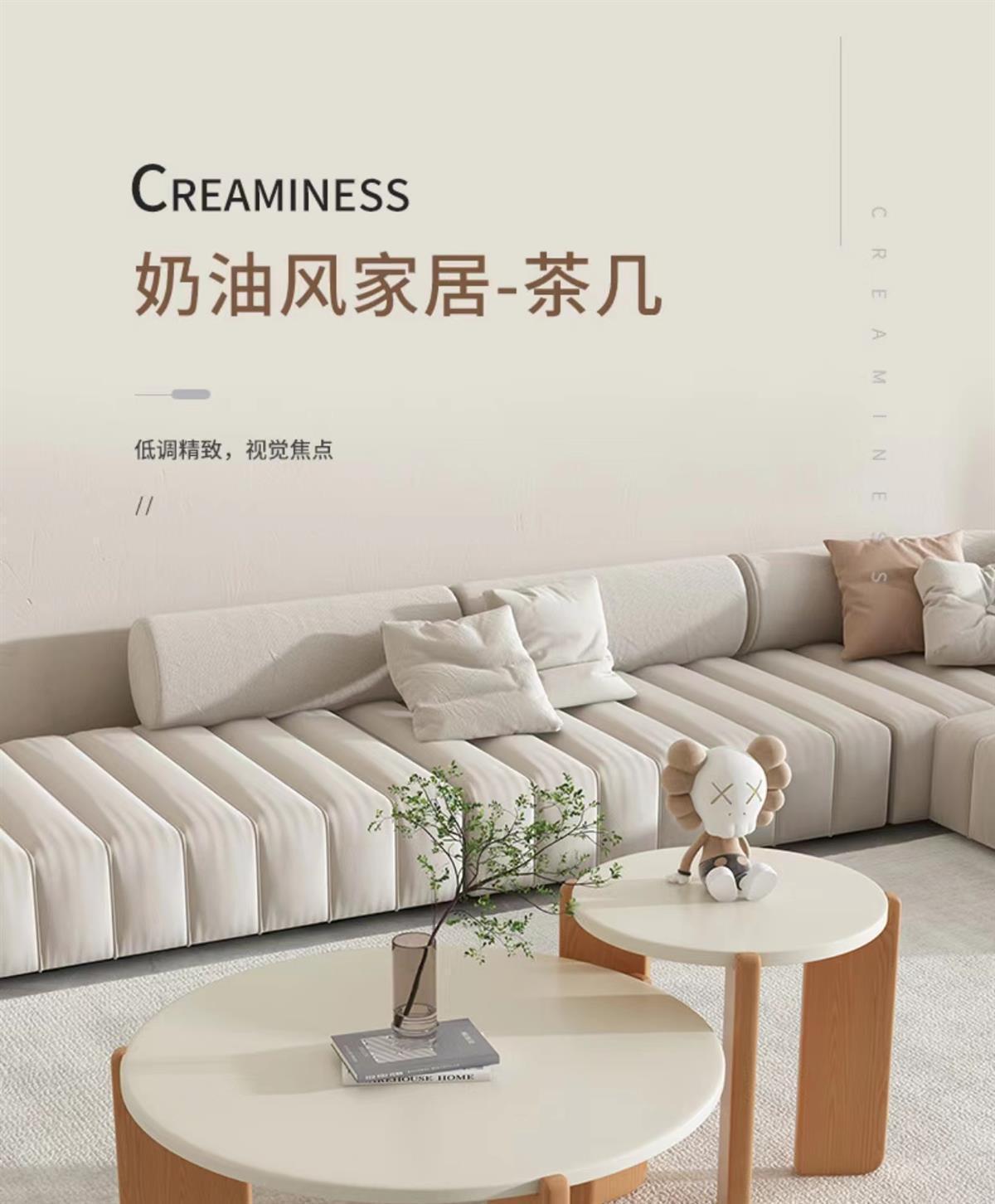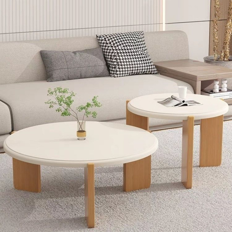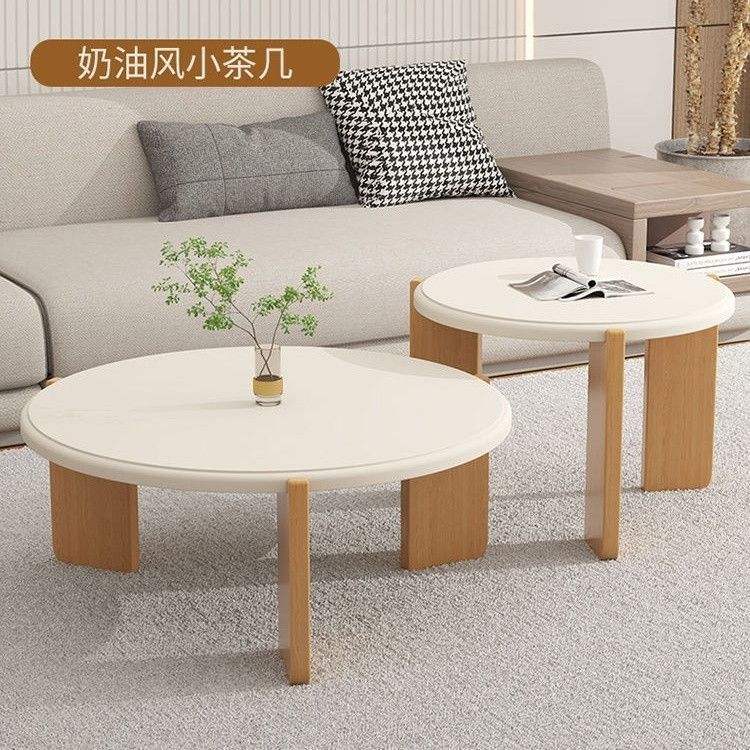 가정용 크림 사일런트 스타일 작은 아파트 라운드 커피 테이블 거실 간단한 코너 현대 테이블 홈스테이 테이블 라이트 럭셔리 폭발 스타일