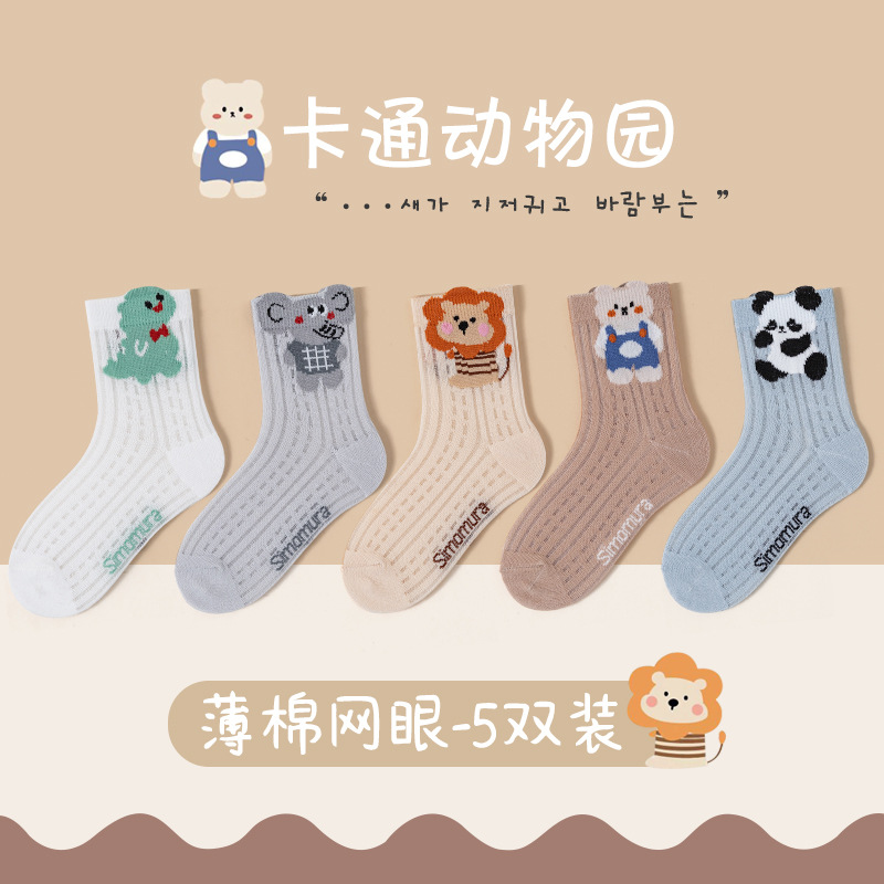 어린이 양말 2025 봄 신제품 카테고리 A 땀 흡수 및 통기성 소년 동물 시리즈 메쉬면 양말 도매