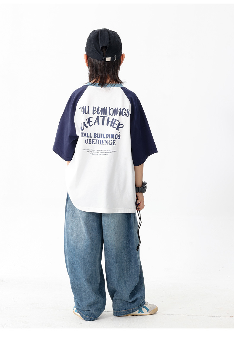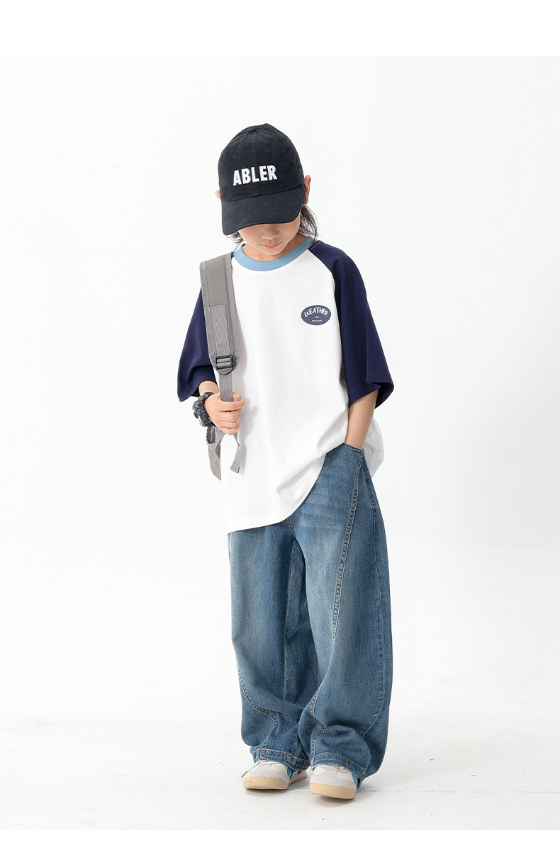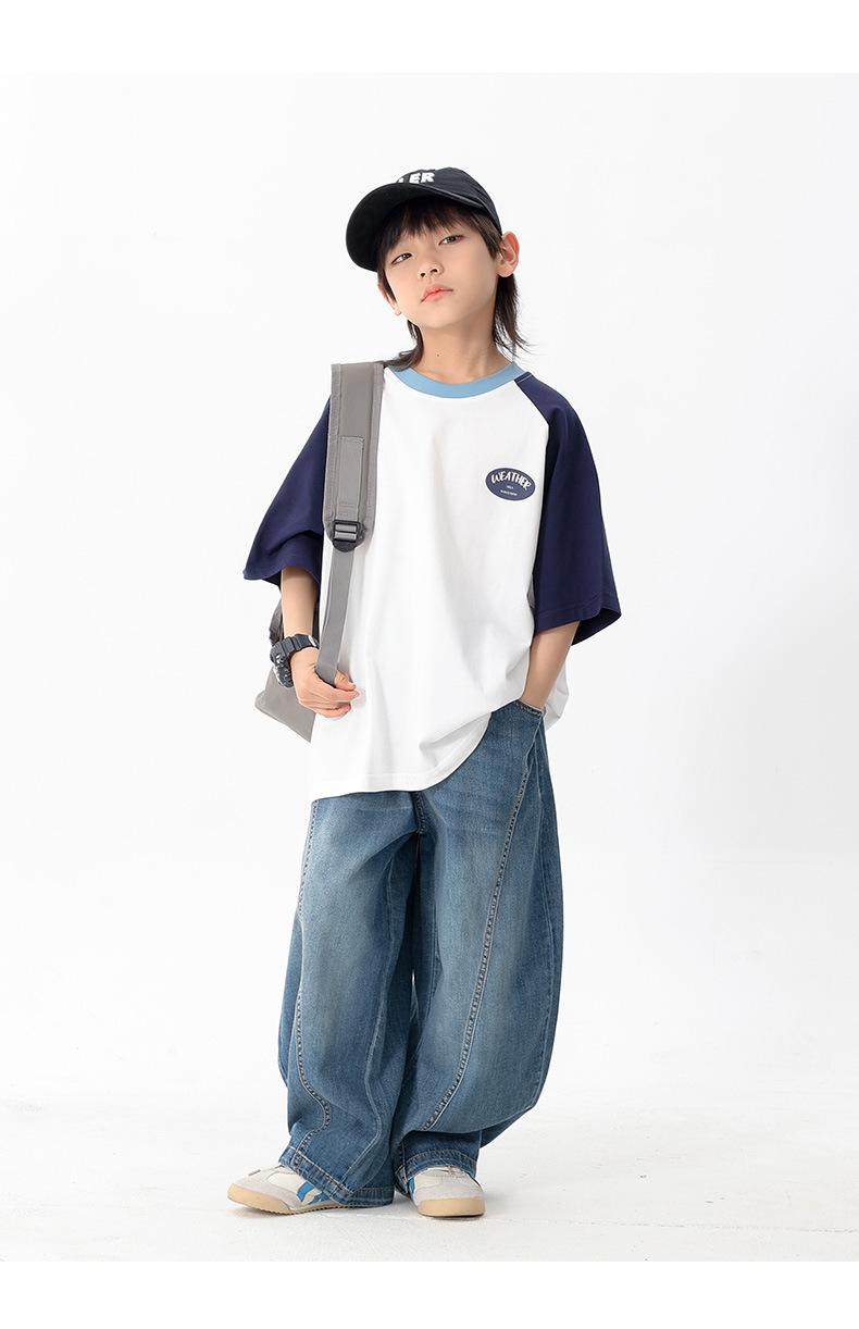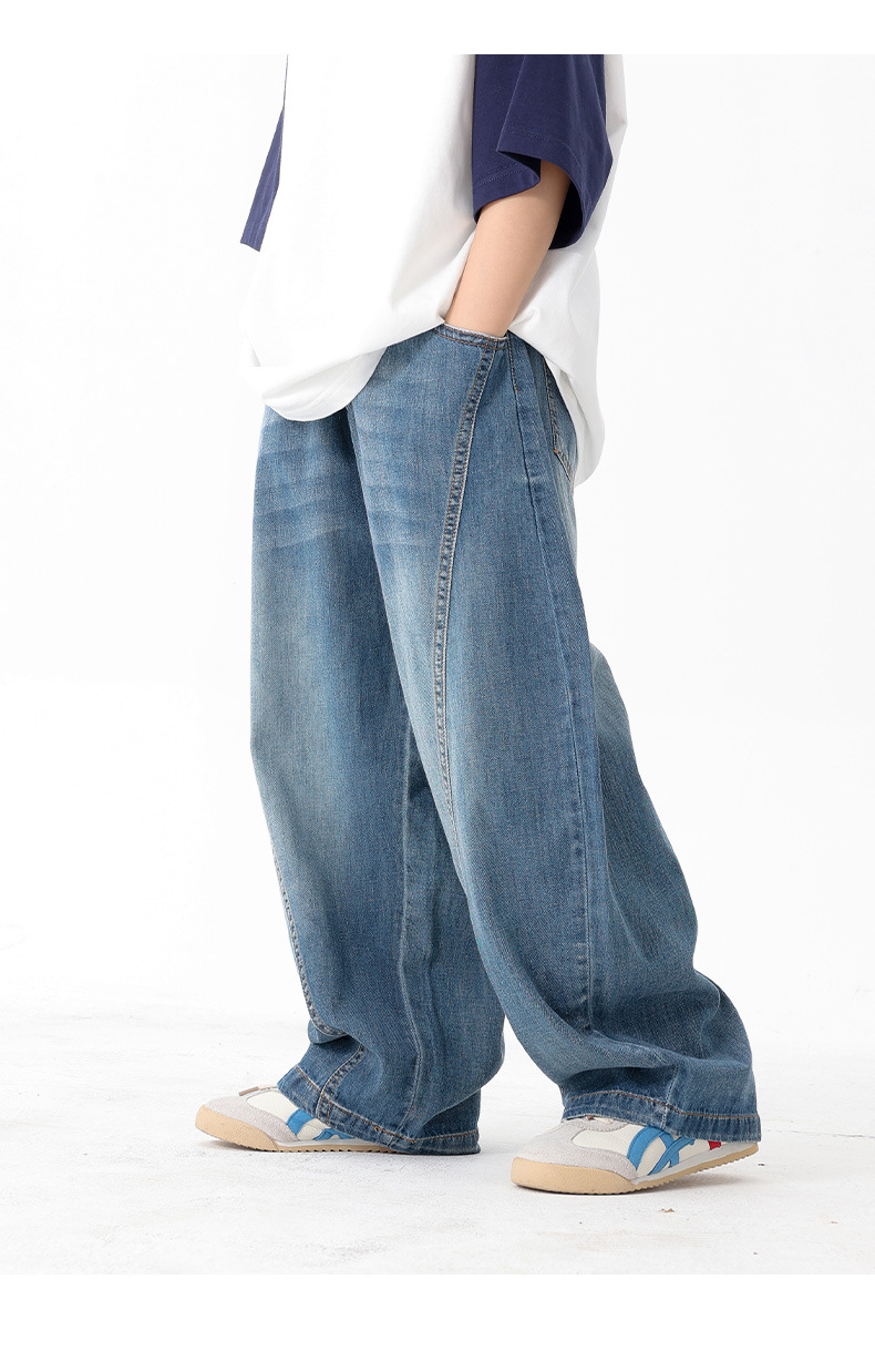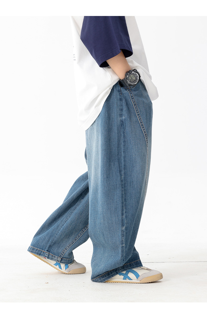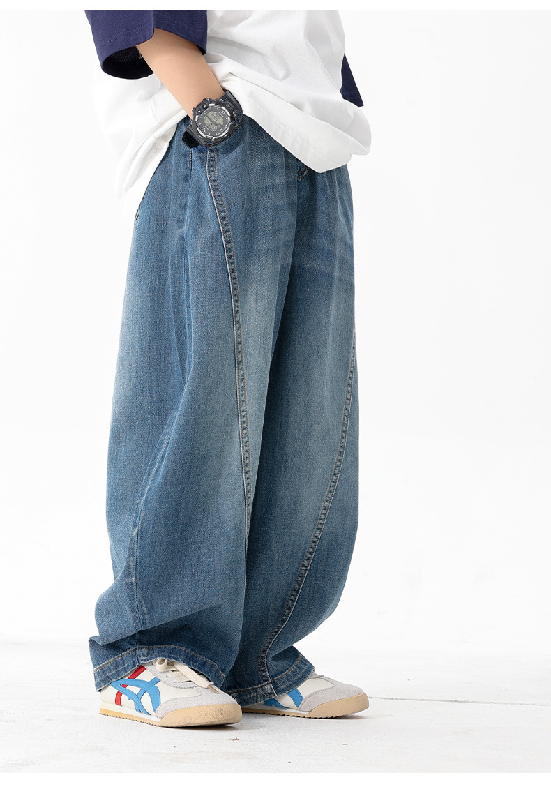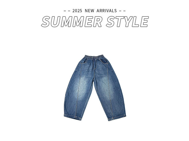 일본 소년 청바지 새로운 2025 여름 어린이 캐주얼 시미 타르 바지 잘 생긴 남자 아이스 실크 청바지 트렌디스토어 가기