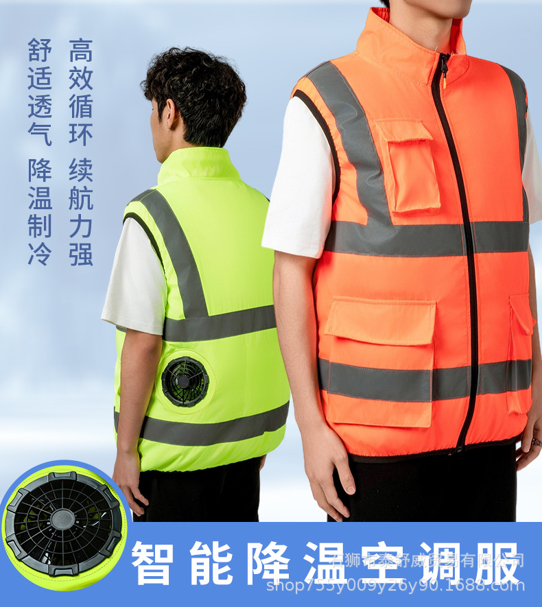 공장 맞춤형 짧은 소매 냉각 에어컨 의류 새로운 야외 사이트 안전 의류는 남성 조끼 옷을 처리 할 수 있습니다스토어 가기