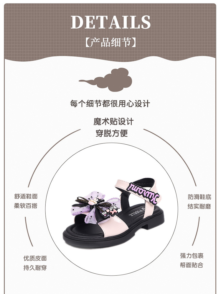 Kuromi Bow 소녀 샌들 2025 여름 어린이 만화 패션 공주 신발 서양식 해변 신발스토어 가기