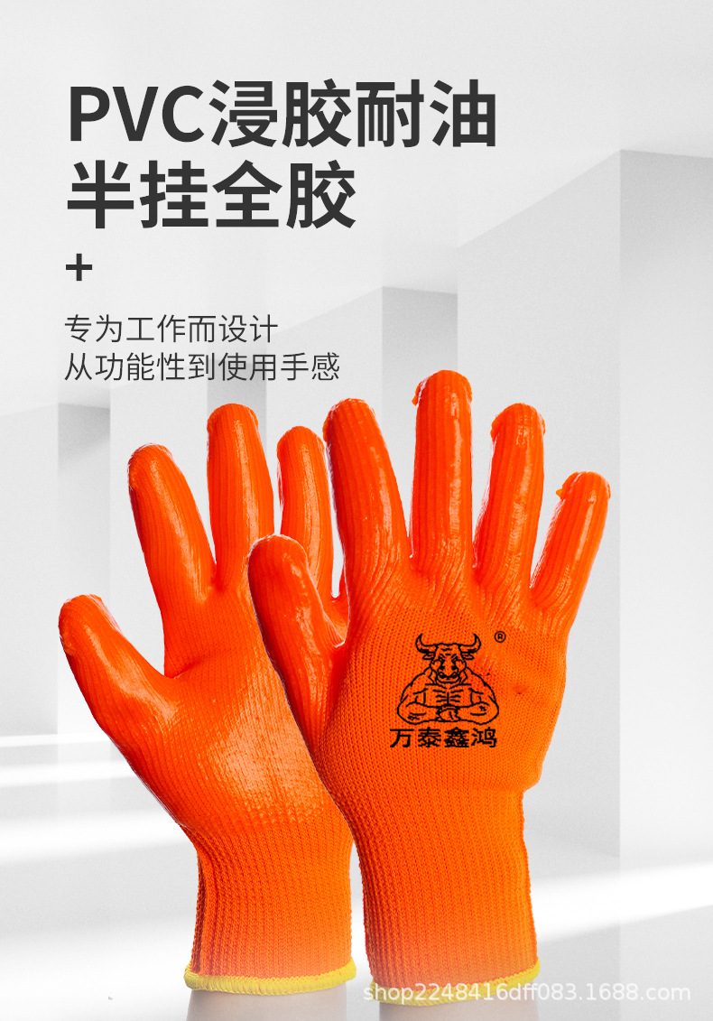 PVC 내유성 반가죽 전면 고무 코팅 작업용 미끄럼 방지 보호 장갑 내마모성 산업용 등급 내유성스토어 가기