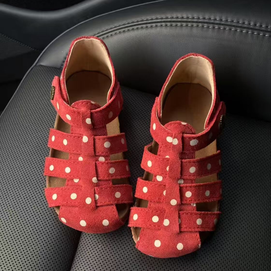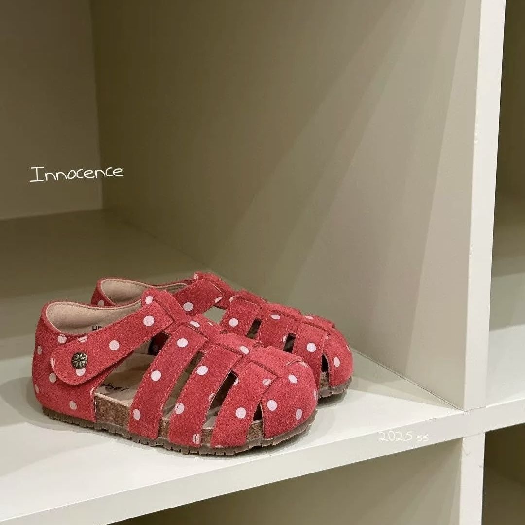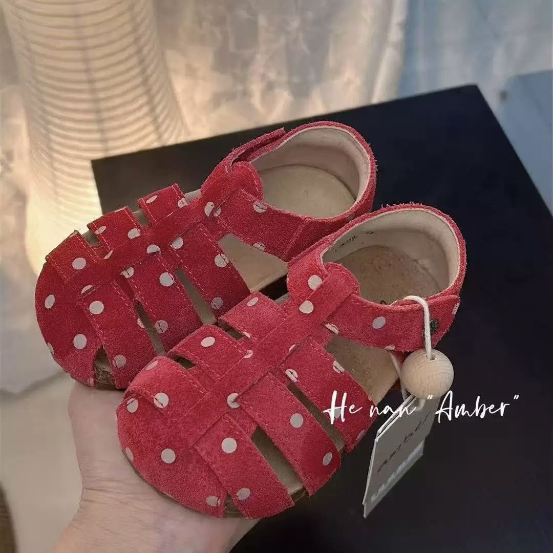 레드 폴카 도트 로마 샌들 2025 새로운 봄 공주 신발 패션 소프트 단독 여자 싱글 신발 짠 신발 여름스토어 가기