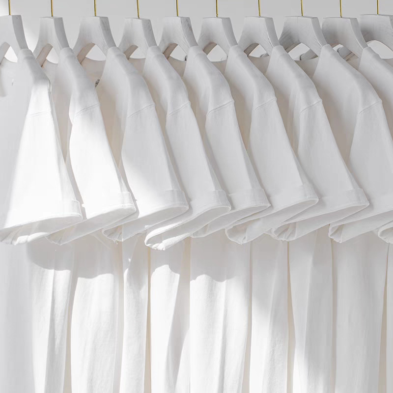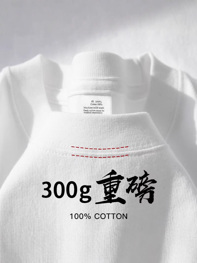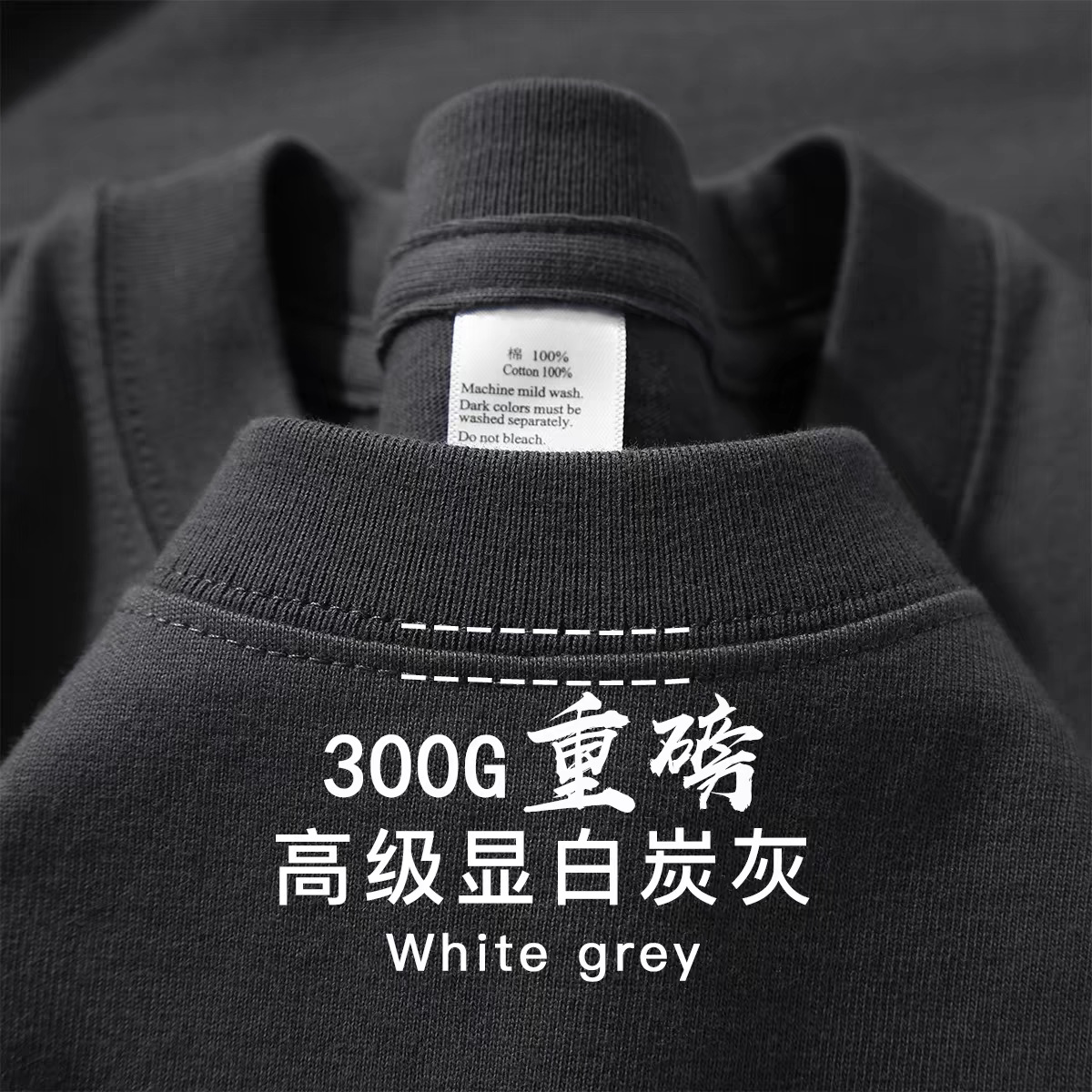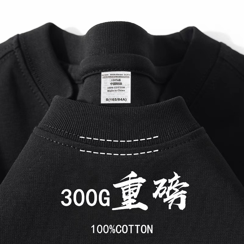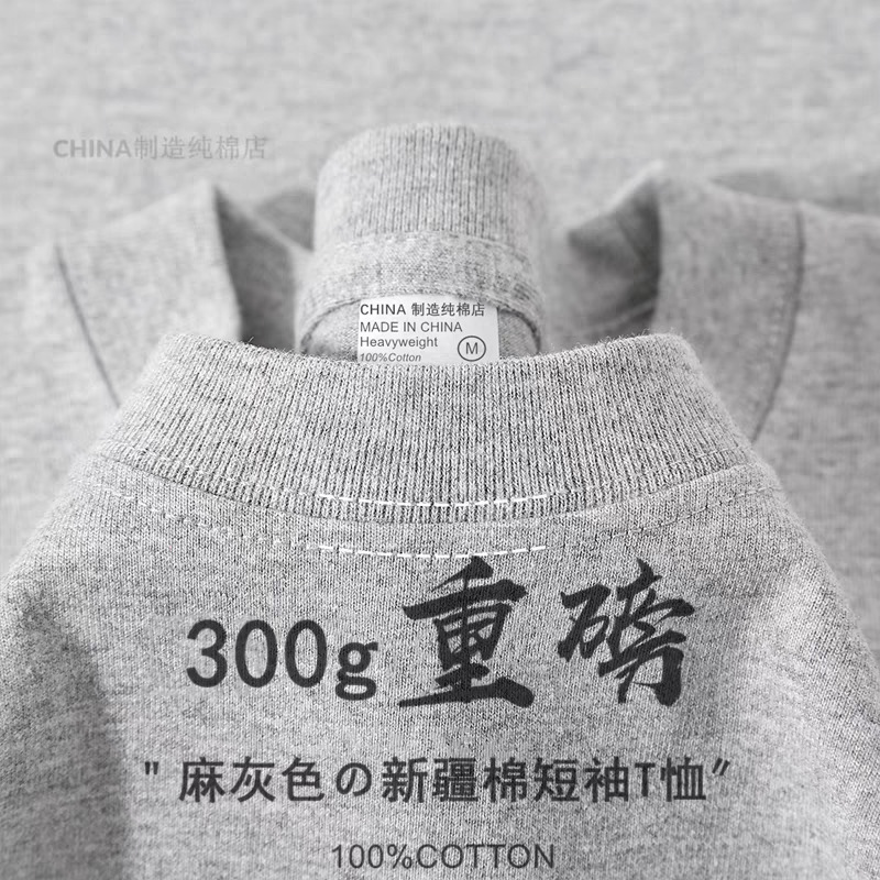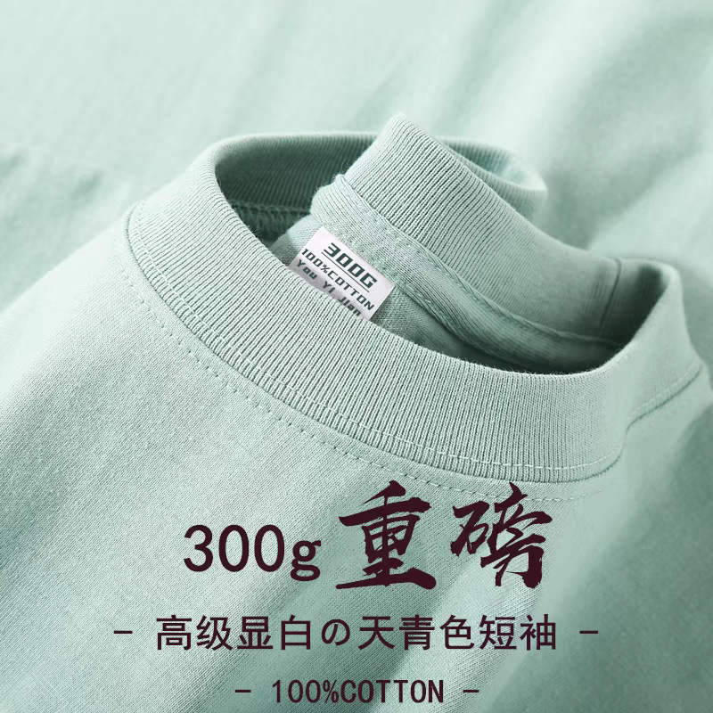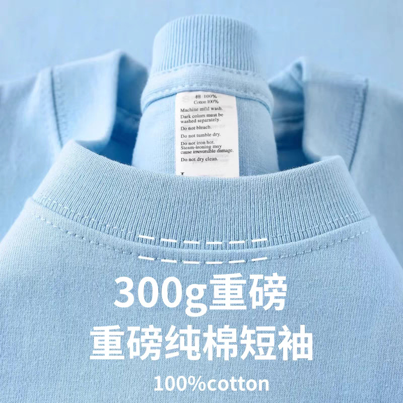 300g 미국식 반팔 면 티셔츠 커플용 단색 상의 캐주얼 라지 사이즈 이너웨어 순백색 남녀공용 통기성