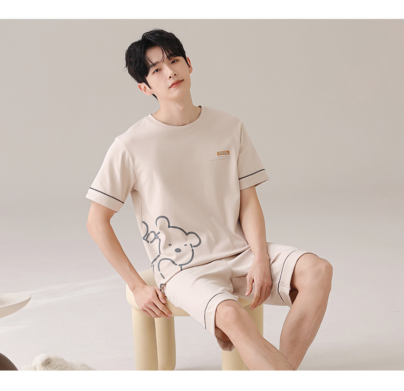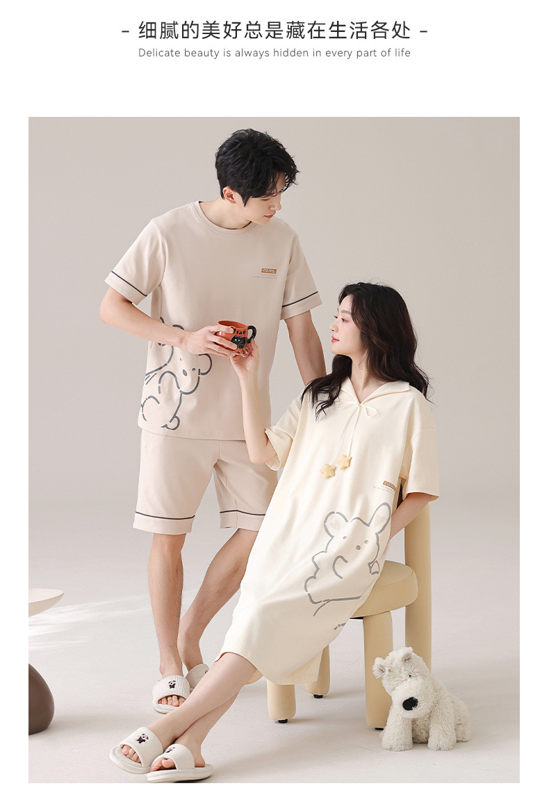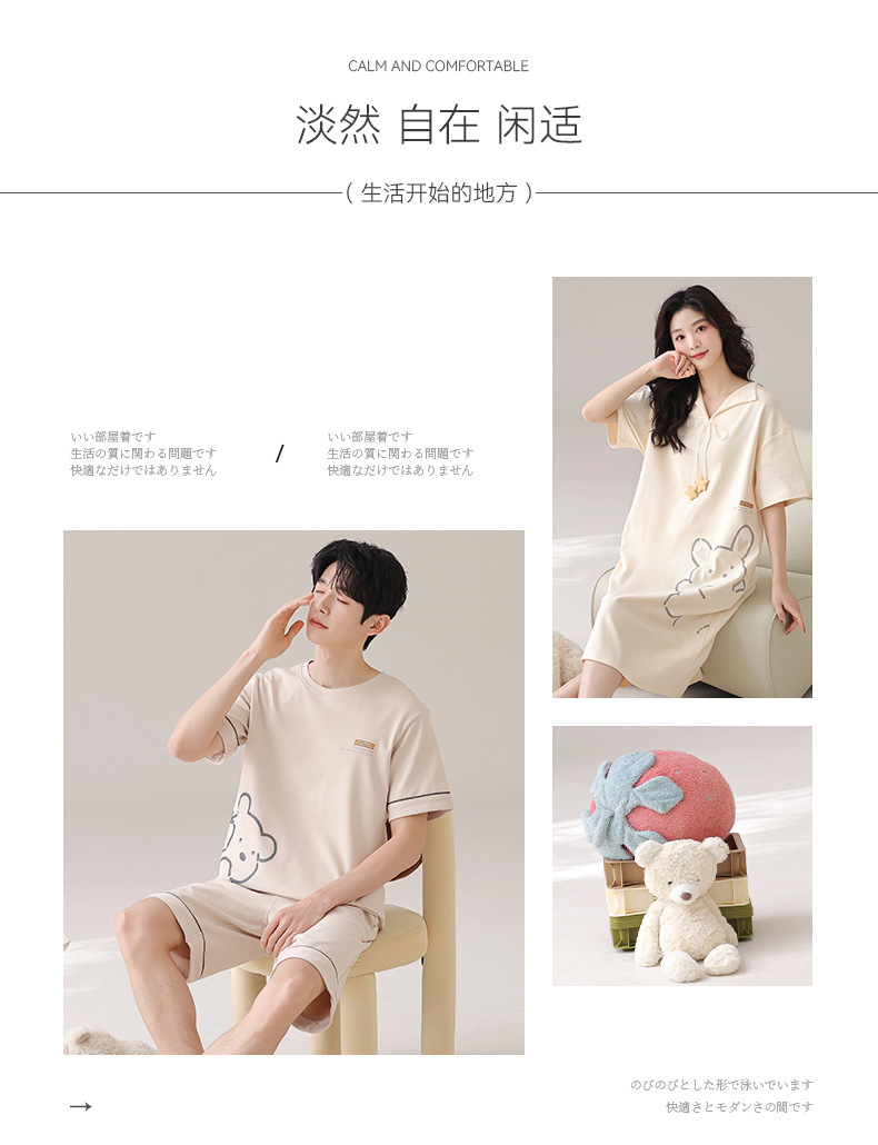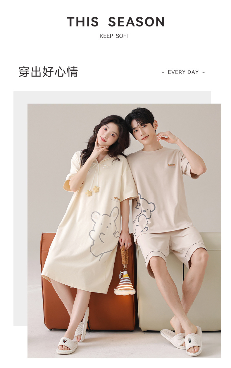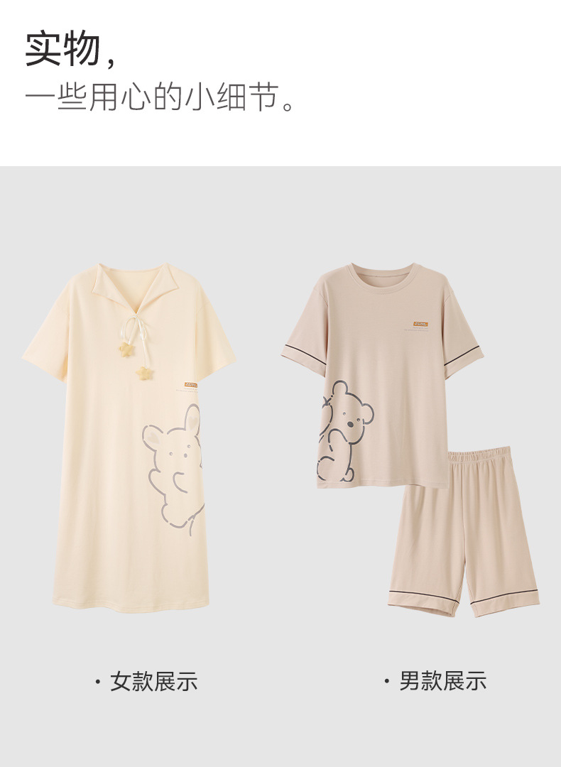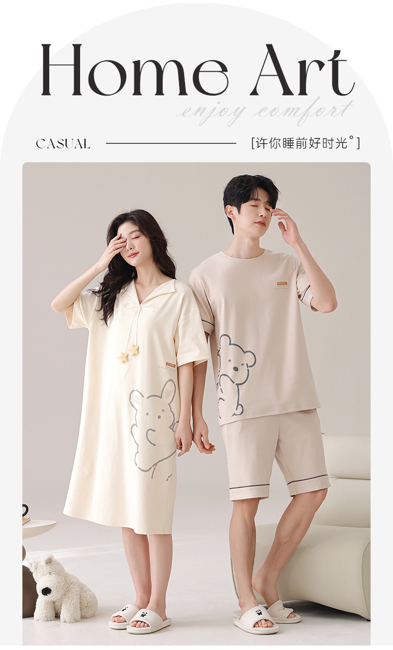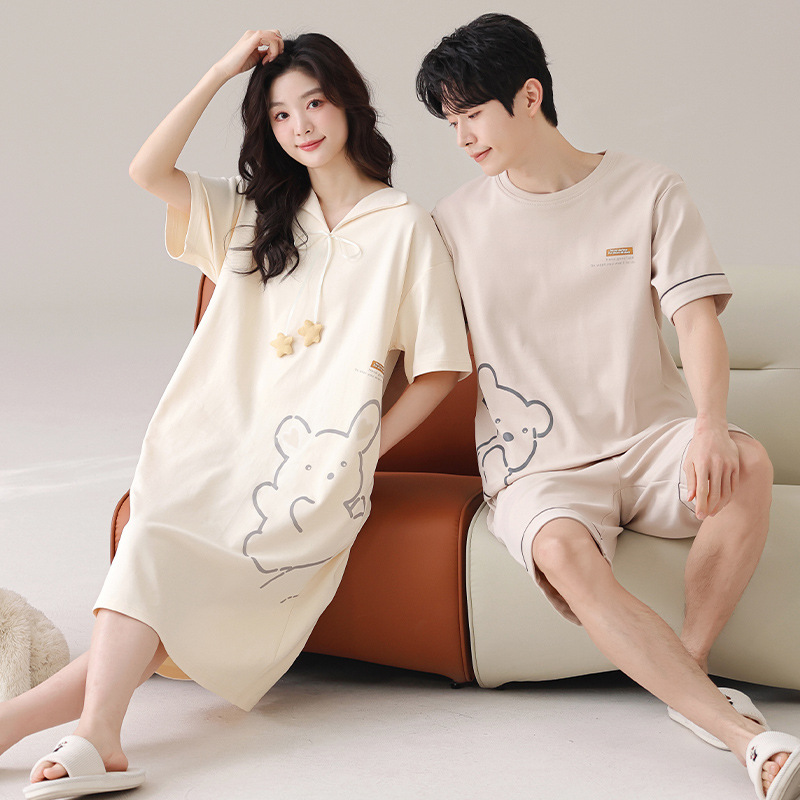 커플 잠옷 여름 순면 귀여운 한국 스타일 여성 반팔 브이넥 잠옷 남성 캐주얼 웨어러블 홈웨어 세트스토어 가기