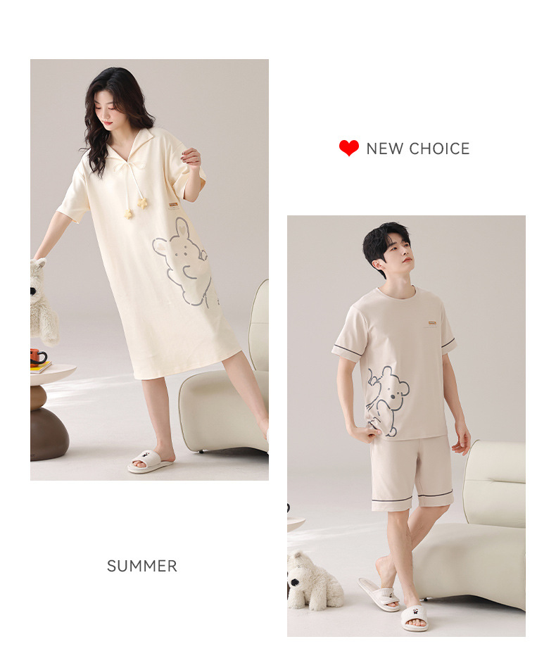 커플 잠옷 여름 순면 귀여운 한국 스타일 여성 반팔 브이넥 잠옷 남성 캐주얼 웨어러블 홈웨어 세트