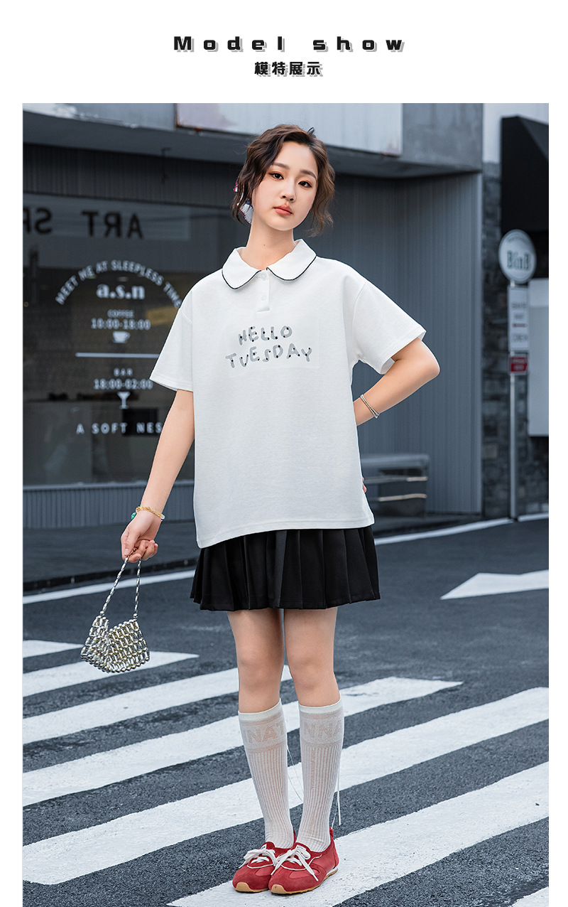 여자 반팔 티셔츠 2025 새로운 큰 어린이 여름 폴로 셔츠 캐주얼 탑 고등학교 중학생 짧은 여름 옷스토어 가기