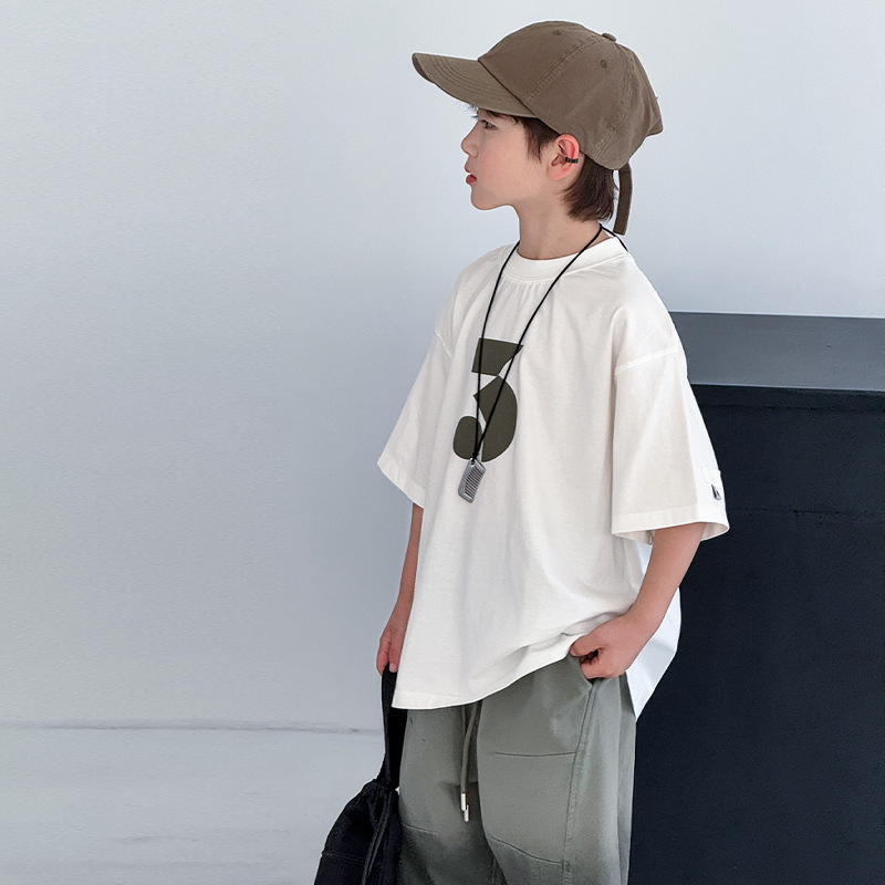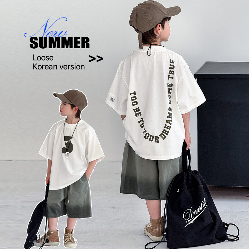 남학생 세트 여름 반소매 티셔츠 2025 새 어린이 반소매 여름 얇은 소년의 여름 탑 루즈 T