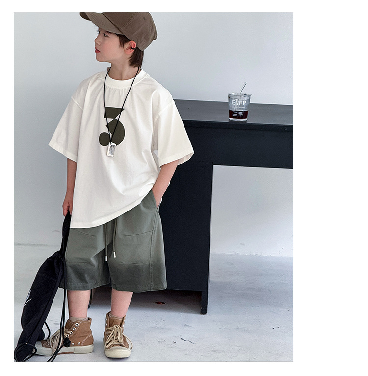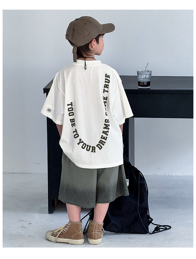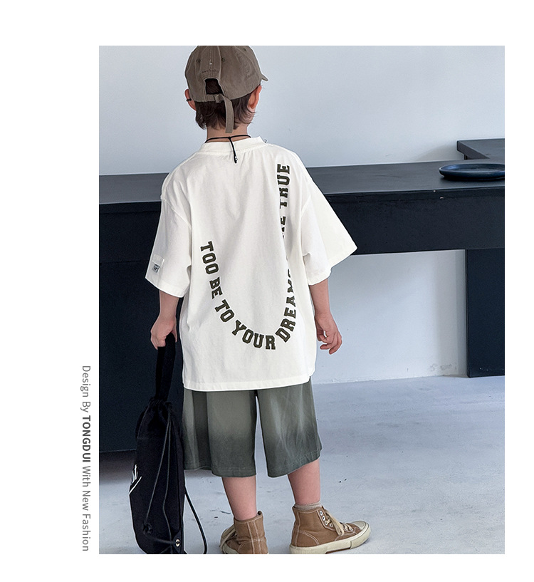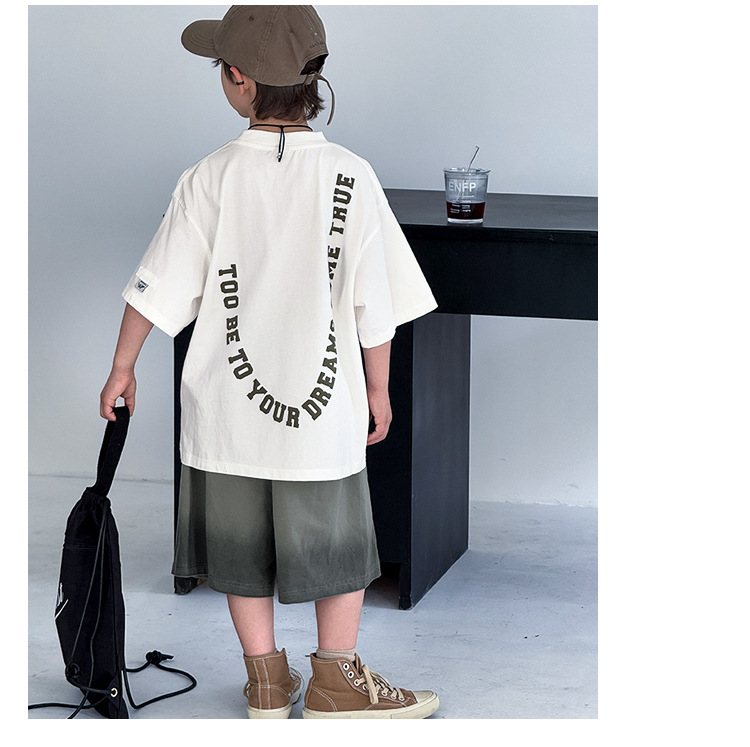 남학생 세트 여름 반소매 티셔츠 2025 새 어린이 반소매 여름 얇은 소년의 여름 탑 루즈 T스토어 가기