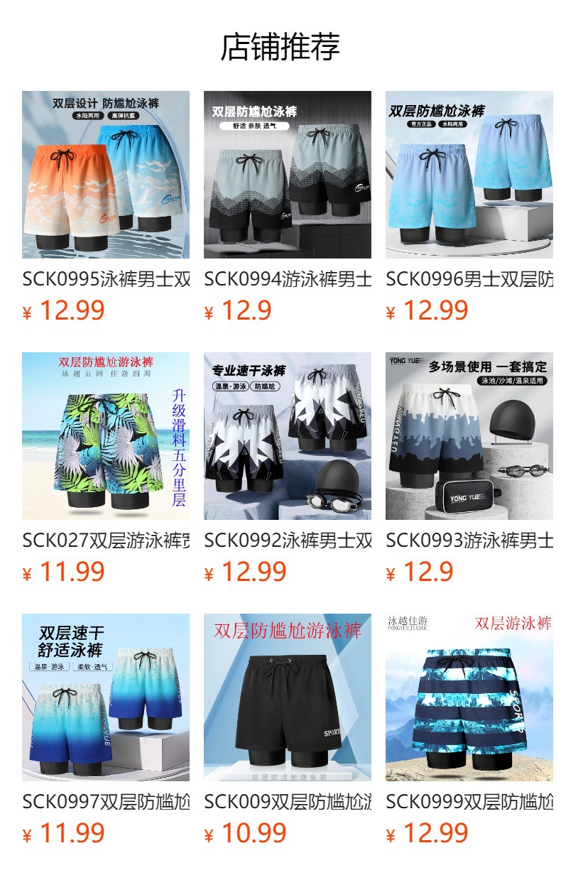 SCK0992 더블 레이어 안티-어색 2025 새로운 느슨한 대형 속건성 수영복 남성용 해변 온천 수영복스토어 가기