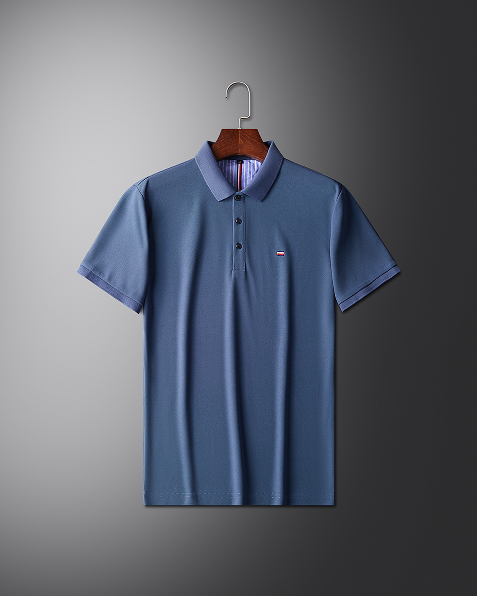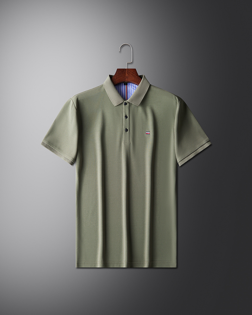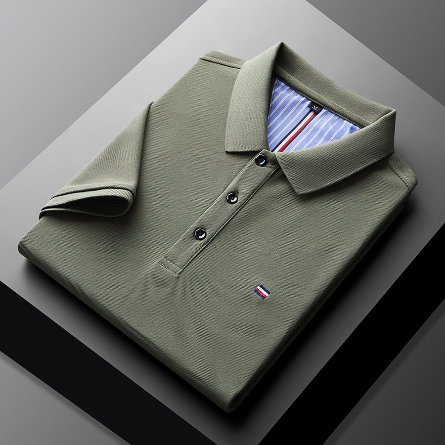 크로스보더 남성용 반팔 티셔츠 여름 고품질 라펠 헤비 캐주얼 자수 노다림 반팔 폴로 셔츠 탑스토어 가기