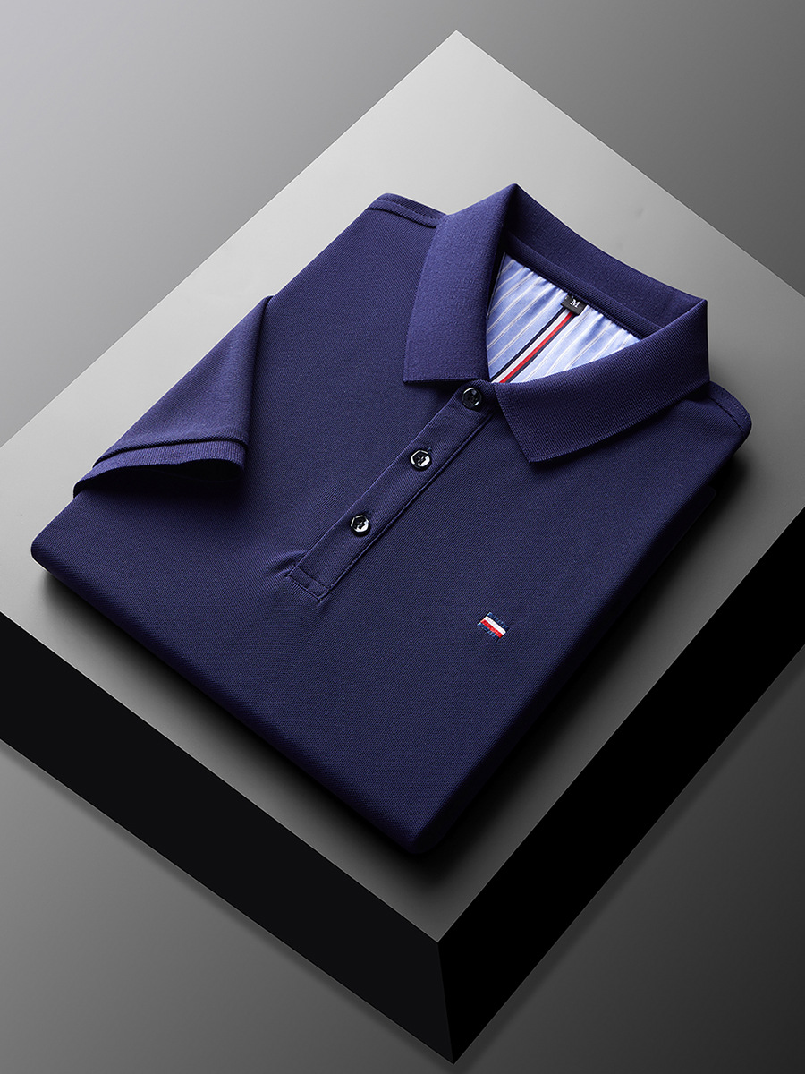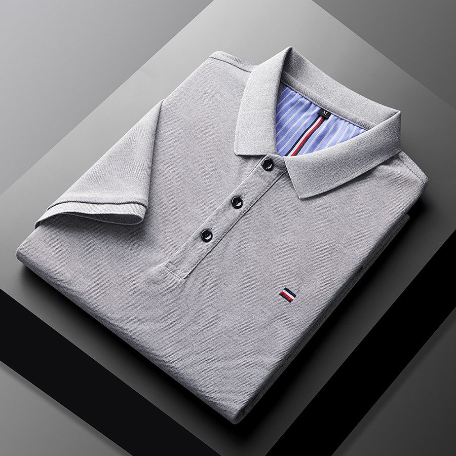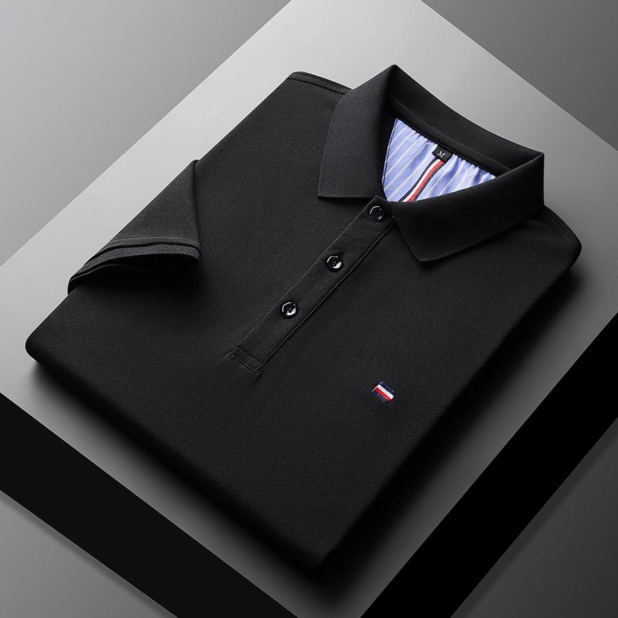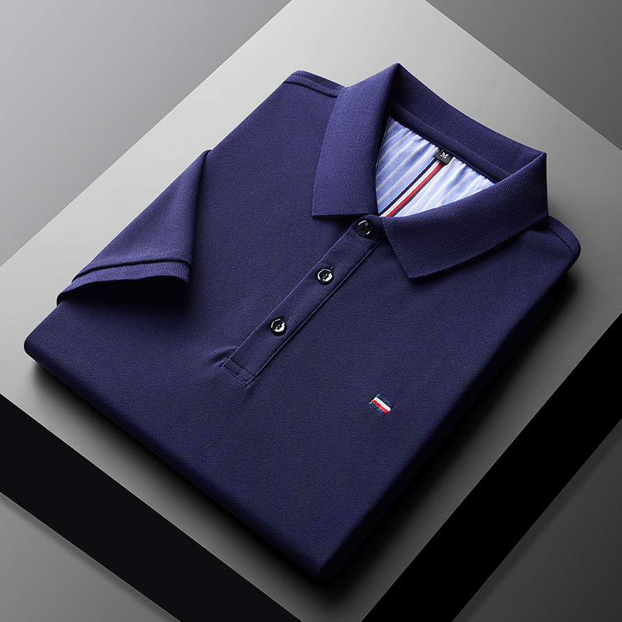 크로스보더 남성용 반팔 티셔츠 여름 고품질 라펠 헤비 캐주얼 자수 노다림 반팔 폴로 셔츠 탑
