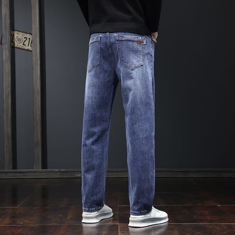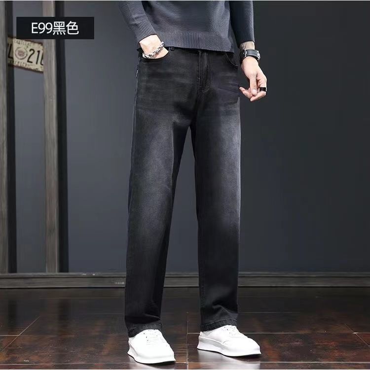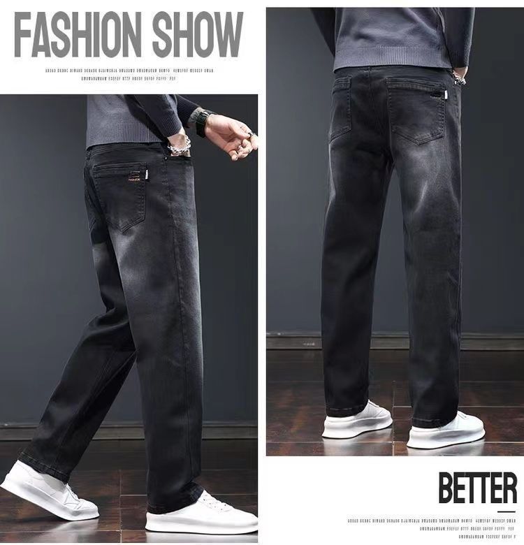 그룹 코튼 하이 스트리트 블랙 청바지 남성 2025 가을 여름 새로운 미국식 루즈 스트레이트 롱 팬츠 남성스토어 가기
