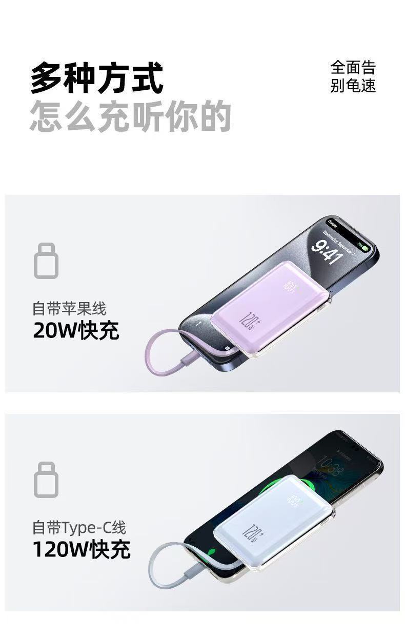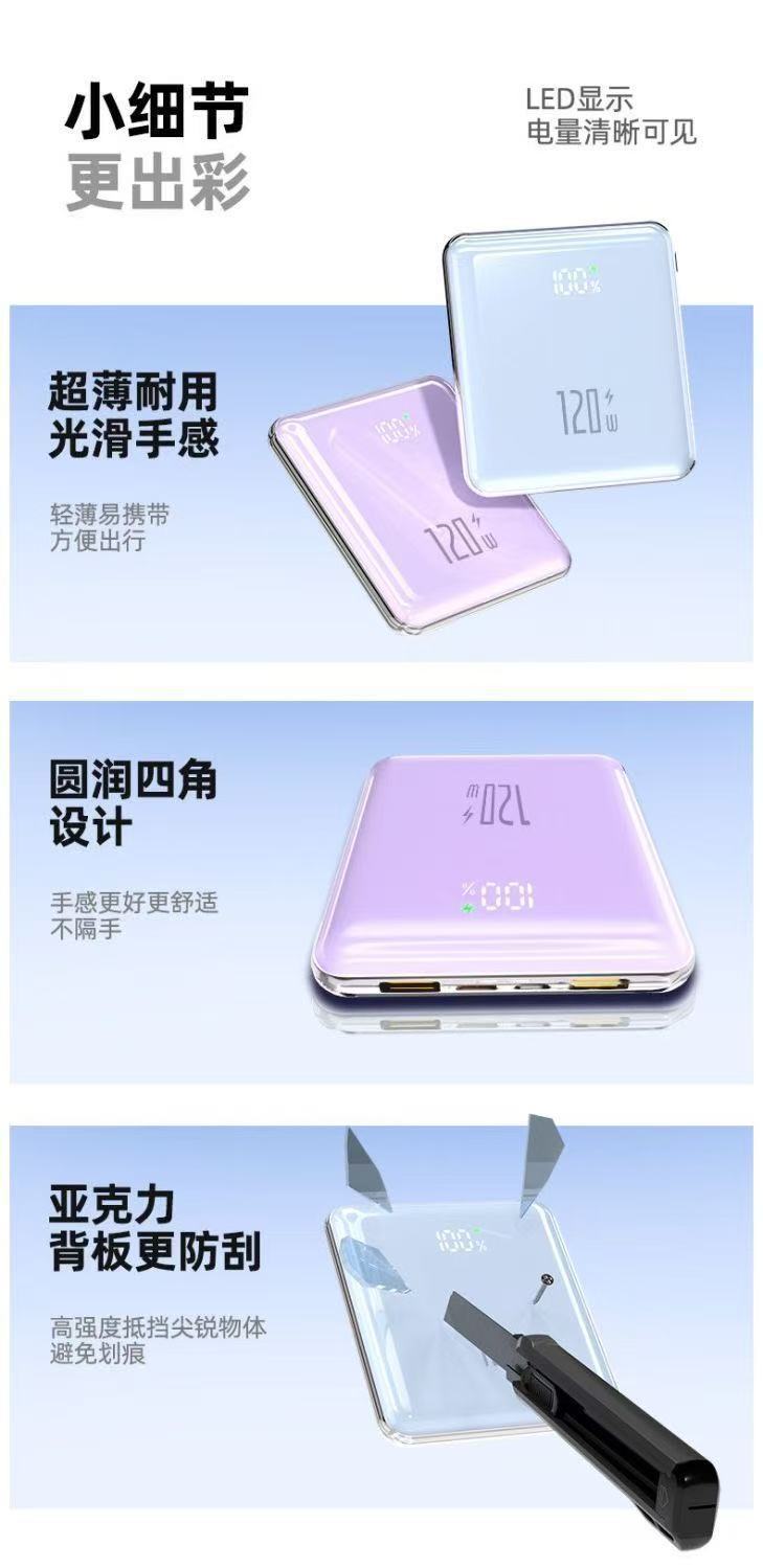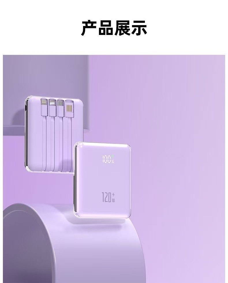 120W 등급 고속 충전 20000mAh에는 4선 대용량 휴대폰 범용 휴대성이 함께 제공됩니다.