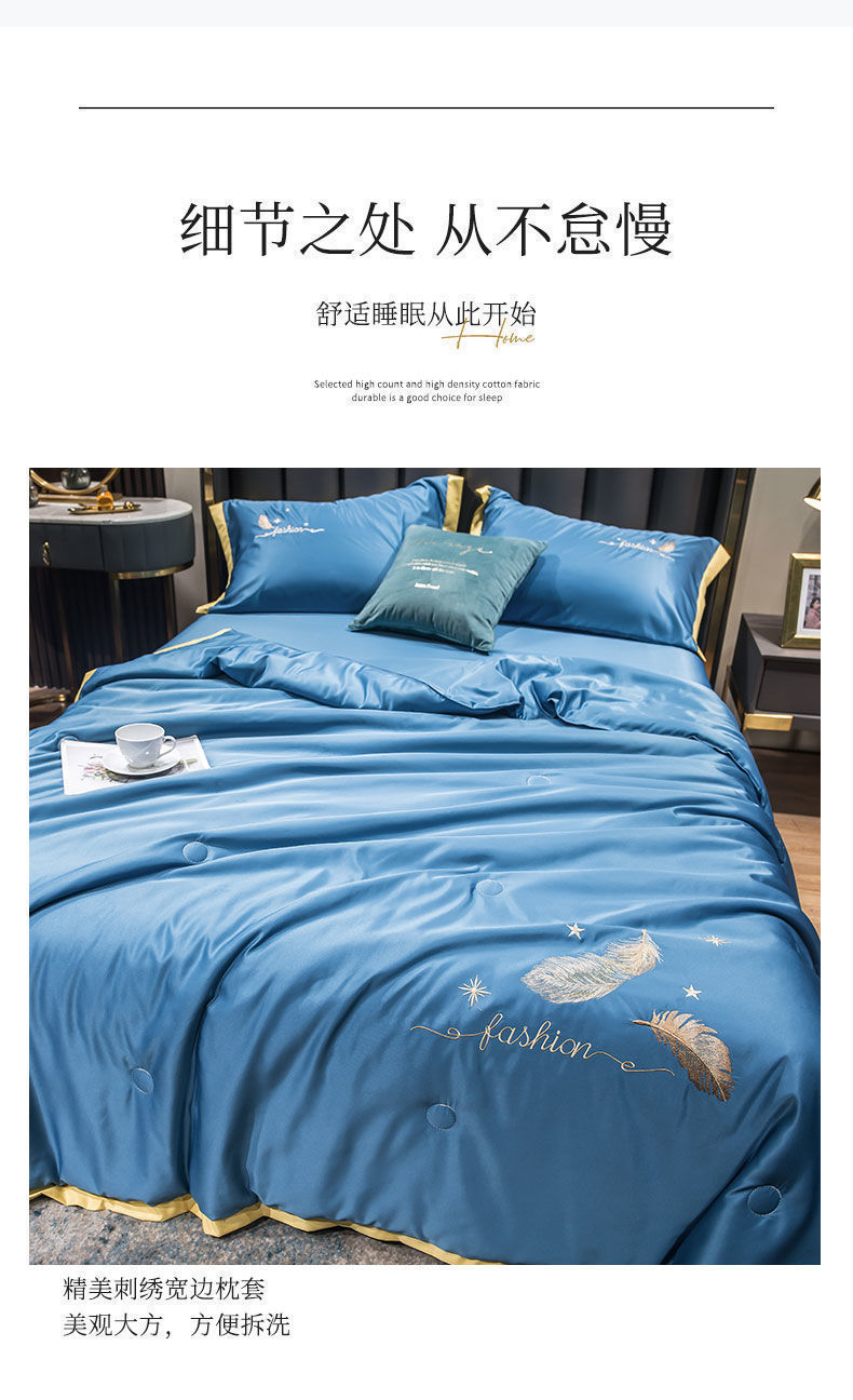 Nanjiren 아이스 실크 에어컨 퀼트 여름 쿨 퀼트 4 피스 세트 텐셀 여름 퀼트 싱글 더블 여름 얇은 이불 봄과 가을 이불