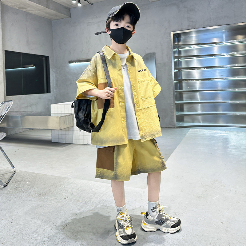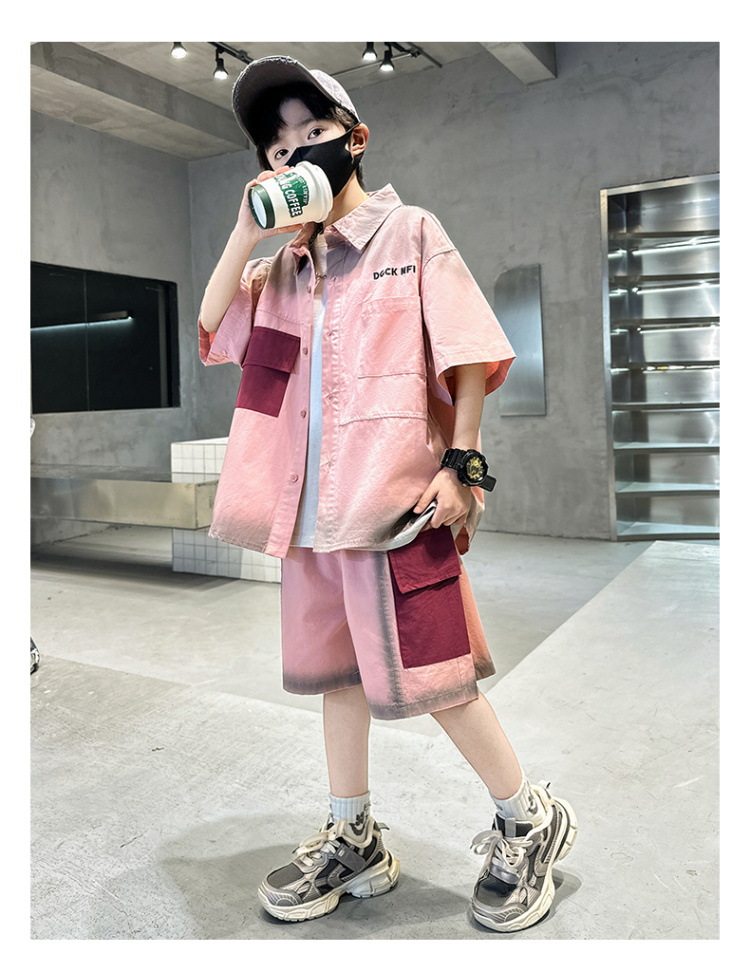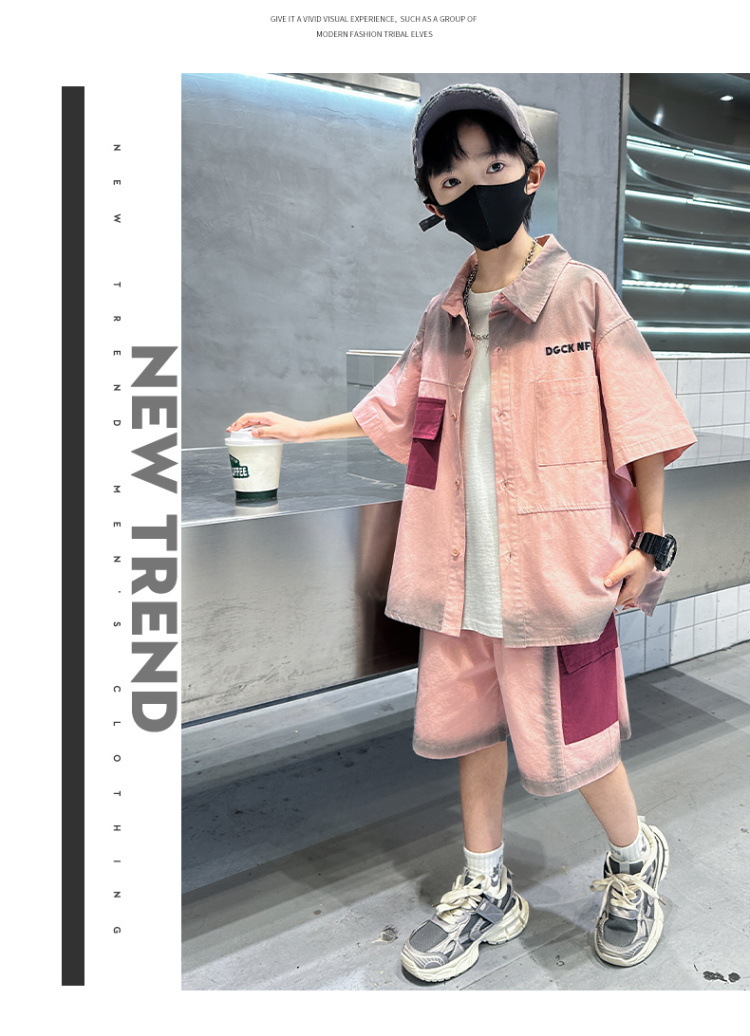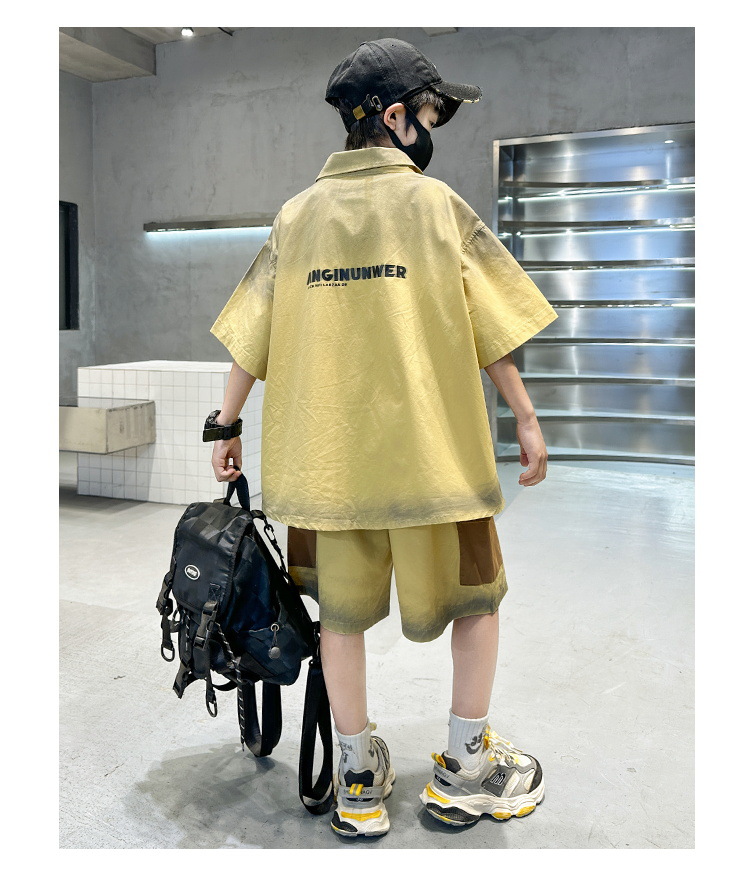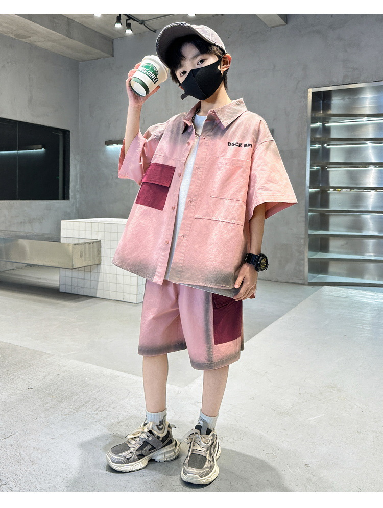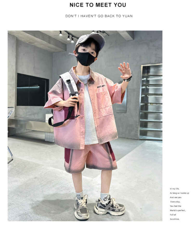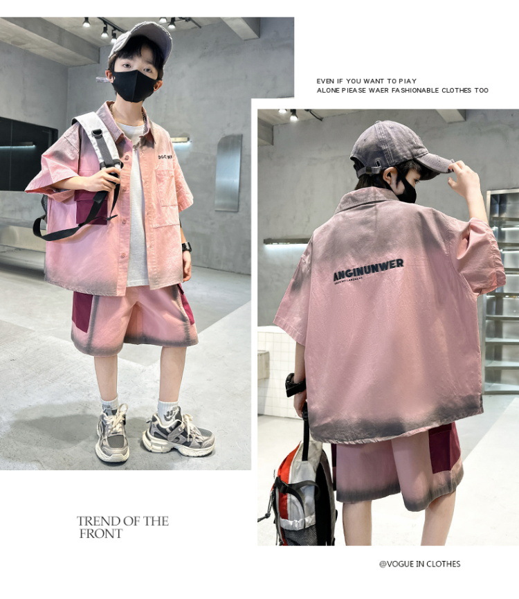 남자들의 여름 반팔 넥타이 염색 셔츠 세트 잘 생긴 유행 2025 새로운 어린이 여름 원피스 큰 아이들의 여름 유행