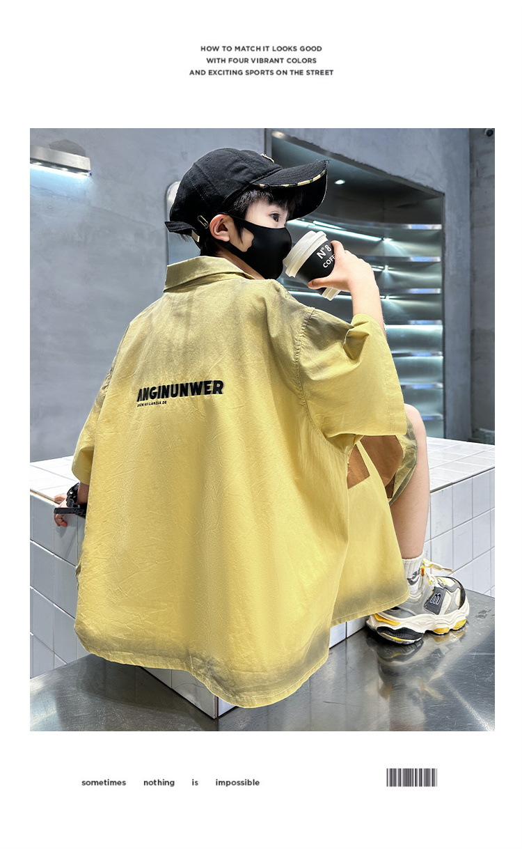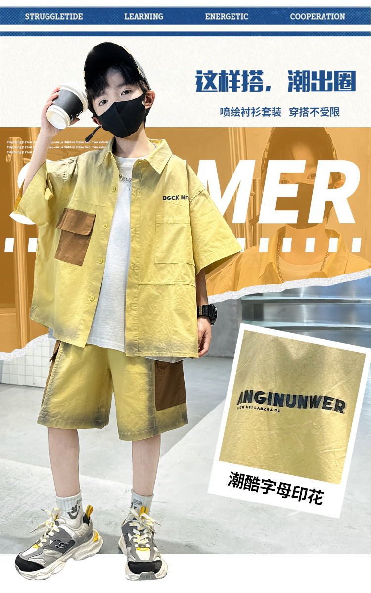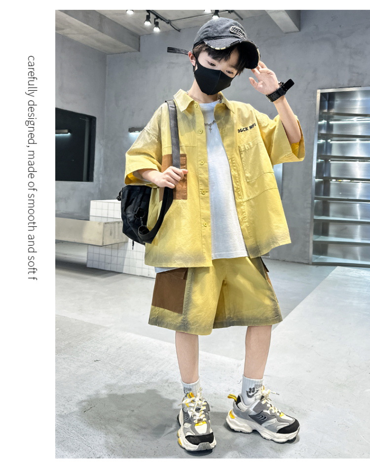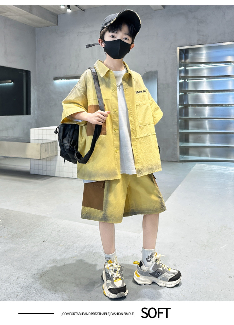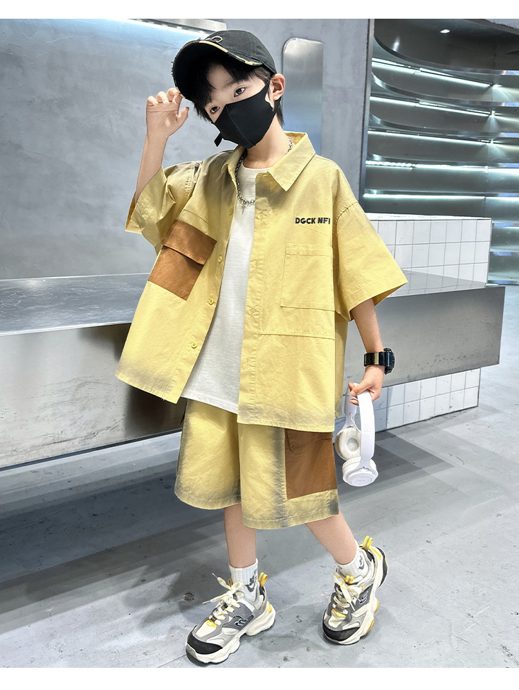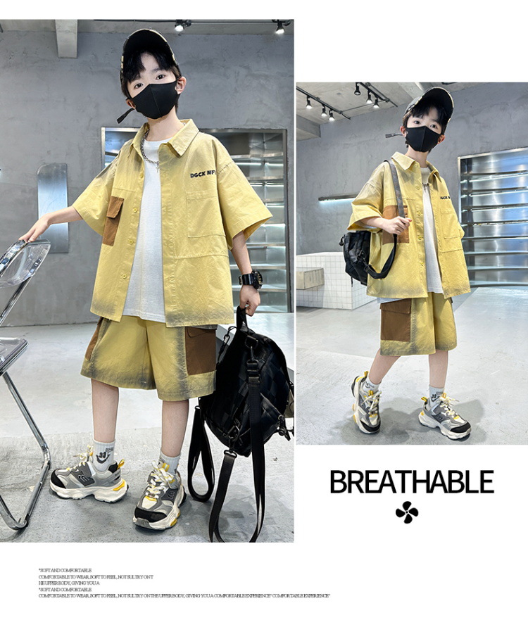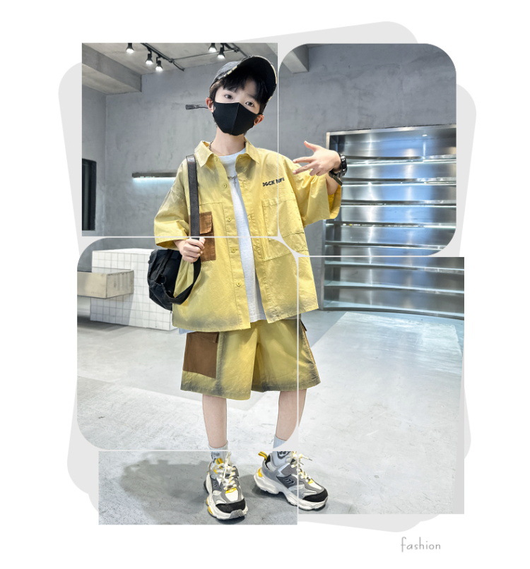 남자들의 여름 반팔 넥타이 염색 셔츠 세트 잘 생긴 유행 2025 새로운 어린이 여름 원피스 큰 아이들의 여름 유행