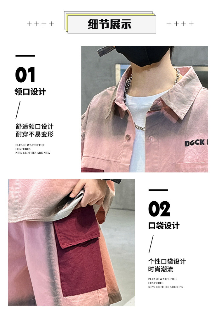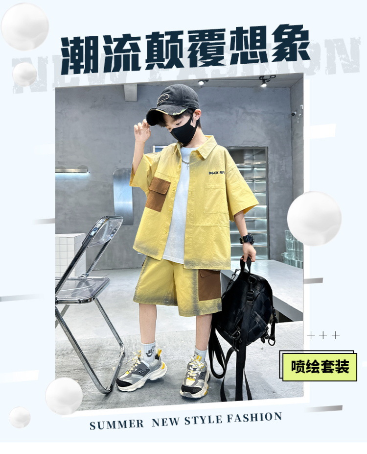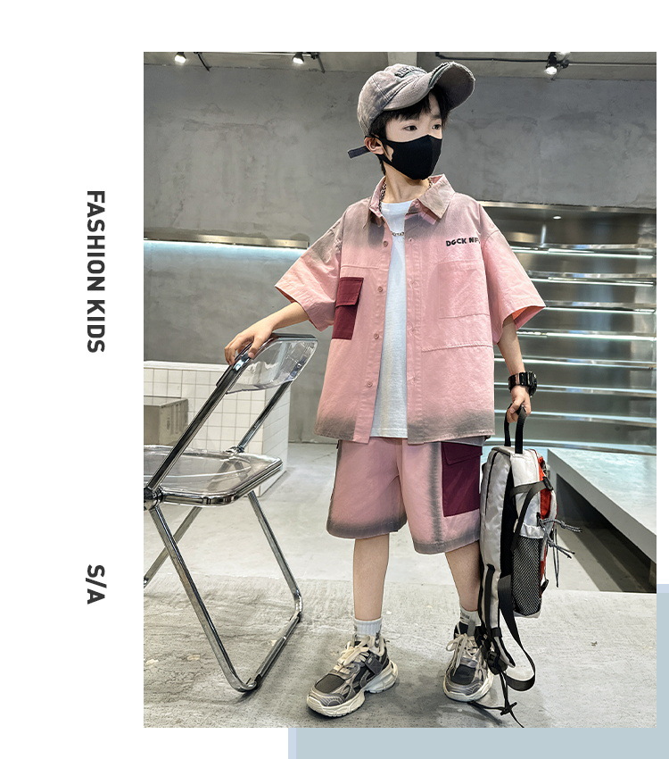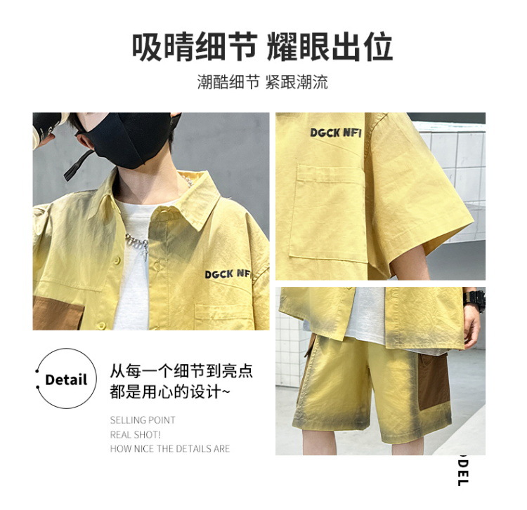 남자들의 여름 반팔 넥타이 염색 셔츠 세트 잘 생긴 유행 2025 새로운 어린이 여름 원피스 큰 아이들의 여름 유행스토어 가기