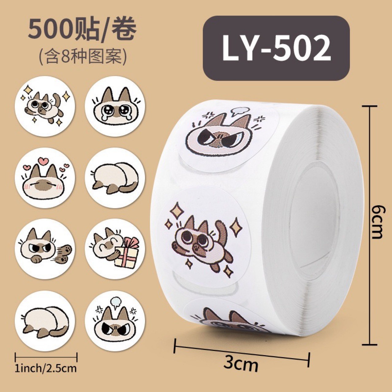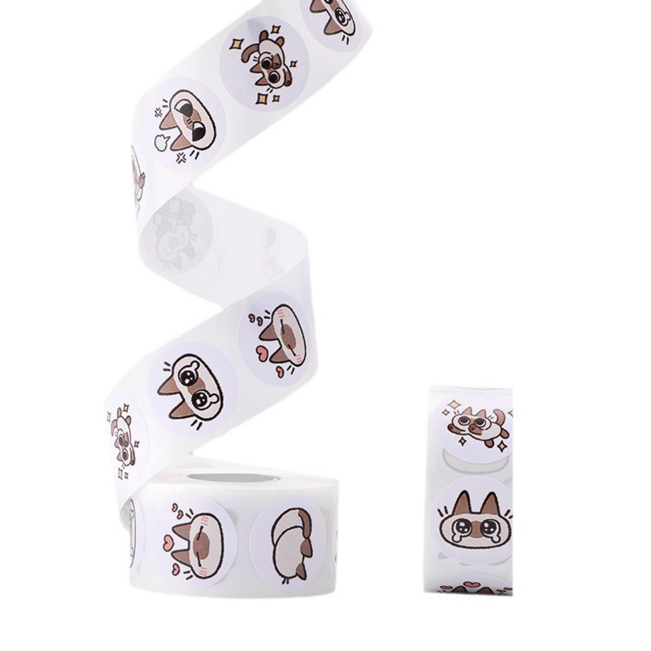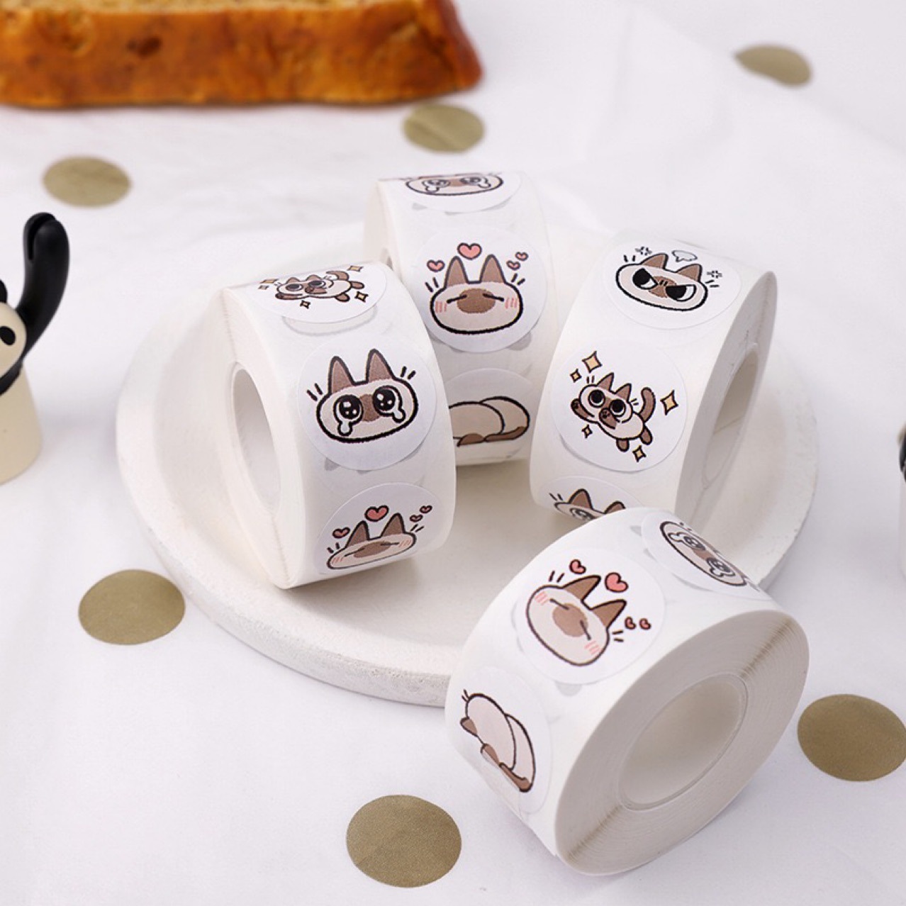 작은 콩 페이스트 시암 고양이 스티커 라운드 씰링 스티커 자체 접착 라벨 어린이 만화 롤 스티커 도매스토어 가기