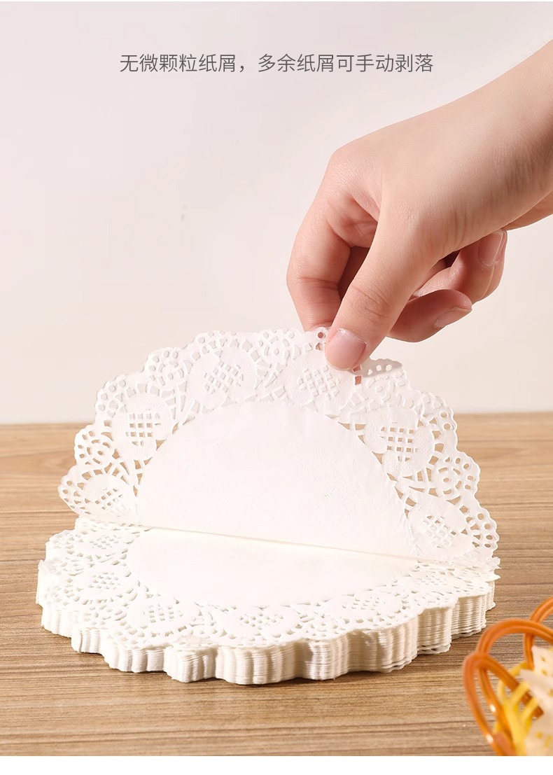 레이스 오일 흡수 패드 종이 튀김 주방 라운드 베이킹 피자 케이크 스낵 식품 꽃 바닥 패드 종이 식품 등급