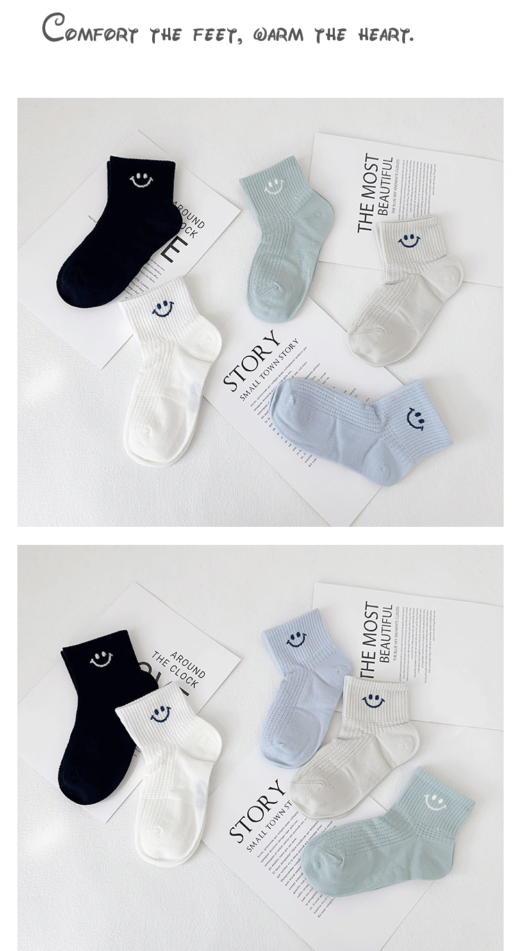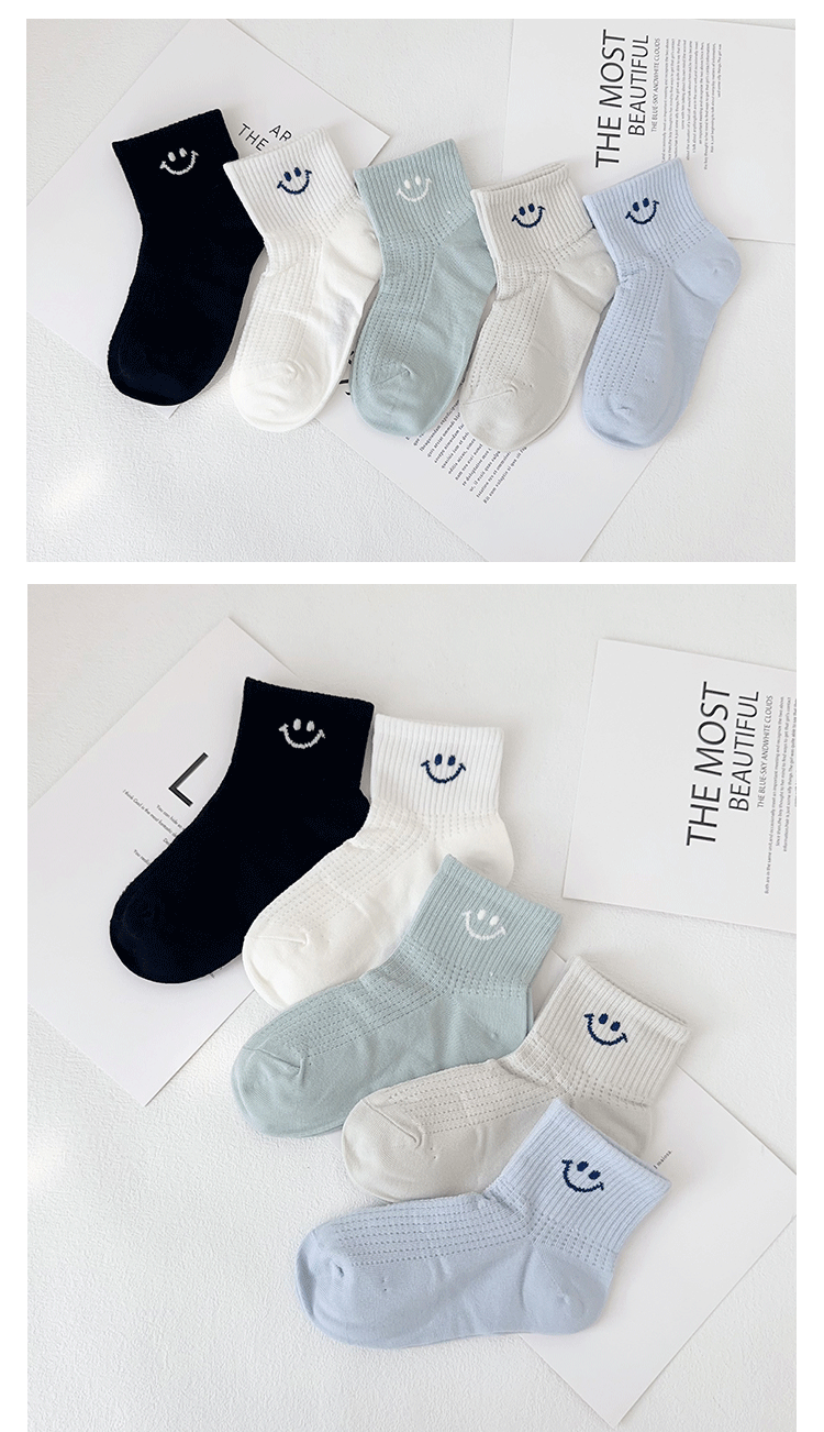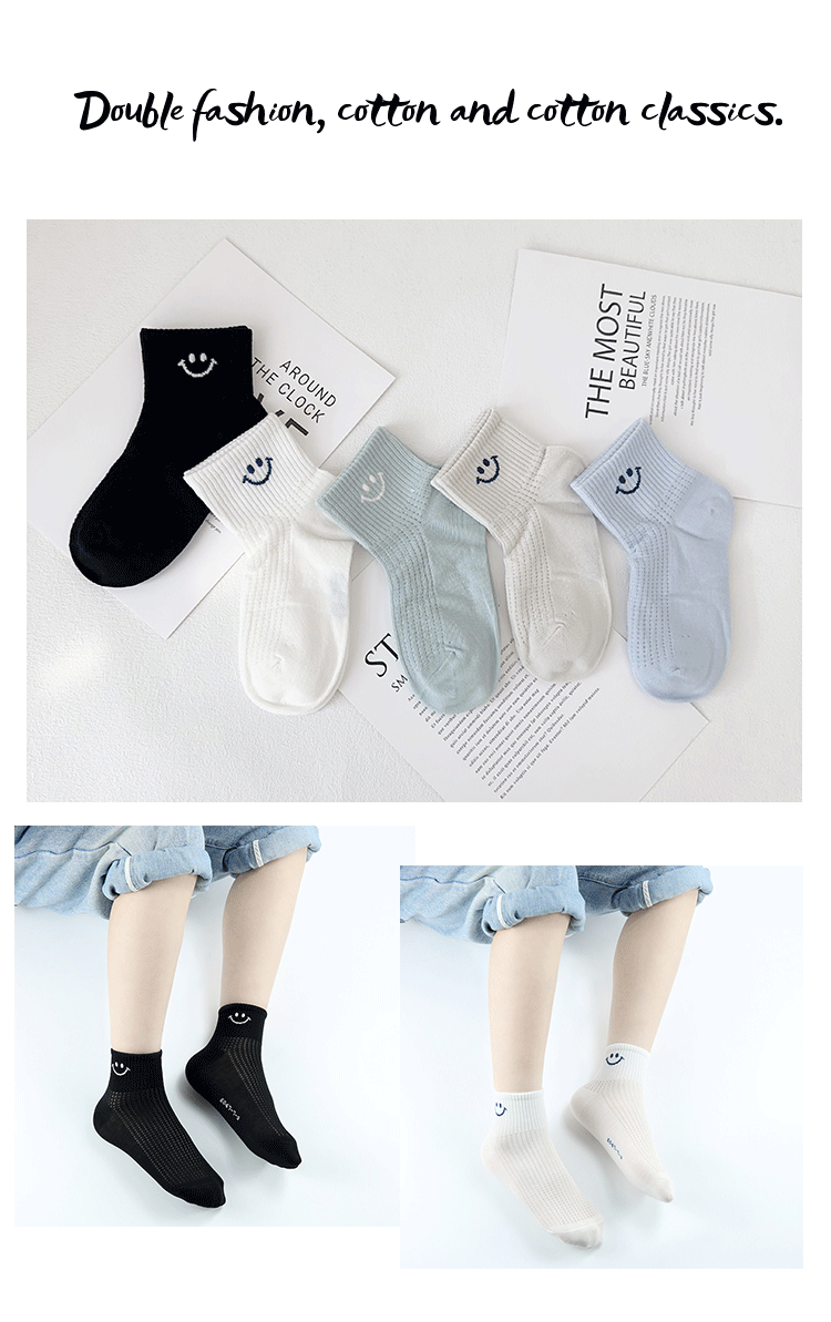 이순신 한 쌍의 어린이 양말 여름 큰 그물 초박형 만화 웃는 짧은 양말 빗질 면화 소년 스포츠 양말 뼈없는 양말