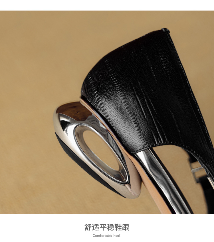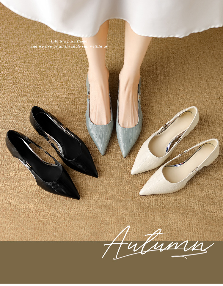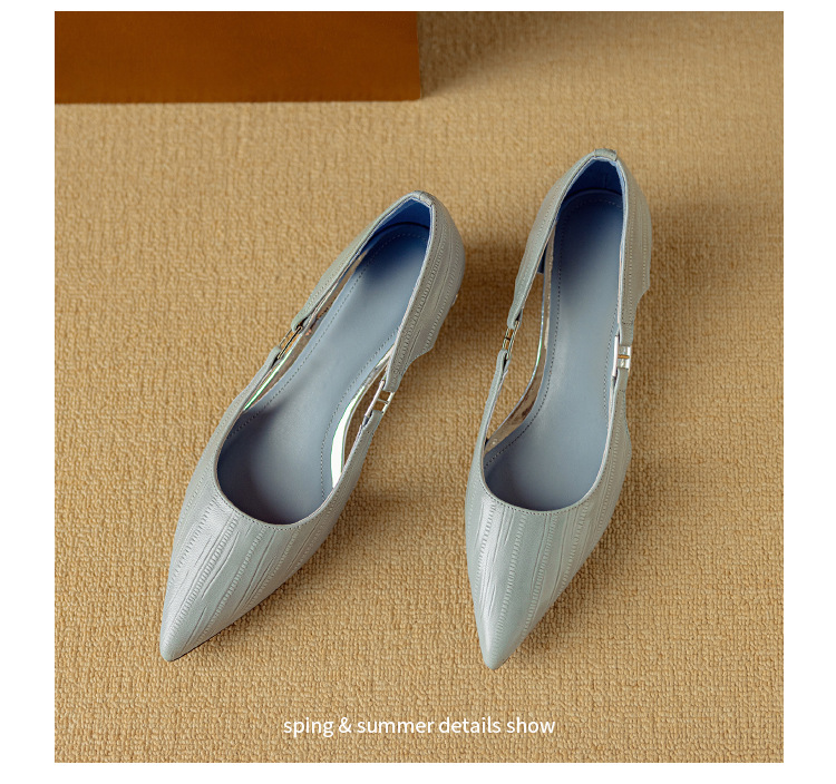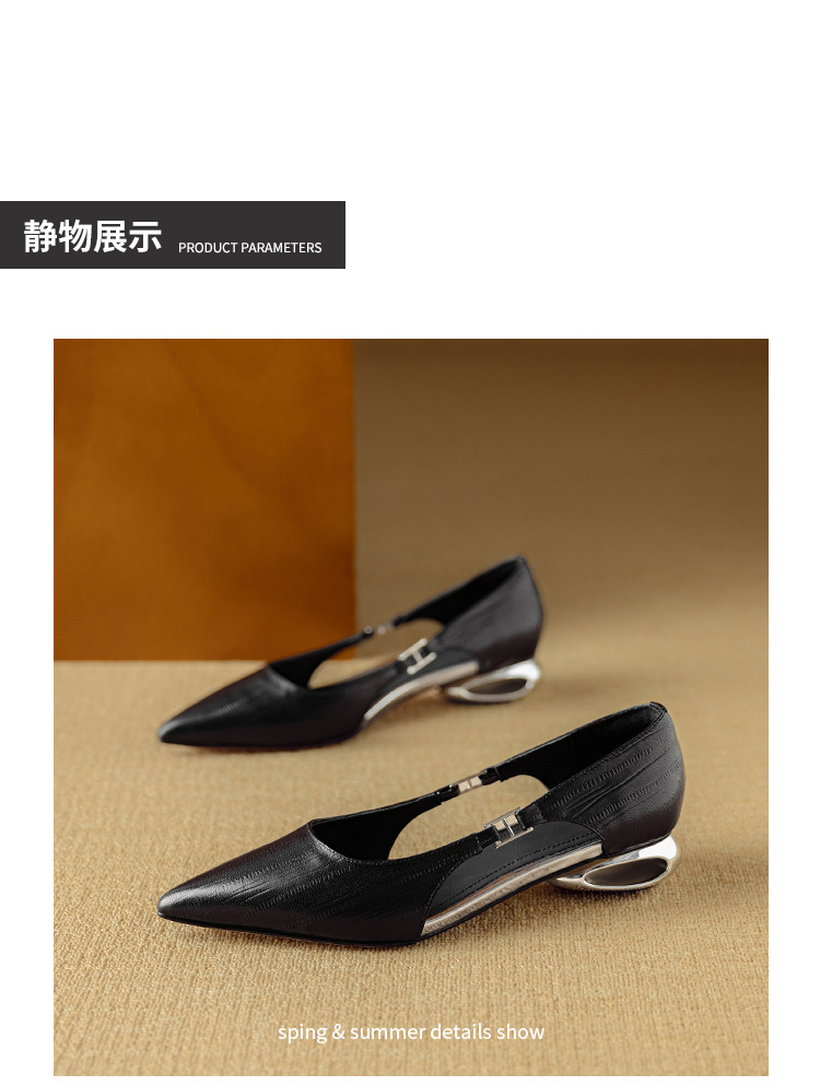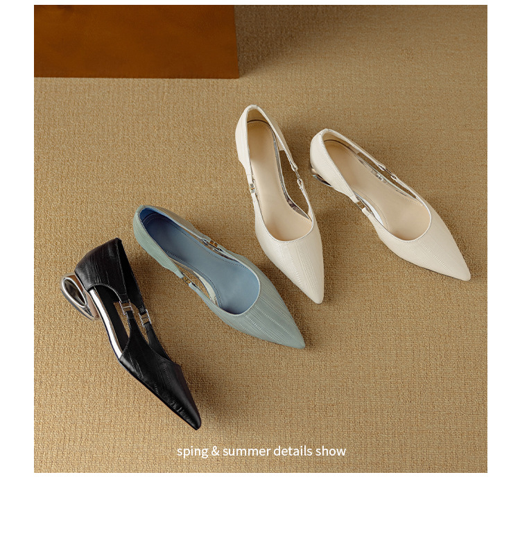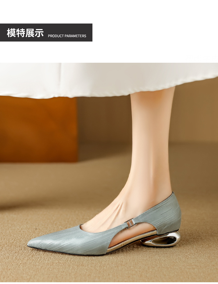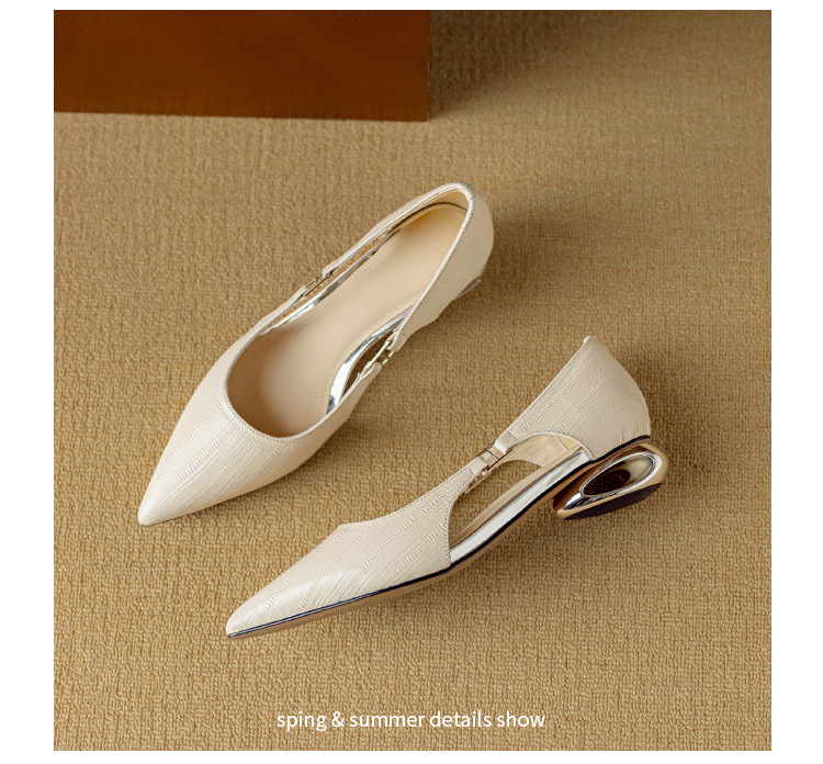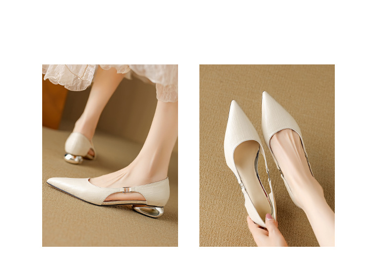 2025 새로운 양가죽 중공 아이보리 뾰족한 봄 작은 신발 여성용 얕은 입 미들 두꺼운 뒤꿈치 아름다운 고급 감각