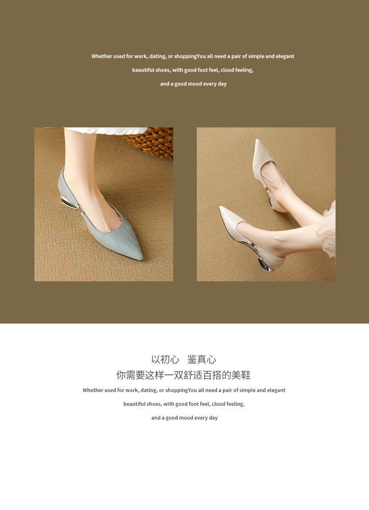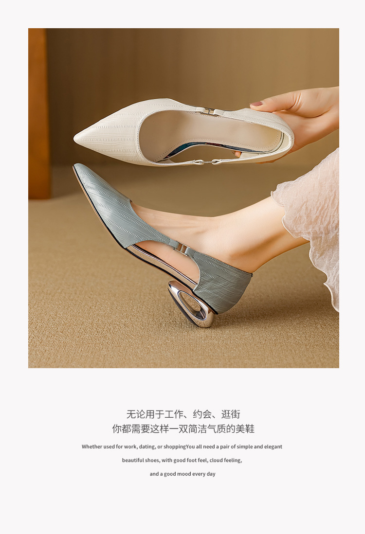 2025 새로운 양가죽 중공 아이보리 뾰족한 봄 작은 신발 여성용 얕은 입 미들 두꺼운 뒤꿈치 아름다운 고급 감각스토어 가기