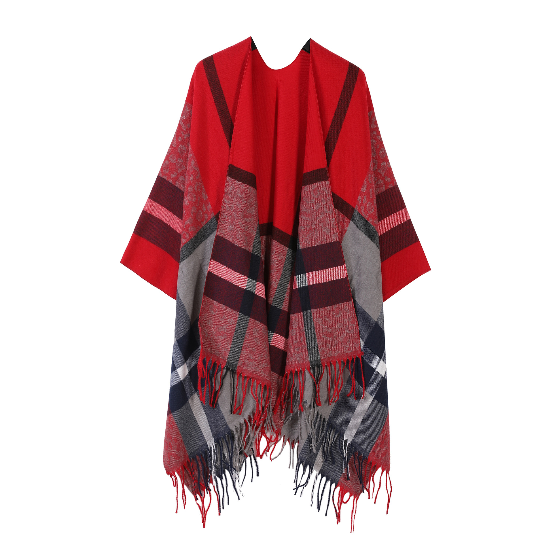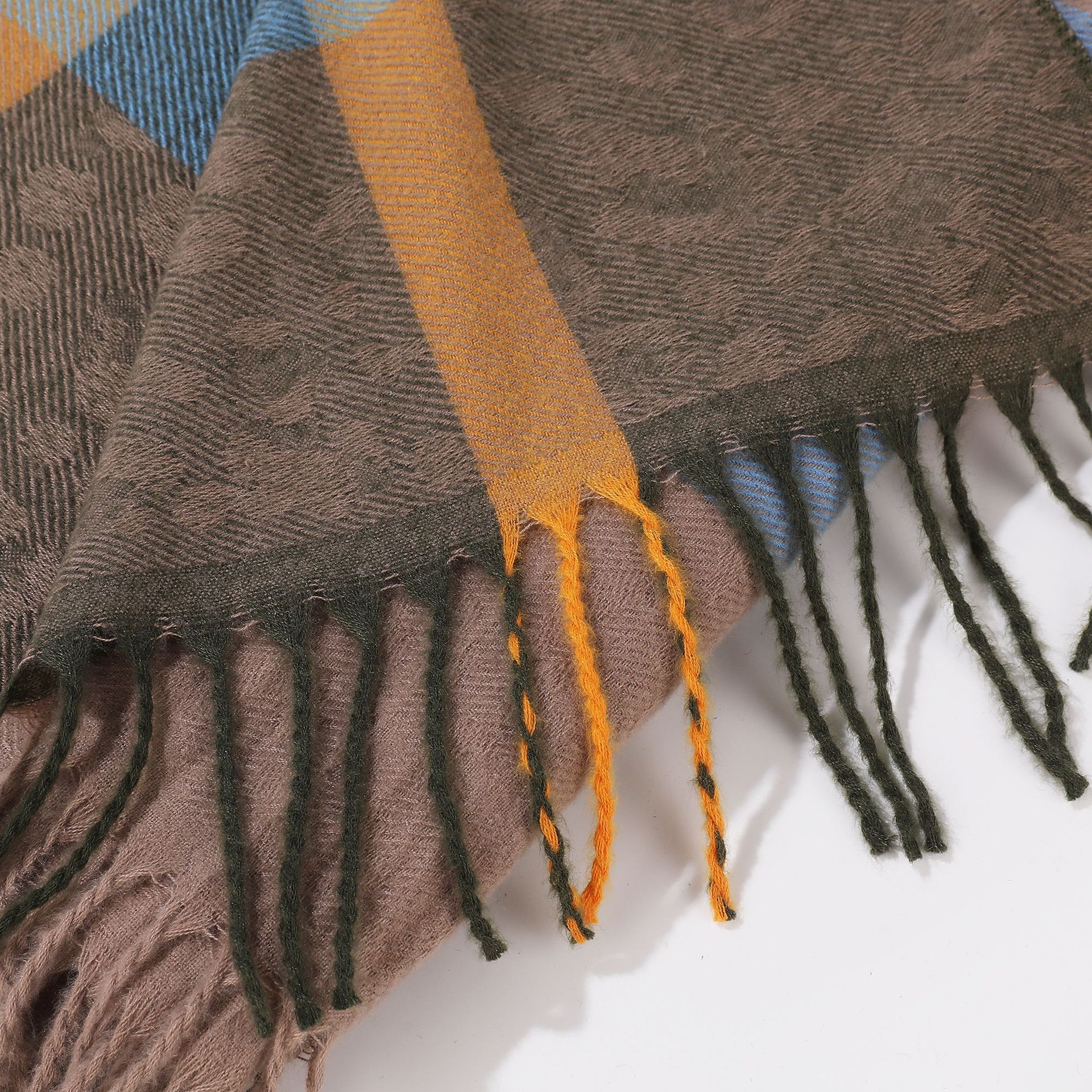 유럽과 미국의 국경 간 간단한 격자 무늬 스카프, 여성용 고급, 다재다능하고 패셔너블한 따뜻한 망토, 편안한 표범 무늬 술 숄스토어 가기