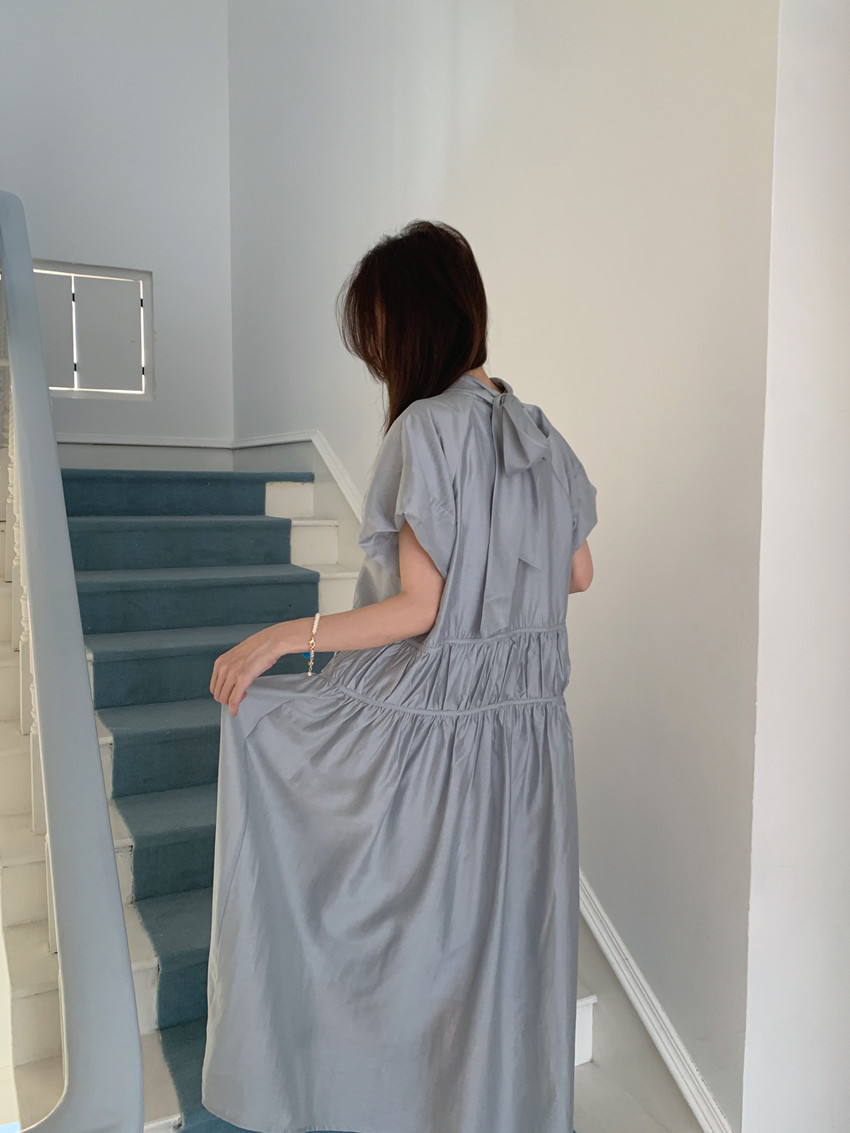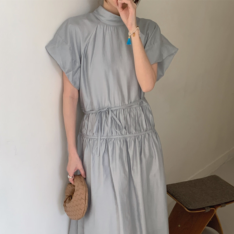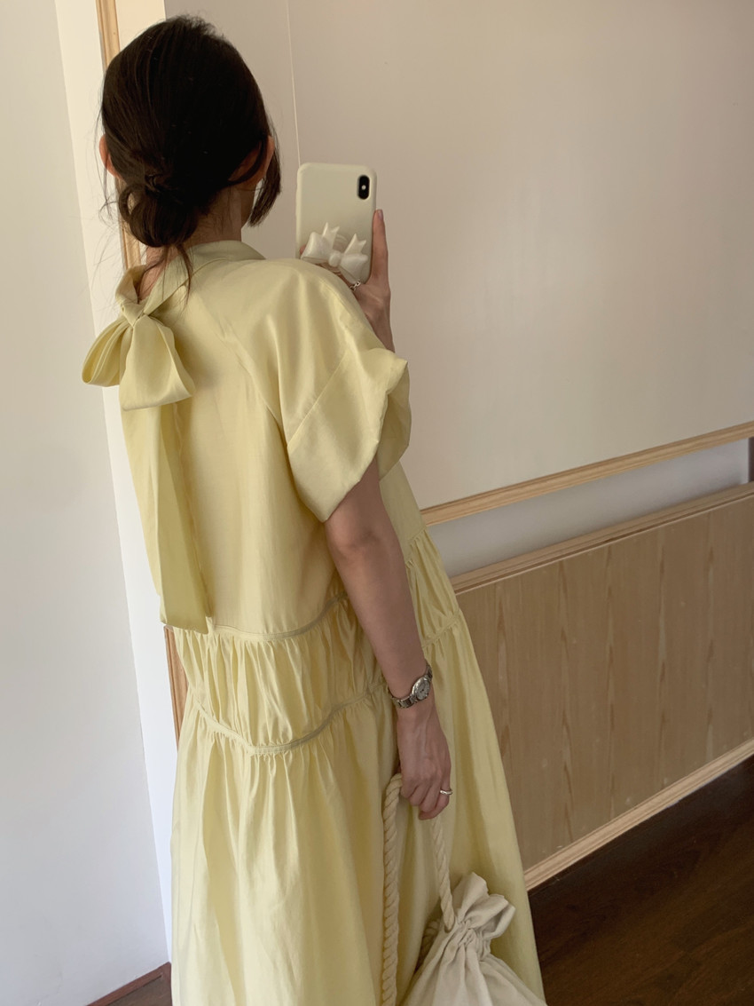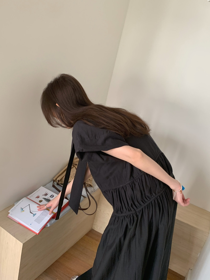 재고 리얼 샷 프랑스 복고풍 틈새 리본 디자인 느슨한 할인 허리 스트랩 긴 원피스 3 색스토어 가기