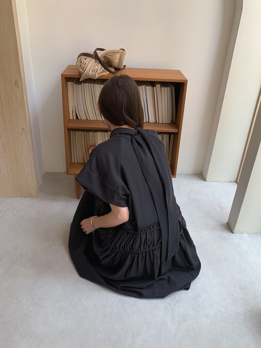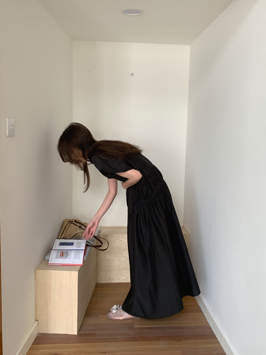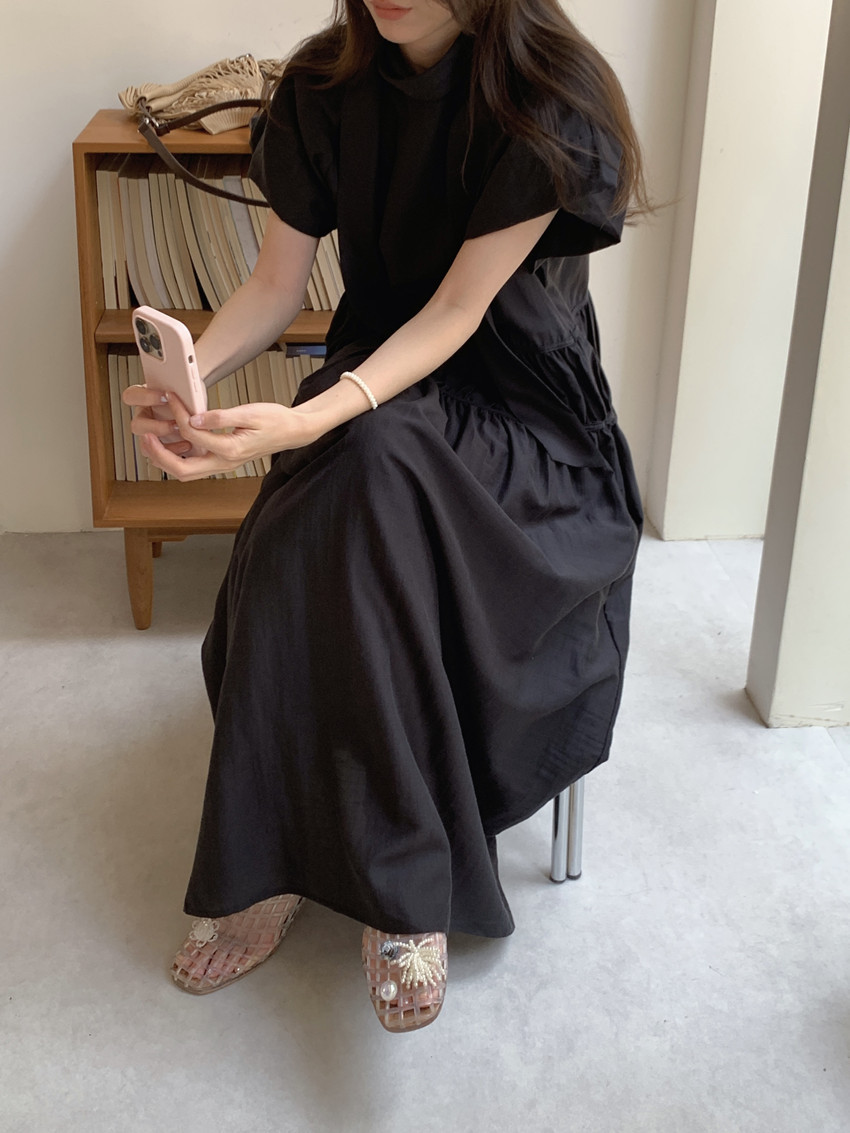 재고 리얼 샷 프랑스 복고풍 틈새 리본 디자인 느슨한 할인 허리 스트랩 긴 원피스 3 색스토어 가기