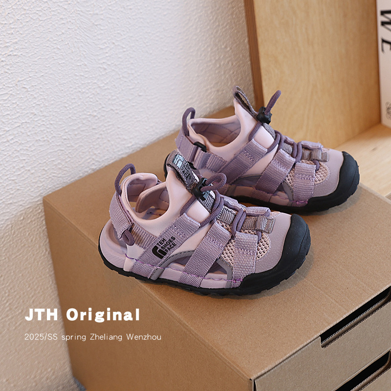 소년의 발가락으로 덮인 샌들 2025 여름 새로운 경량 어린이 스포츠 샌들 중형 및 대형 어린이 속이 빈 어린이 비치 슈즈스토어 가기