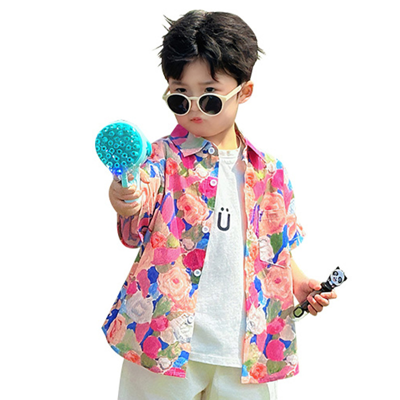 도파민 아동복 인터넷 연예인 부모-자식 자매 의류 소년 꽃무늬 셔츠 반팔 정장 소녀 드레스 유행