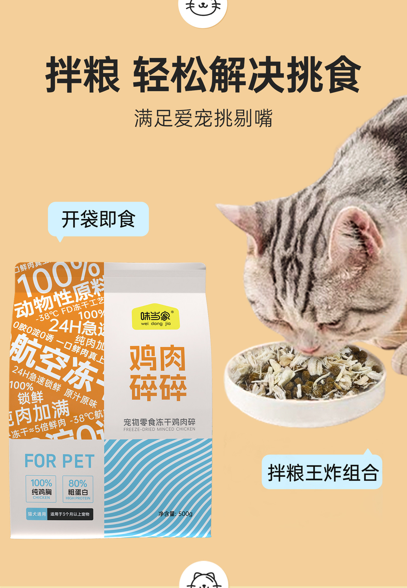 고양이와 개를 위한 보편적인 간식 순수 닭 가슴살 고양이 간식 고양이 사료 동반자스토어 가기