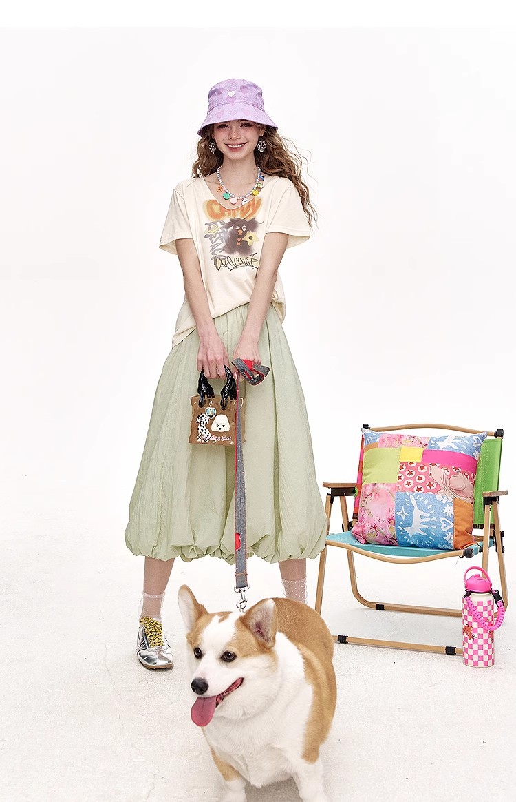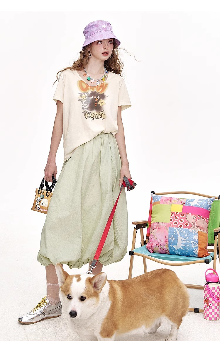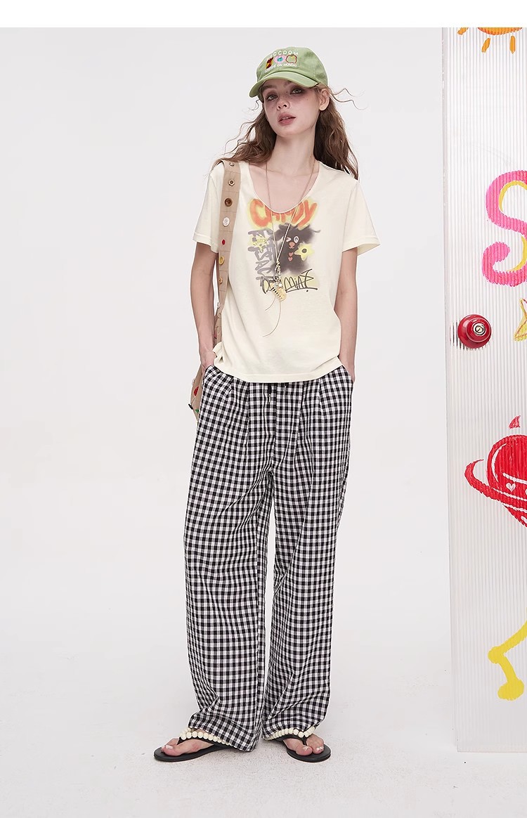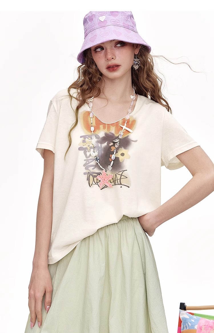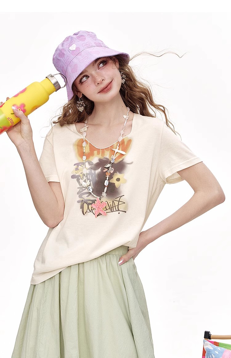 고블린 포켓 V 넥 프린트 반팔 티셔츠 여성용 2025 년 여름 새로운 느슨한 슬리밍 캐주얼 니쉬 탑스토어 가기