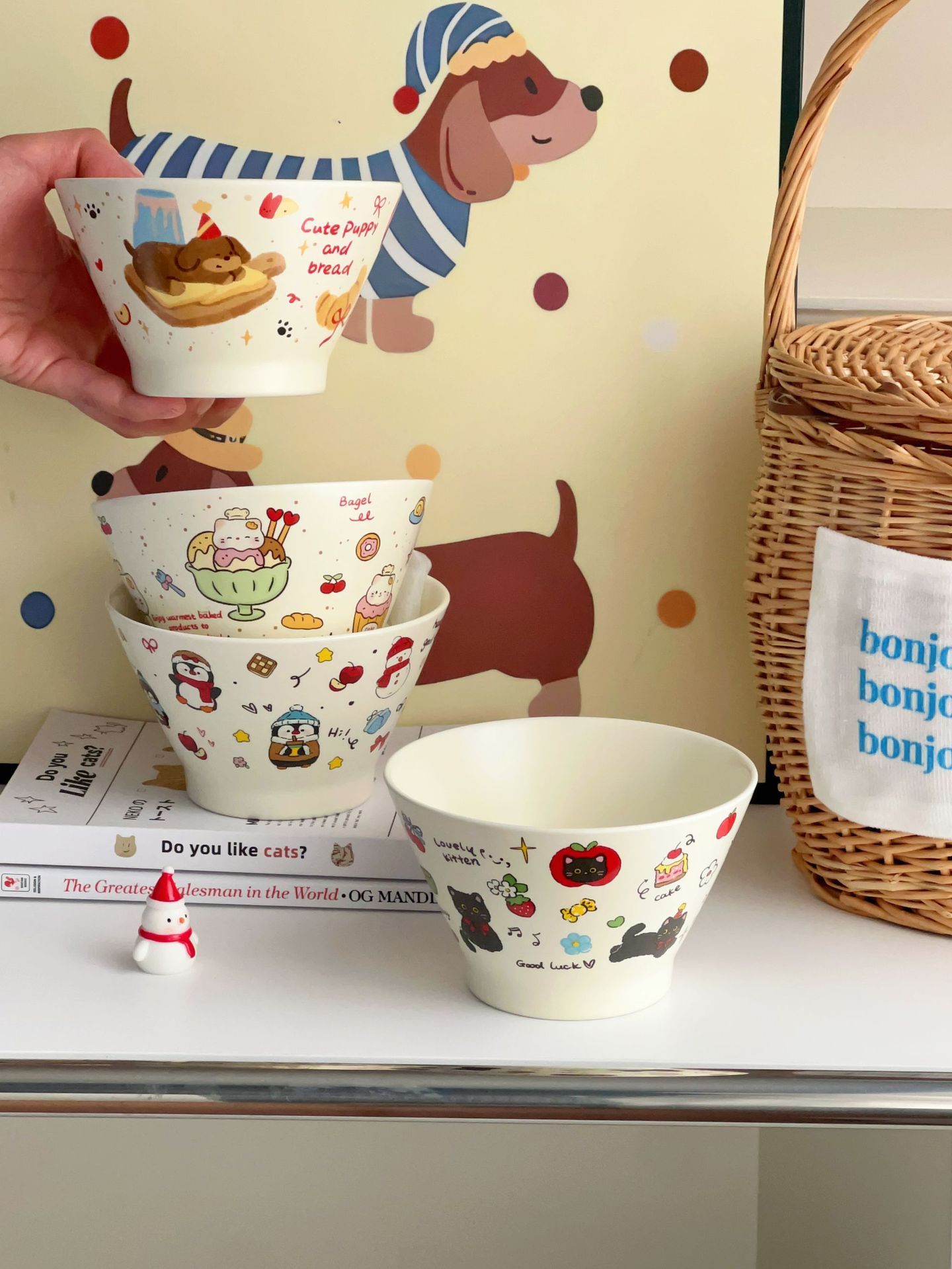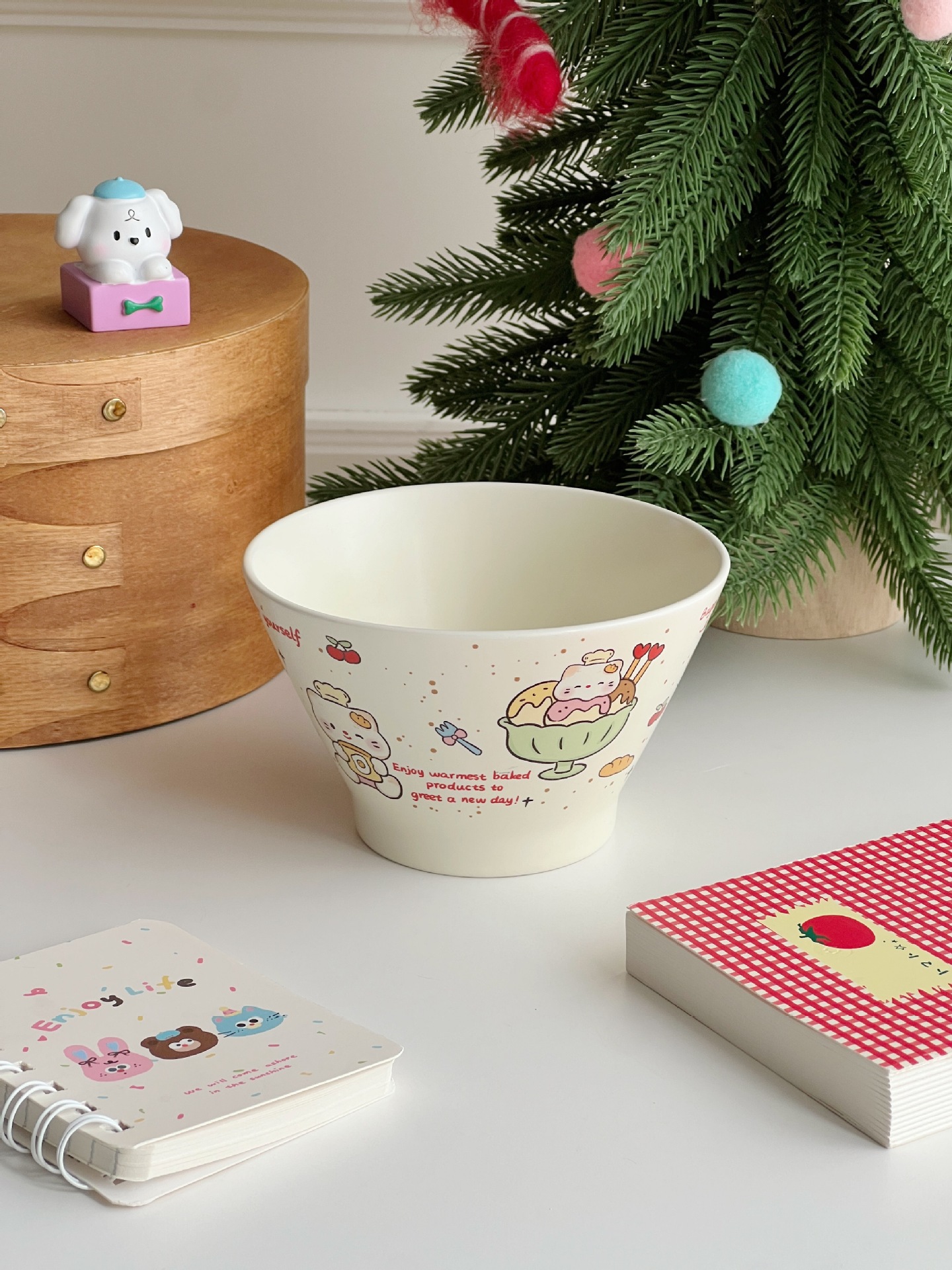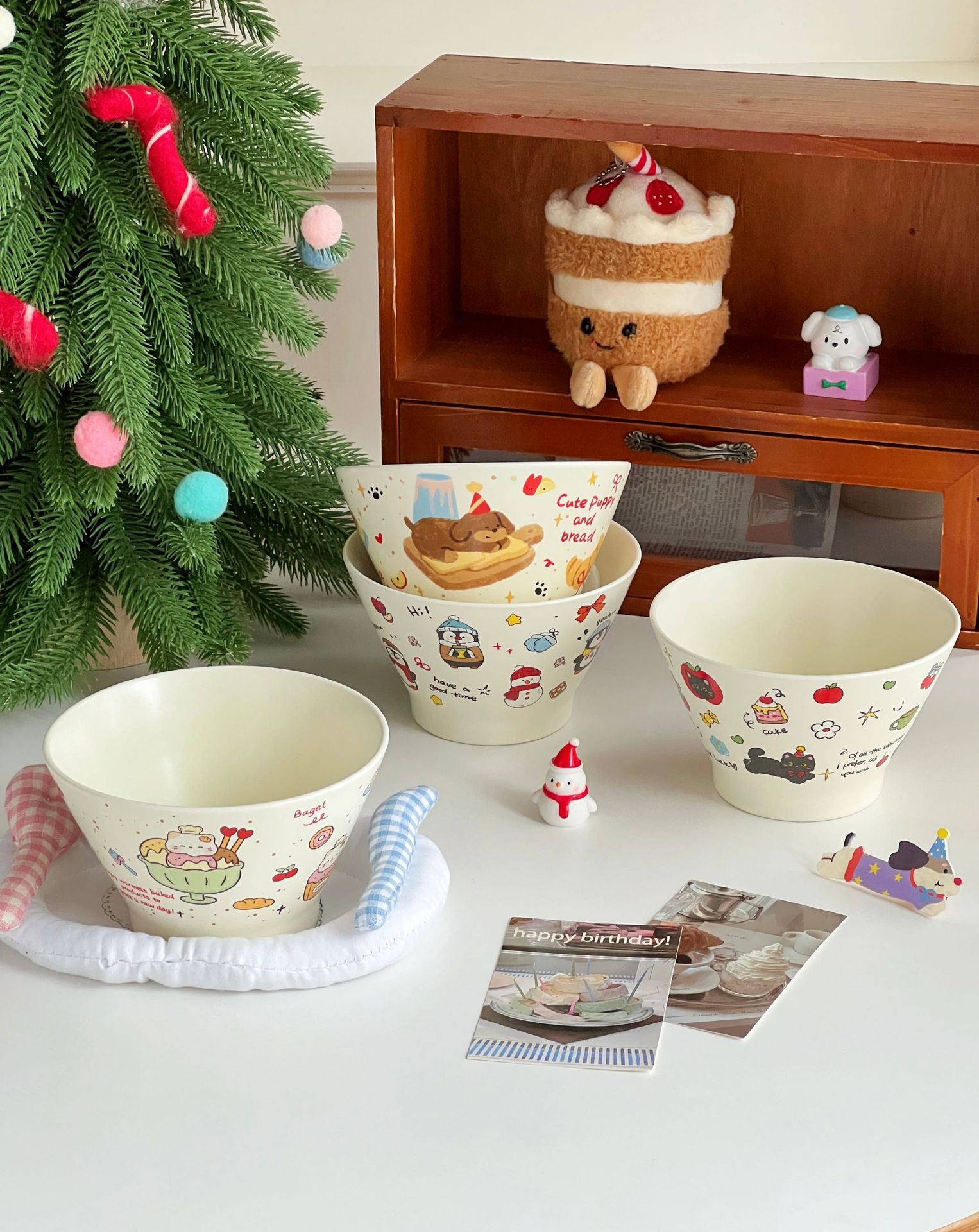 높은 가치의 디저트 그릇 크림 스타일 세라믹 버킷 그릇 귀여운 만화 어린이 밥 그릇 홈 아침 식사 오트밀 요거트