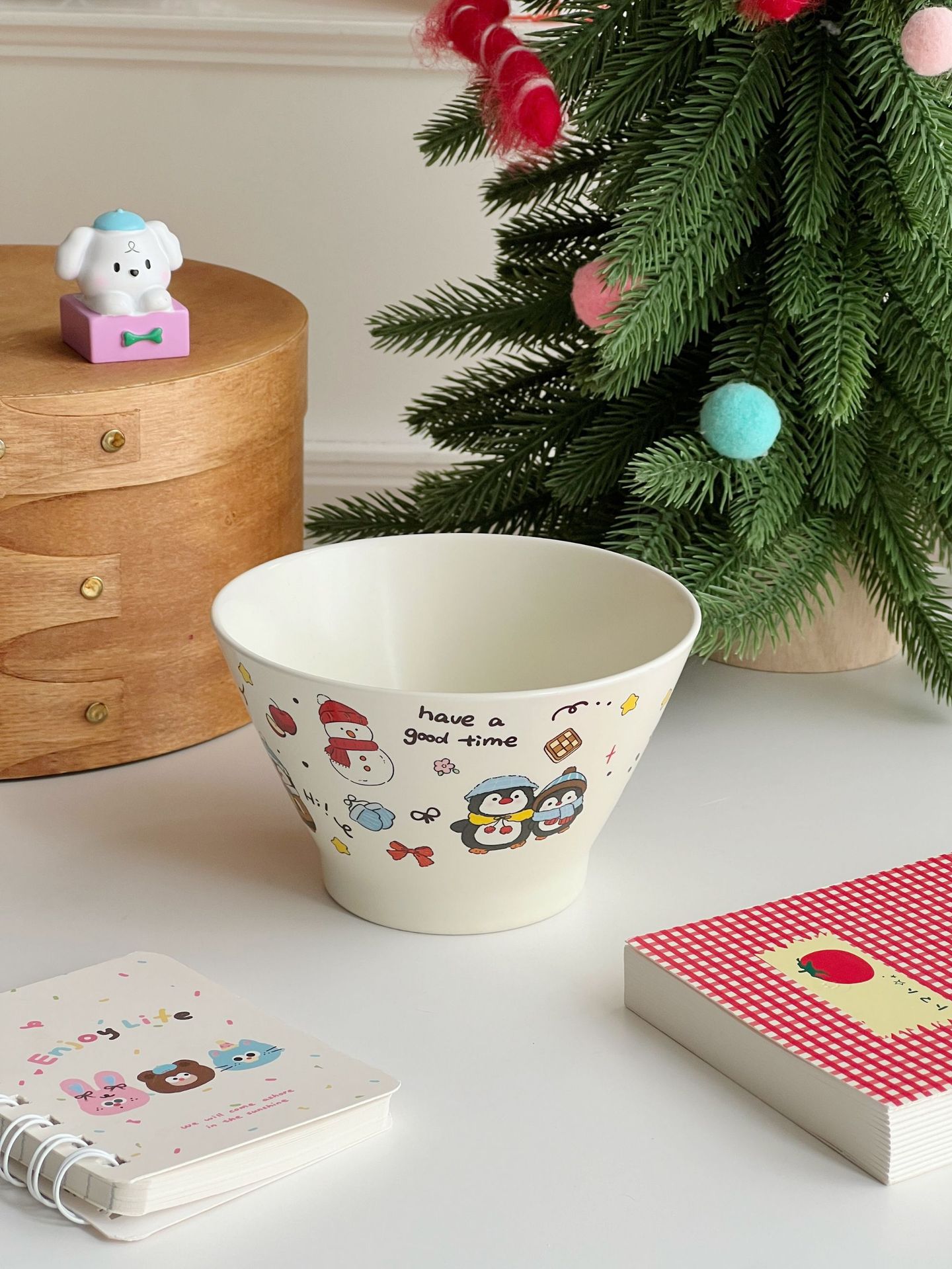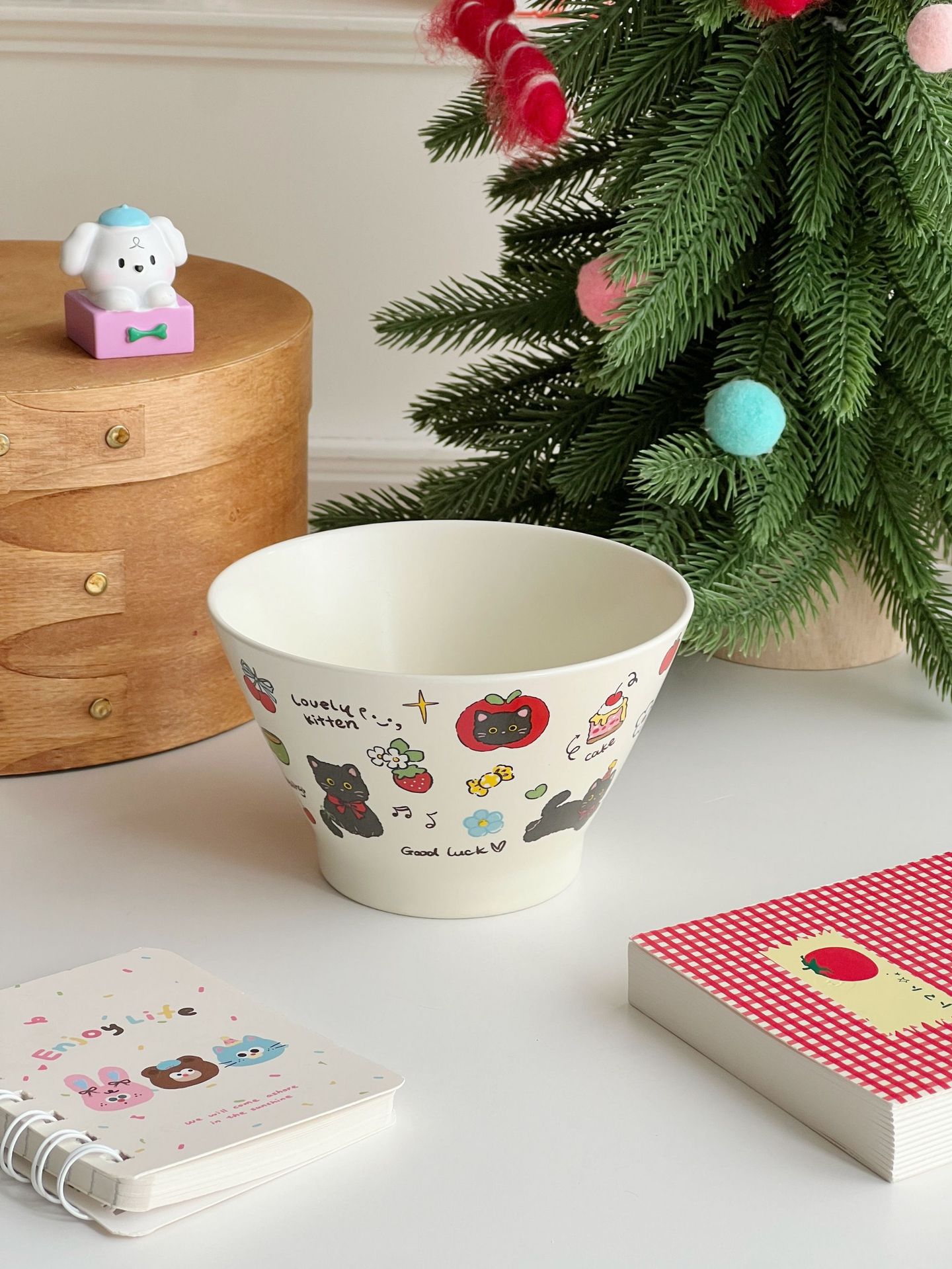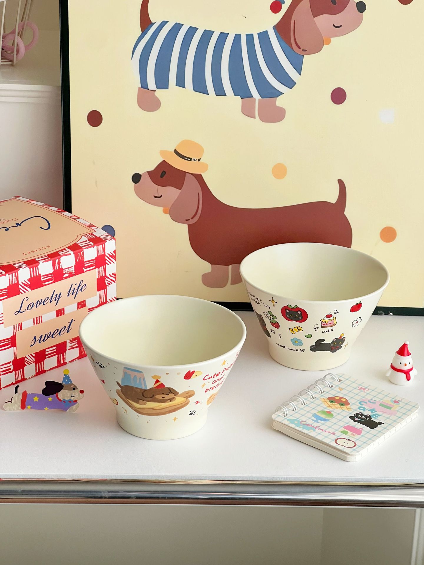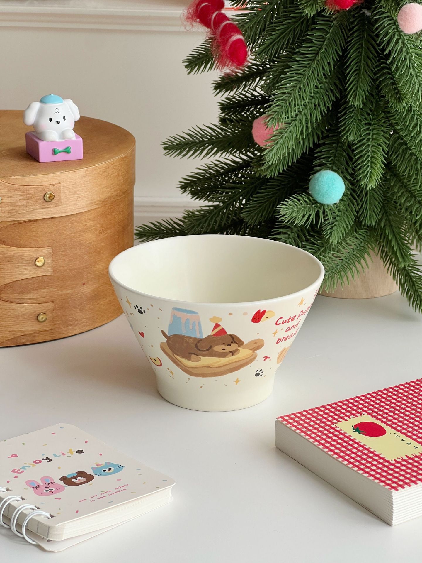 높은 가치의 디저트 그릇 크림 스타일 세라믹 버킷 그릇 귀여운 만화 어린이 밥 그릇 홈 아침 식사 오트밀 요거트