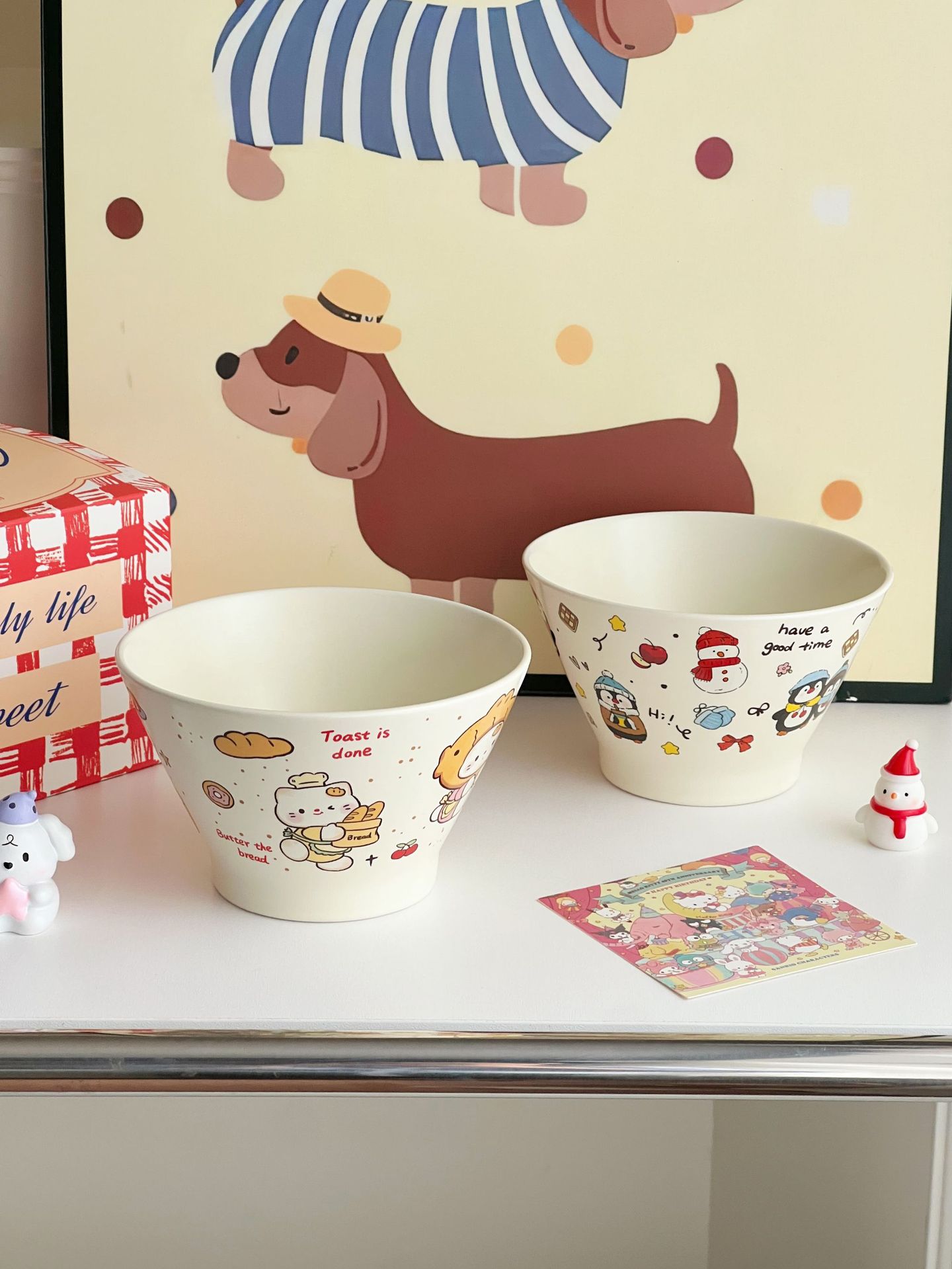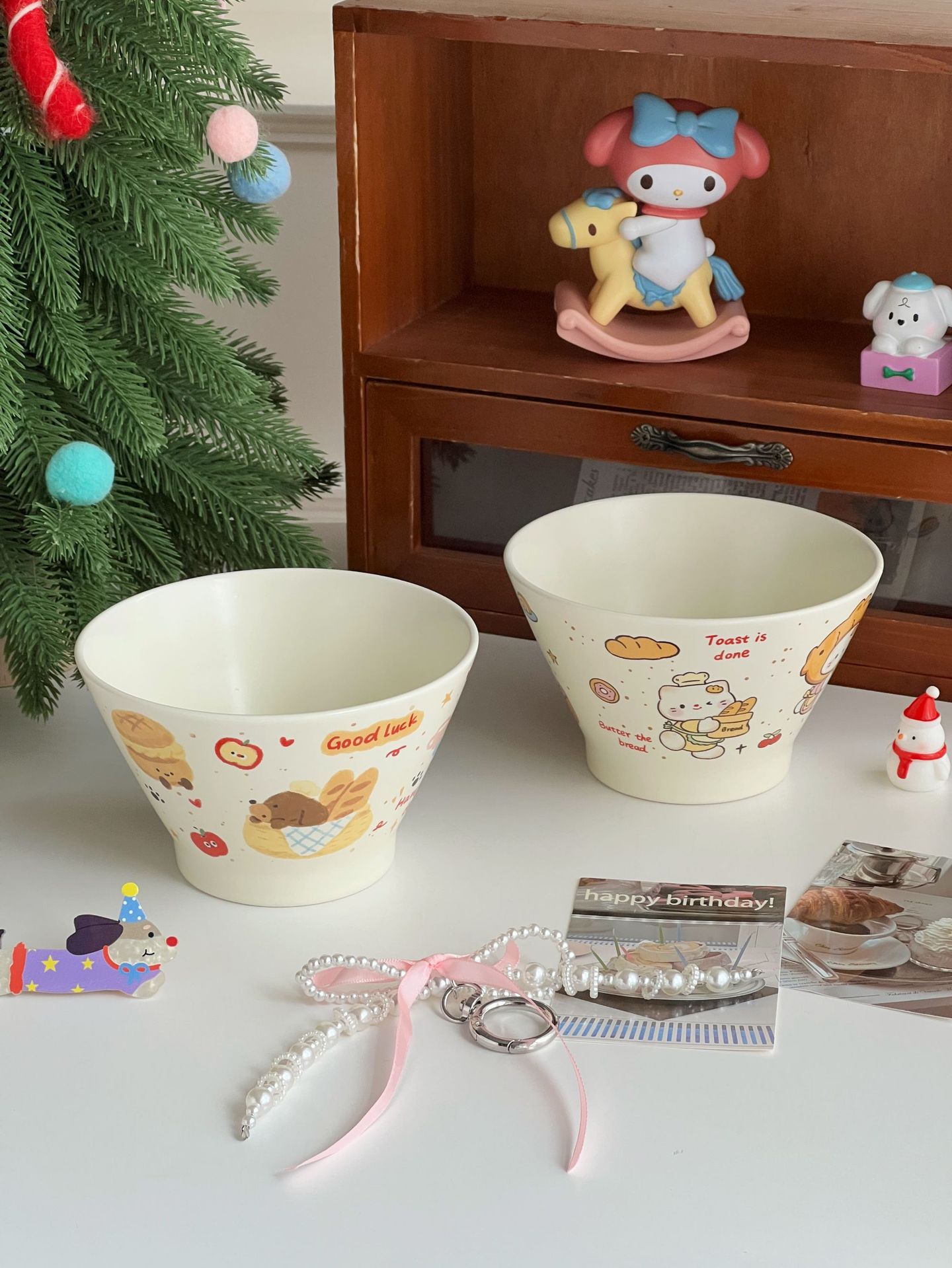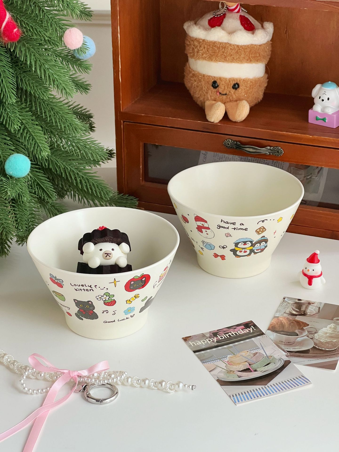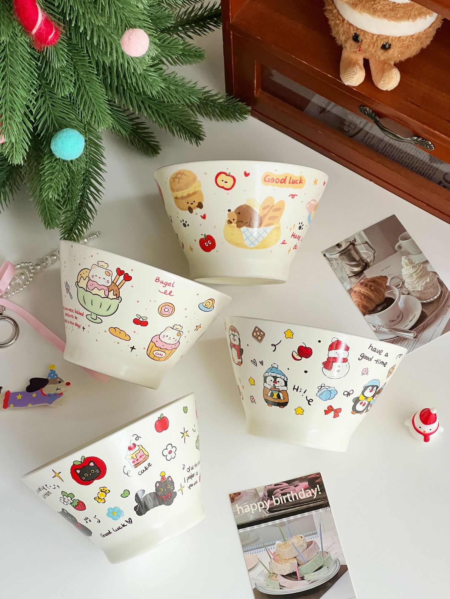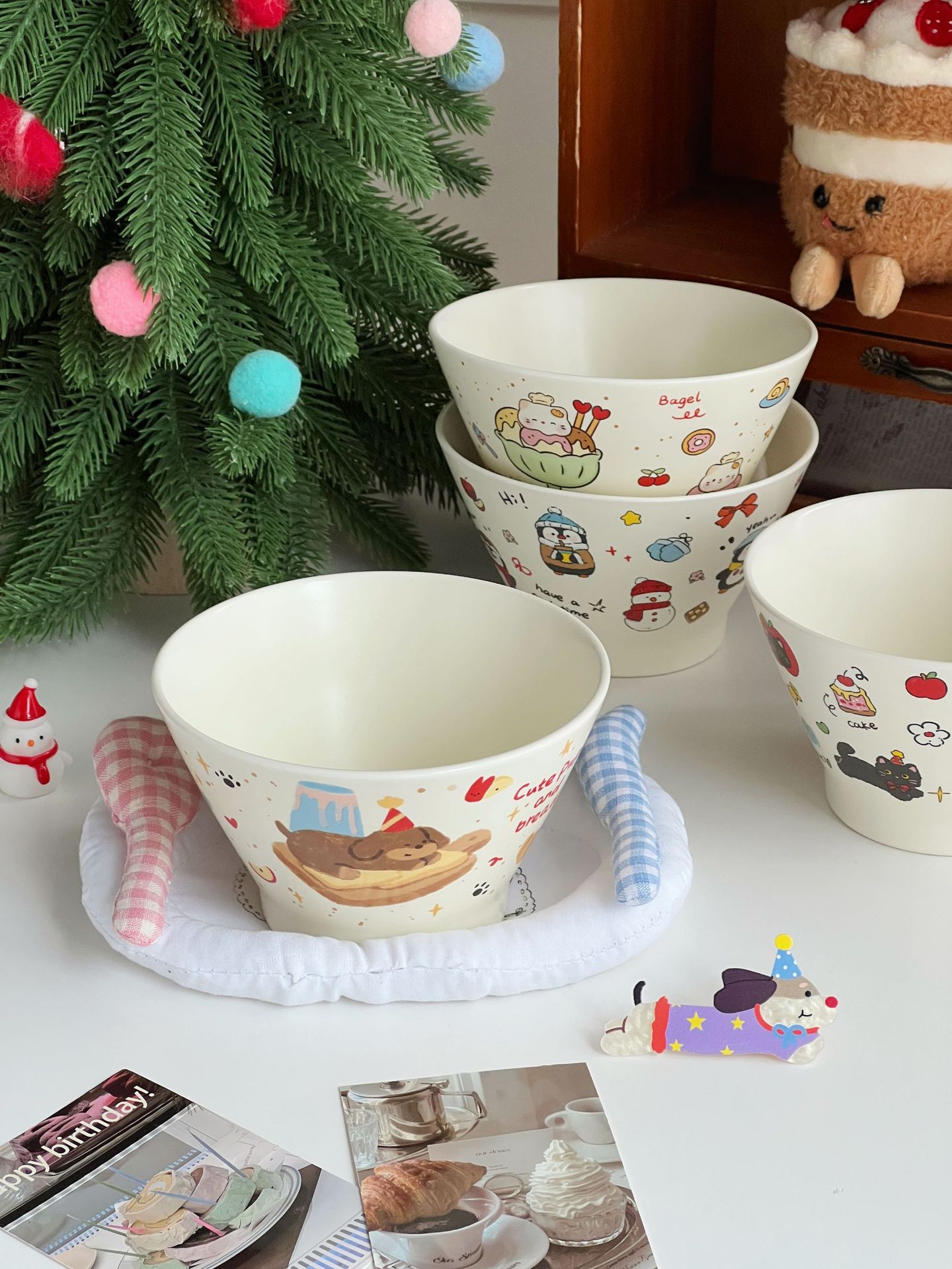 높은 가치의 디저트 그릇 크림 스타일 세라믹 버킷 그릇 귀여운 만화 어린이 밥 그릇 홈 아침 식사 오트밀 요거트스토어 가기